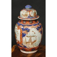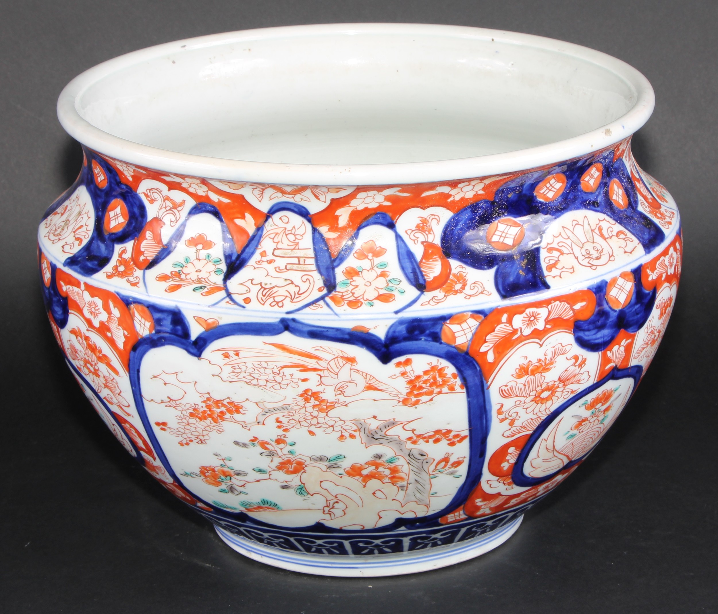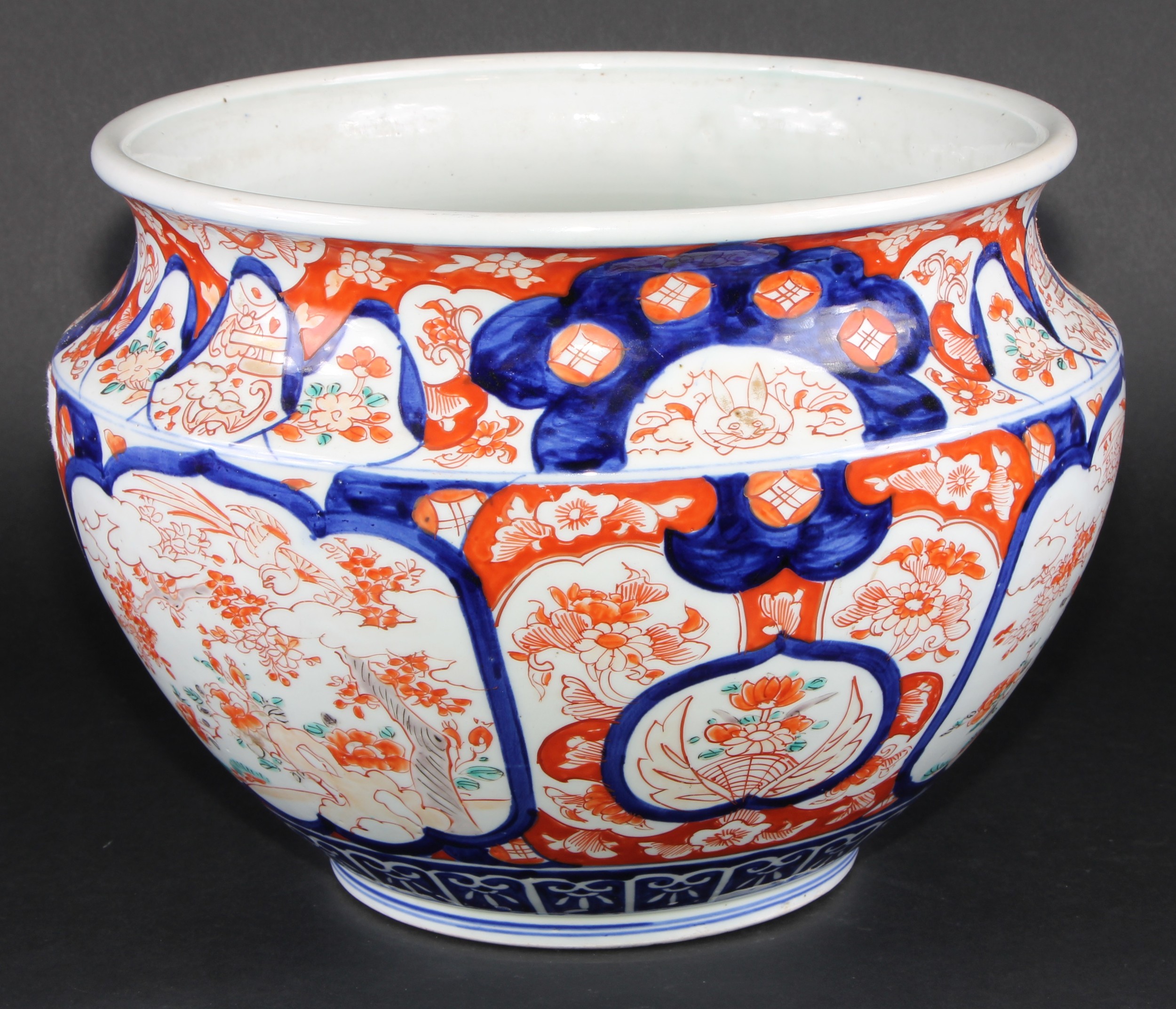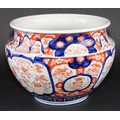 A Japanese ovoid jardiniere, typically painted in the Imari palette, 29.5cm diameter, Meiji period