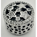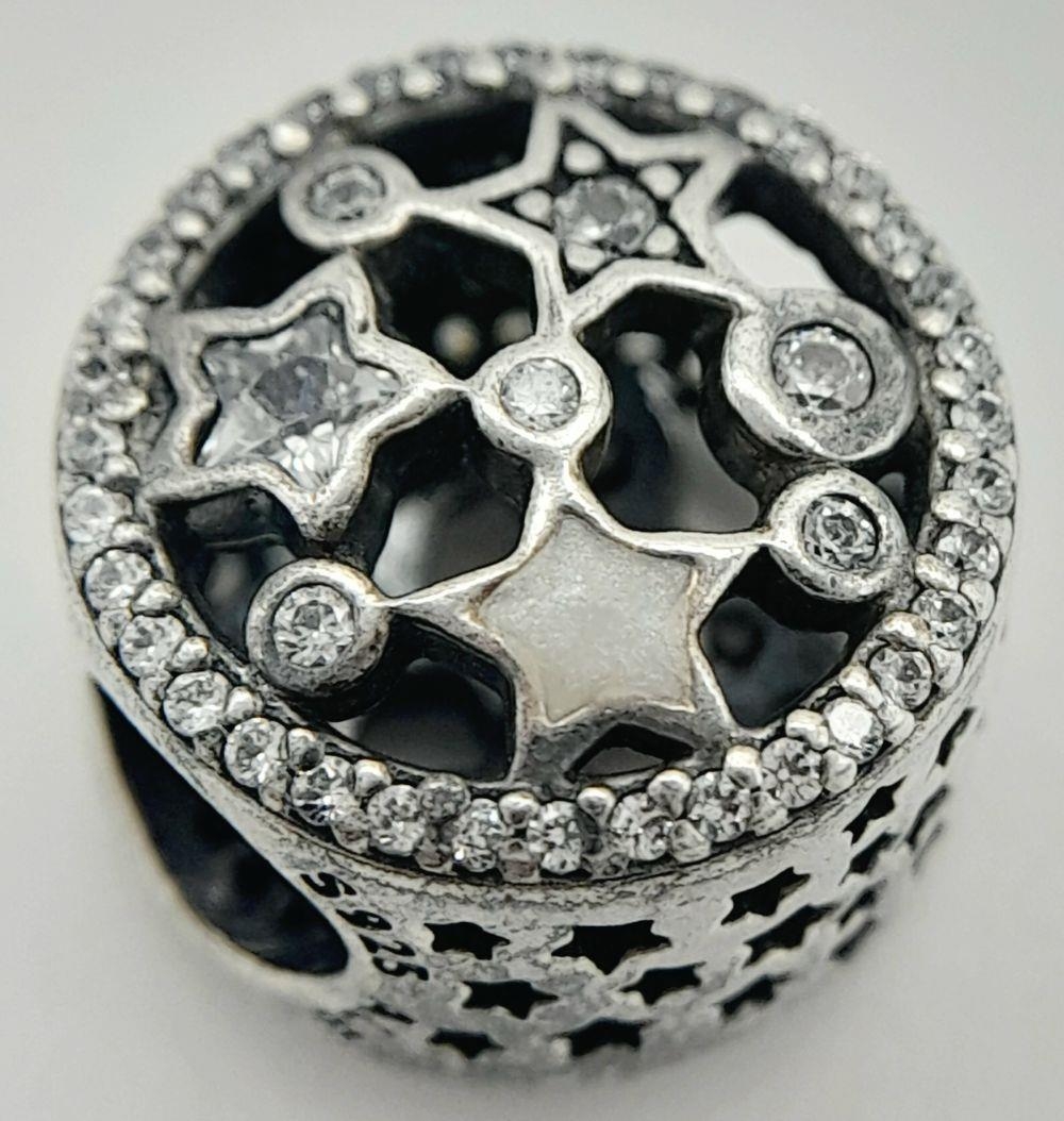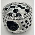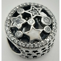 A PANDORA STERLING SILVER STONE SET STARS CHARM 2.5G TOTAL WEIGHT, 1CM DIAMETER. Ref: SC 8036