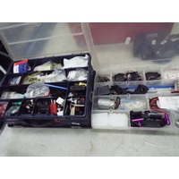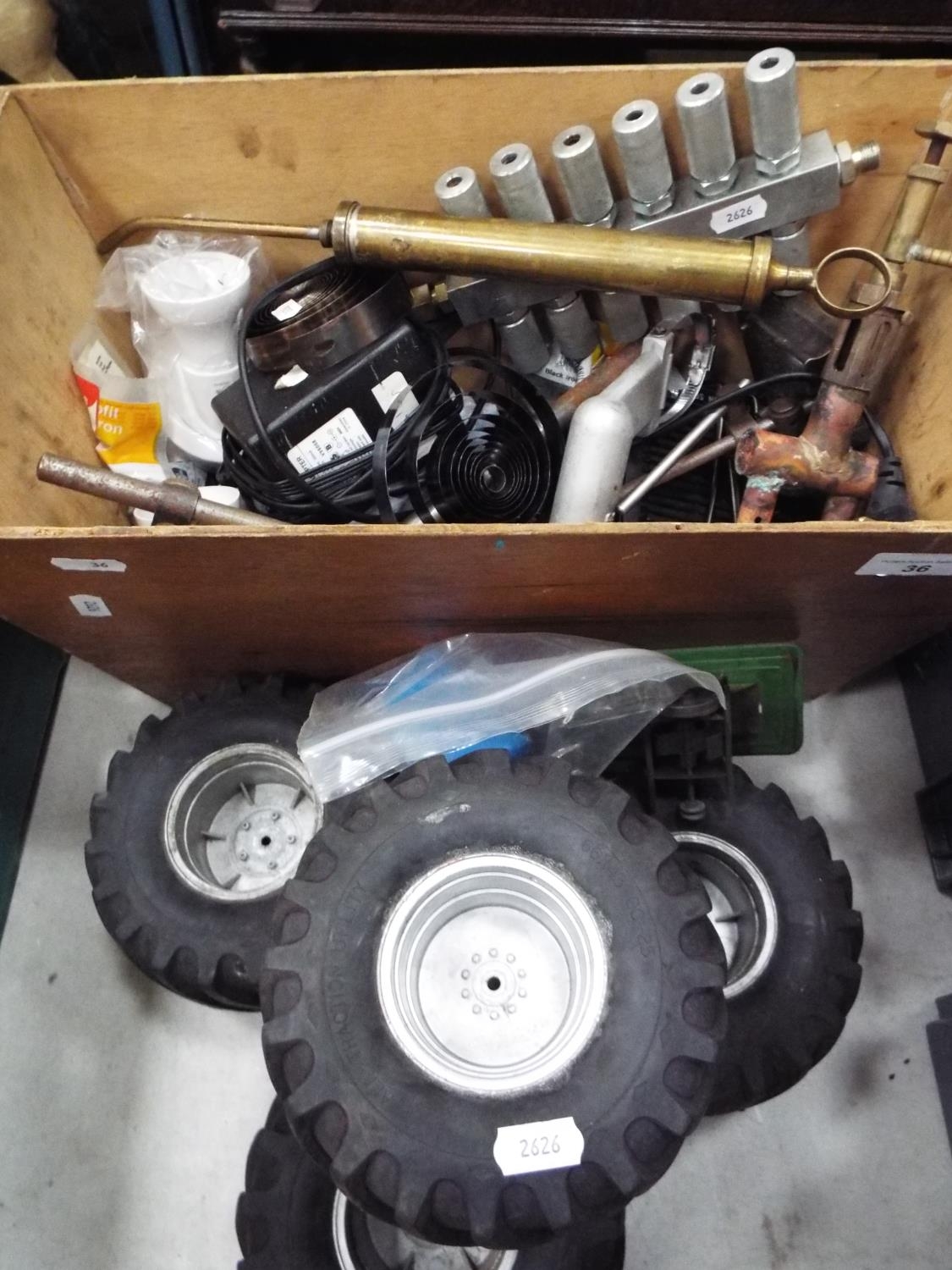 Box of assorted model making equipment to include engines, wheels etc