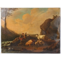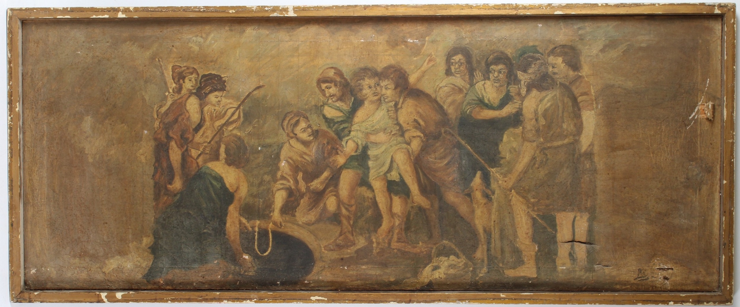 EUROPEAN SCHOOL (19TH CENTURY) Biblical scene of Joseph and his brothers at the well oil on canvas (a/f) signed indistinctly 56 x 144cm