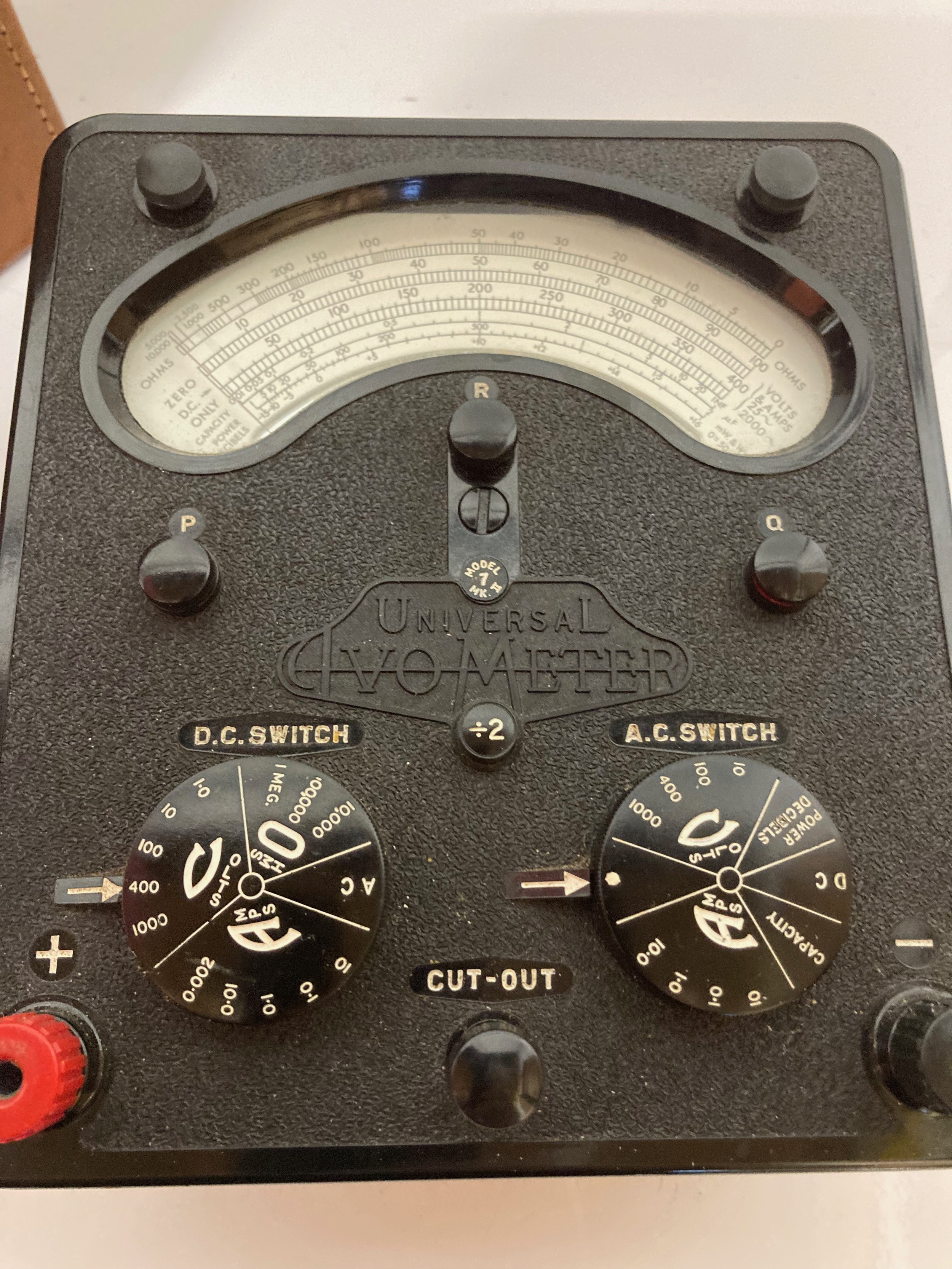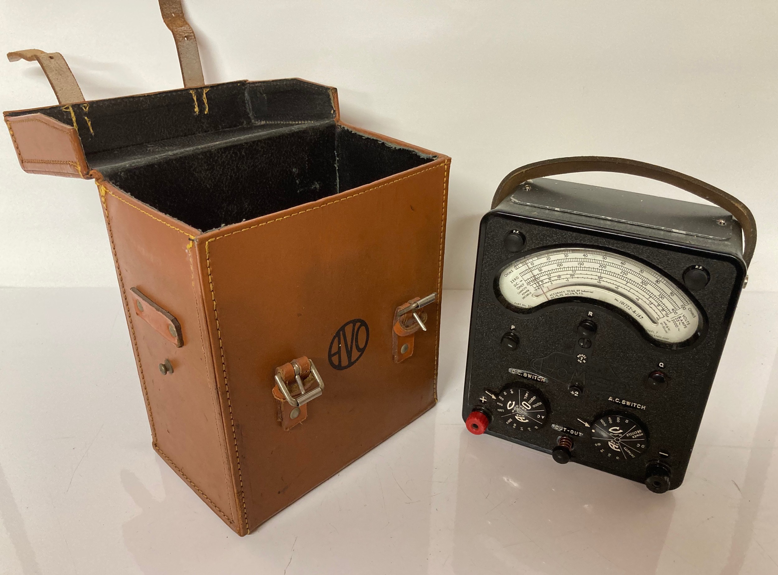 Automoblila tools, a bakelite cased Avo meter in a leather carry case 8 inches x 5 inches x 9 inches