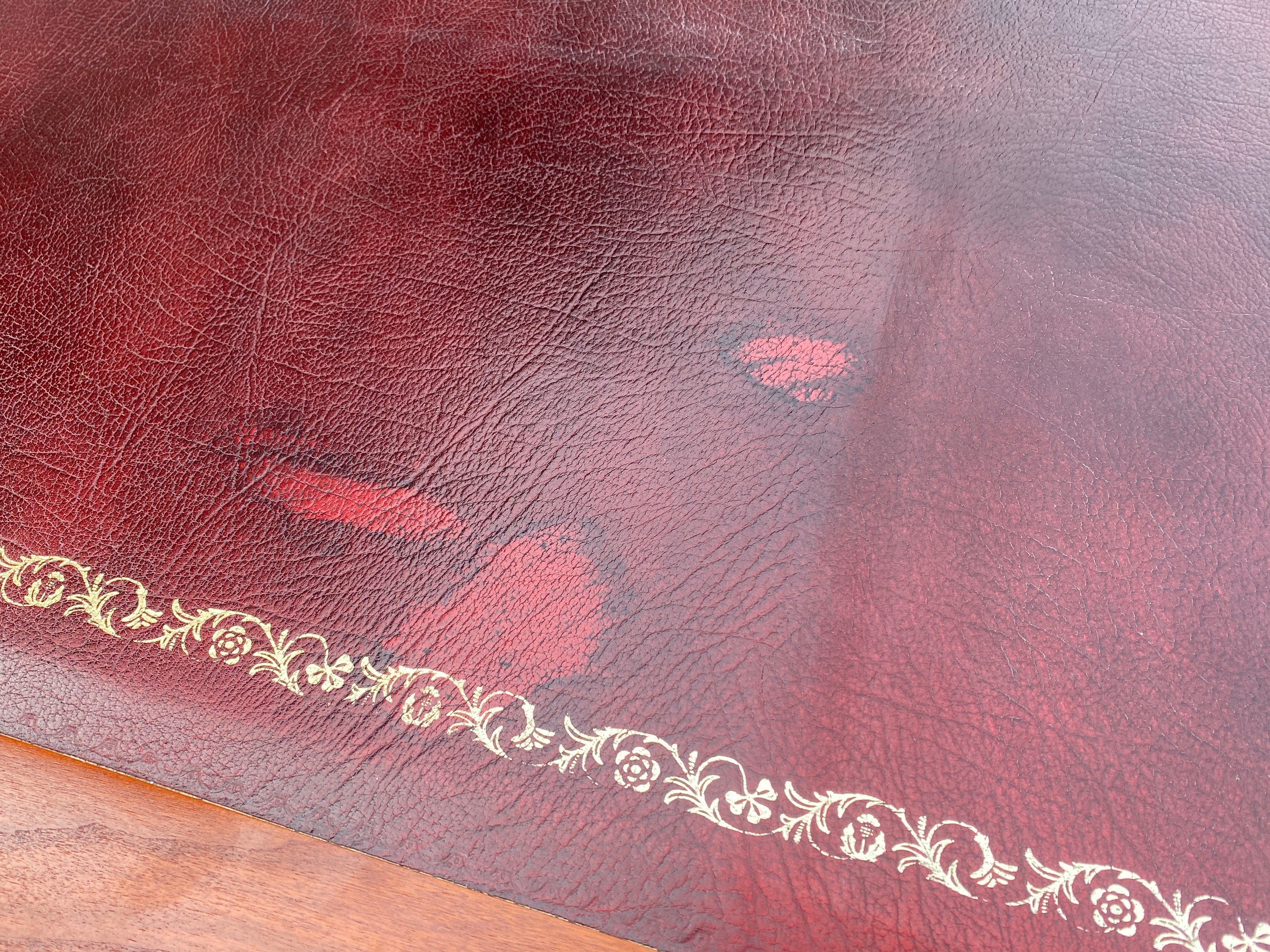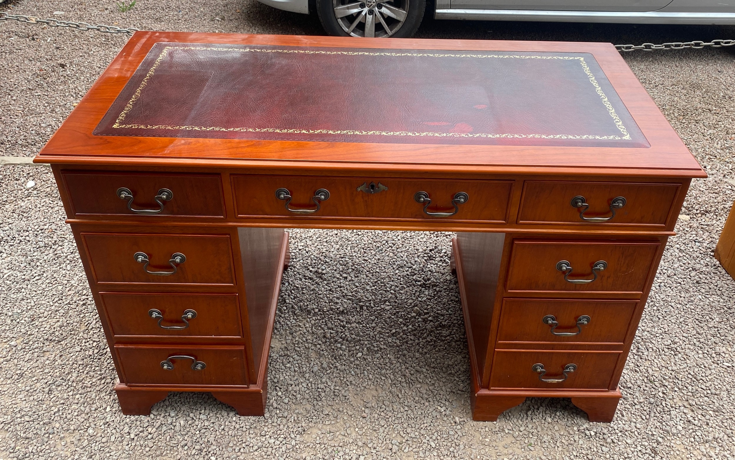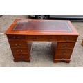 REPRODUCTION YEW LEATHER TOPPED PEDESTAL KNEEHOLE DESK