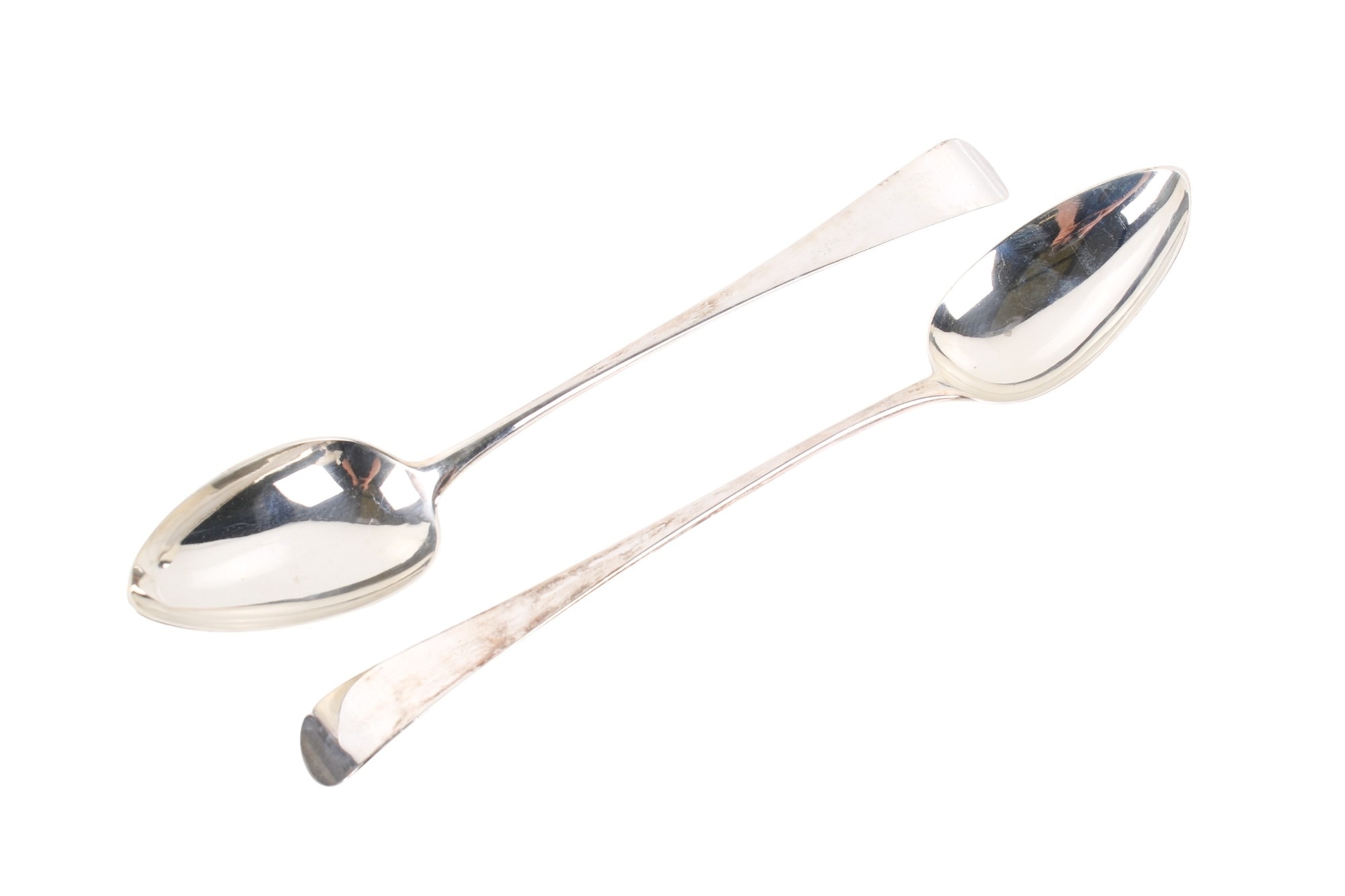 A pair of early 19th century serving spoons. Undecorated, with hallmarks for Peter & William Bateman, London 1805. L30cm, gross weight 219.2g.