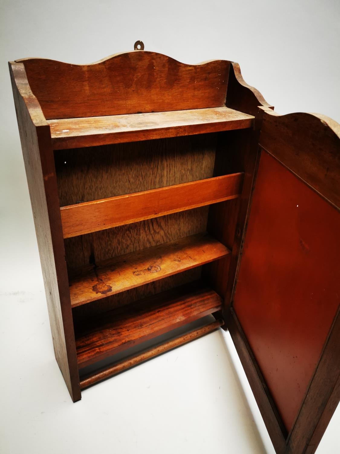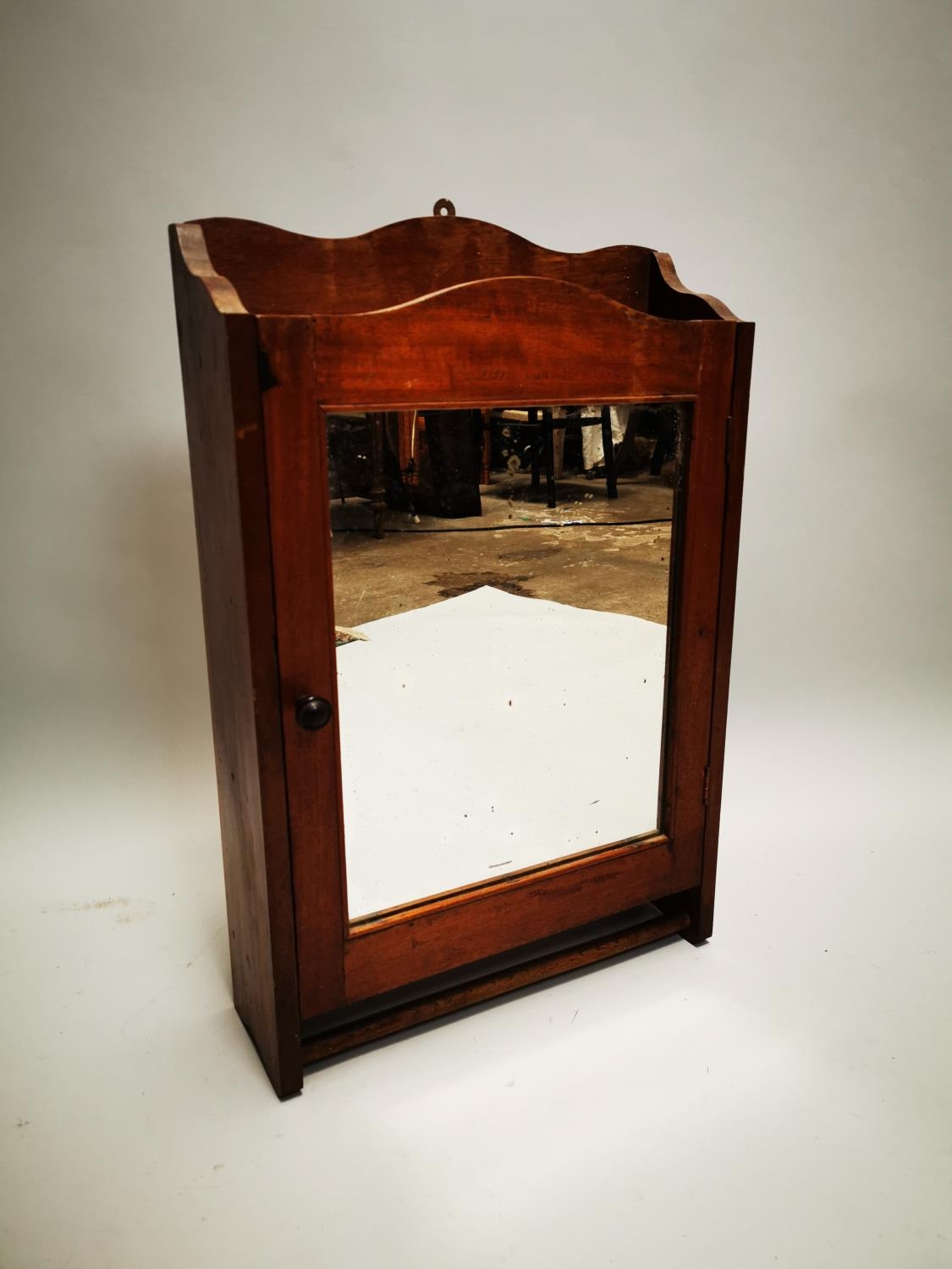 1930s mahogany wall cabinet with single mirrored door {66 cm H x 44 cm W x 14 cm D}.
