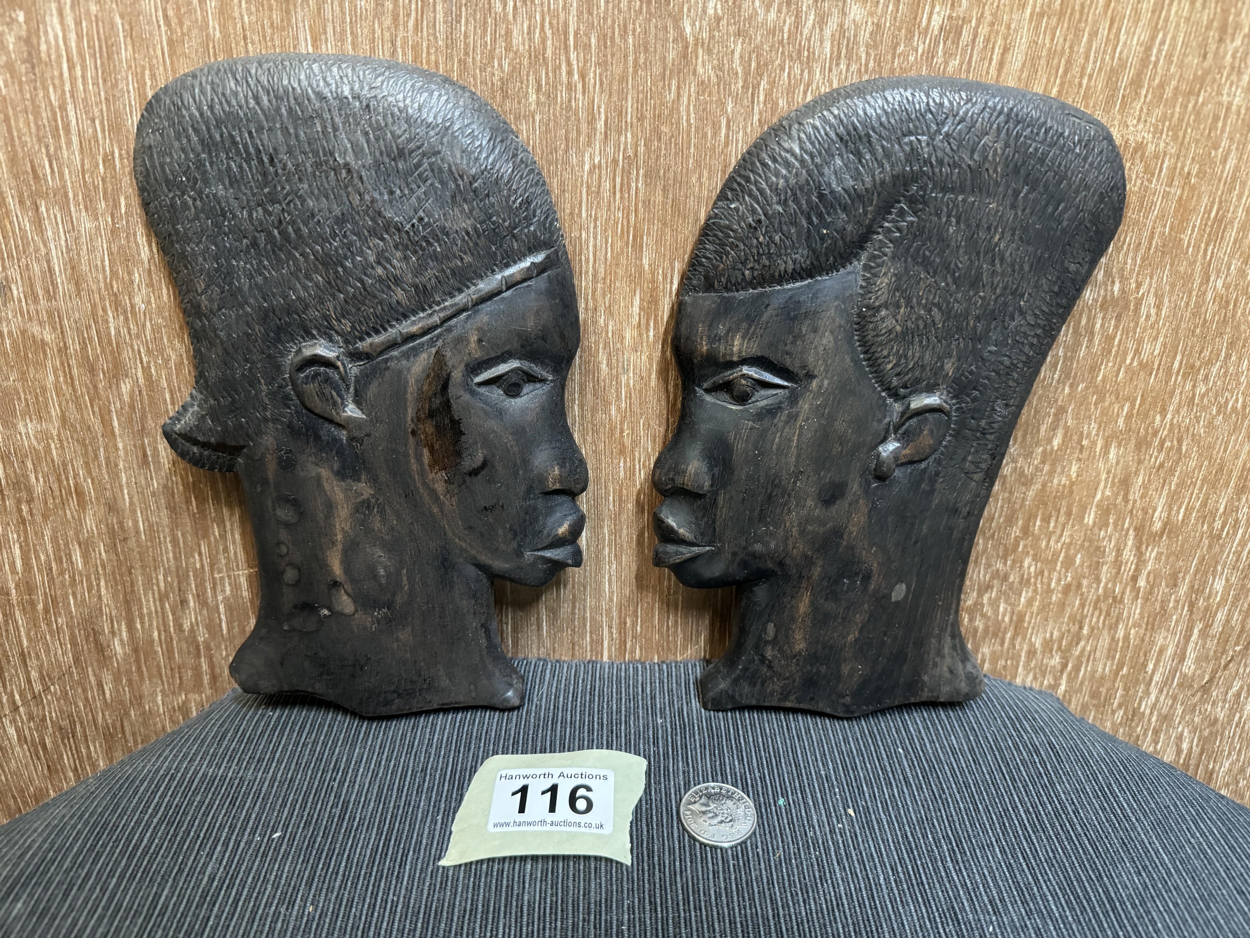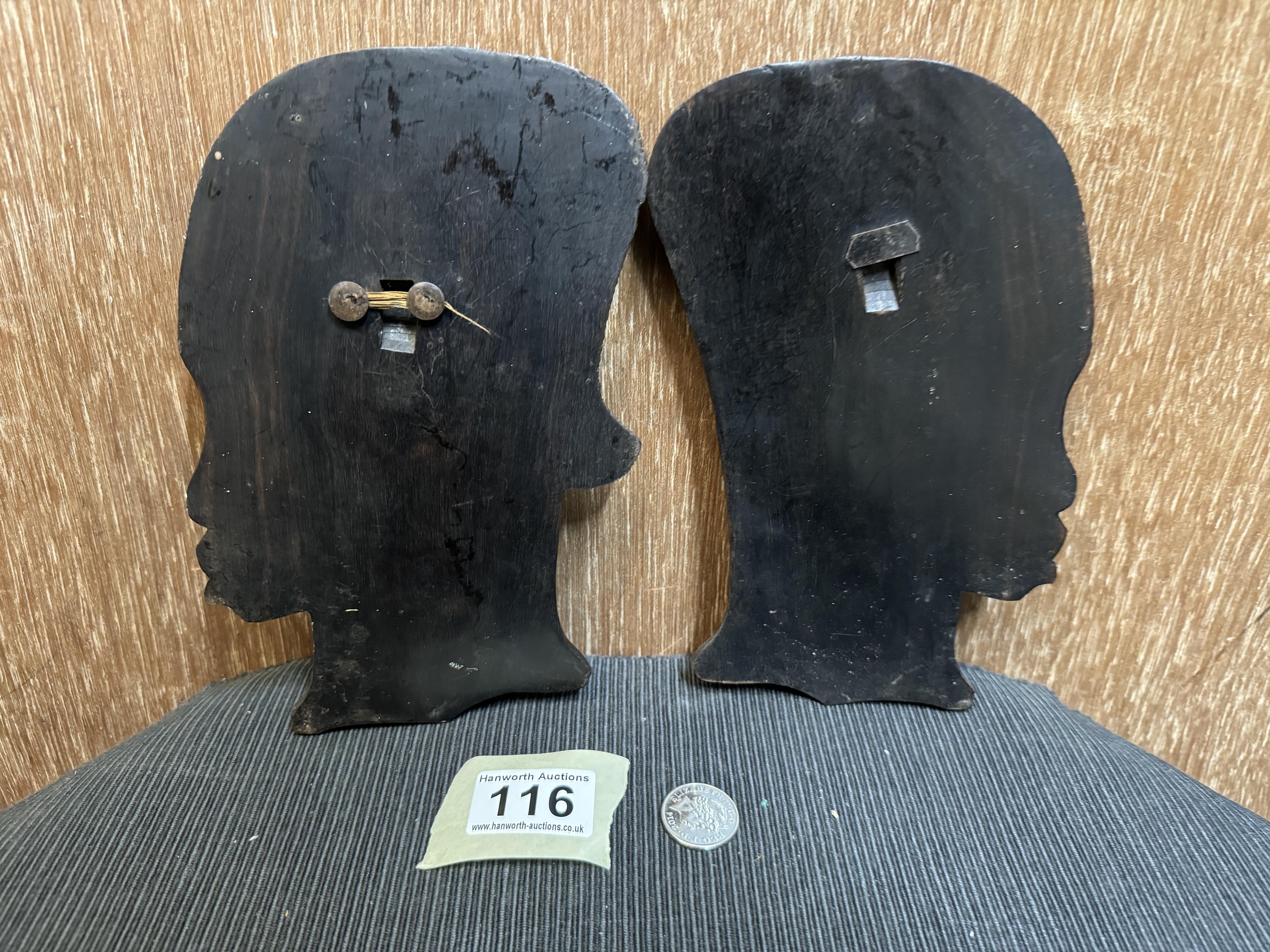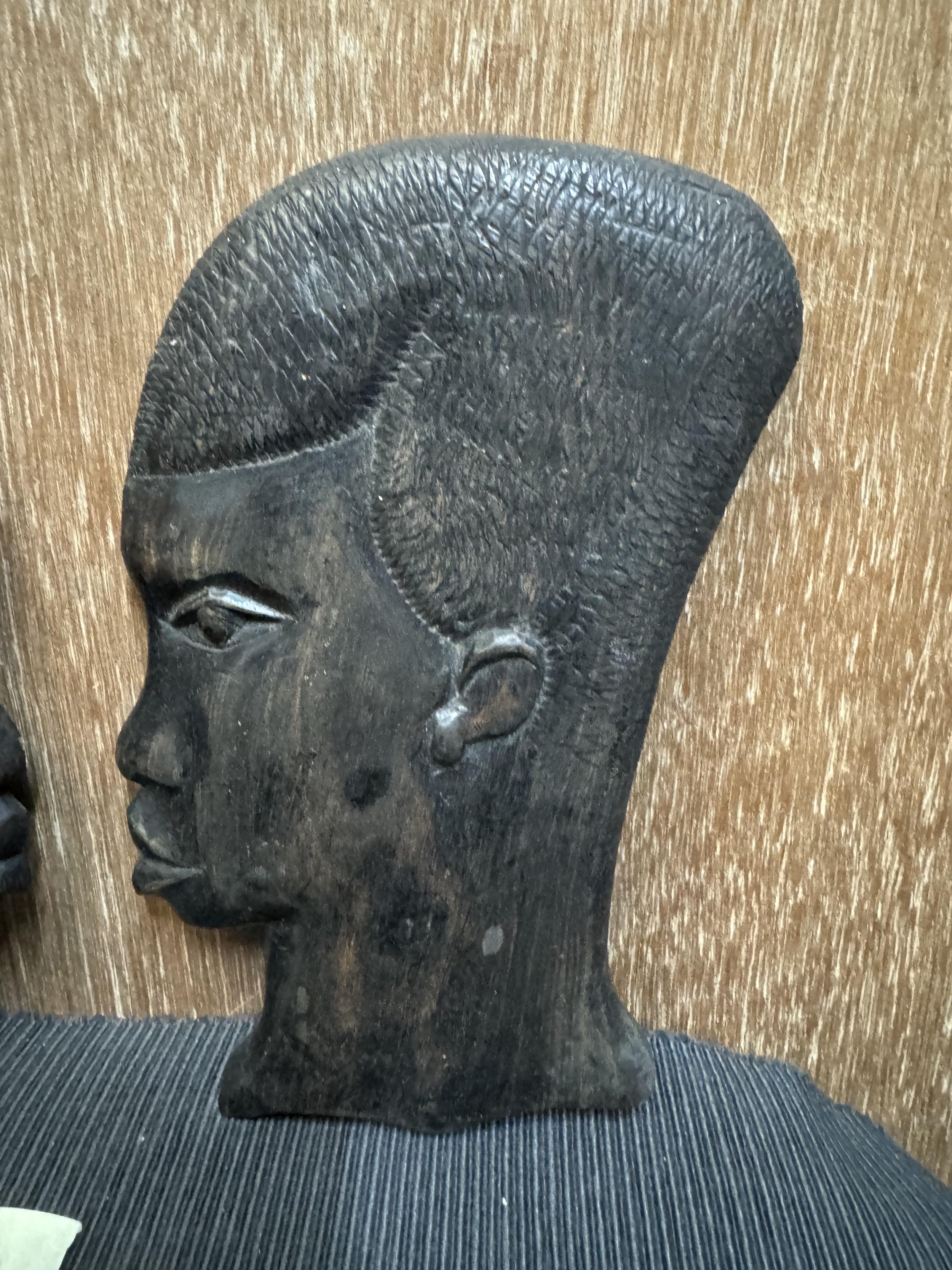 Vintage Pair of Wooden Head Wall Hangings