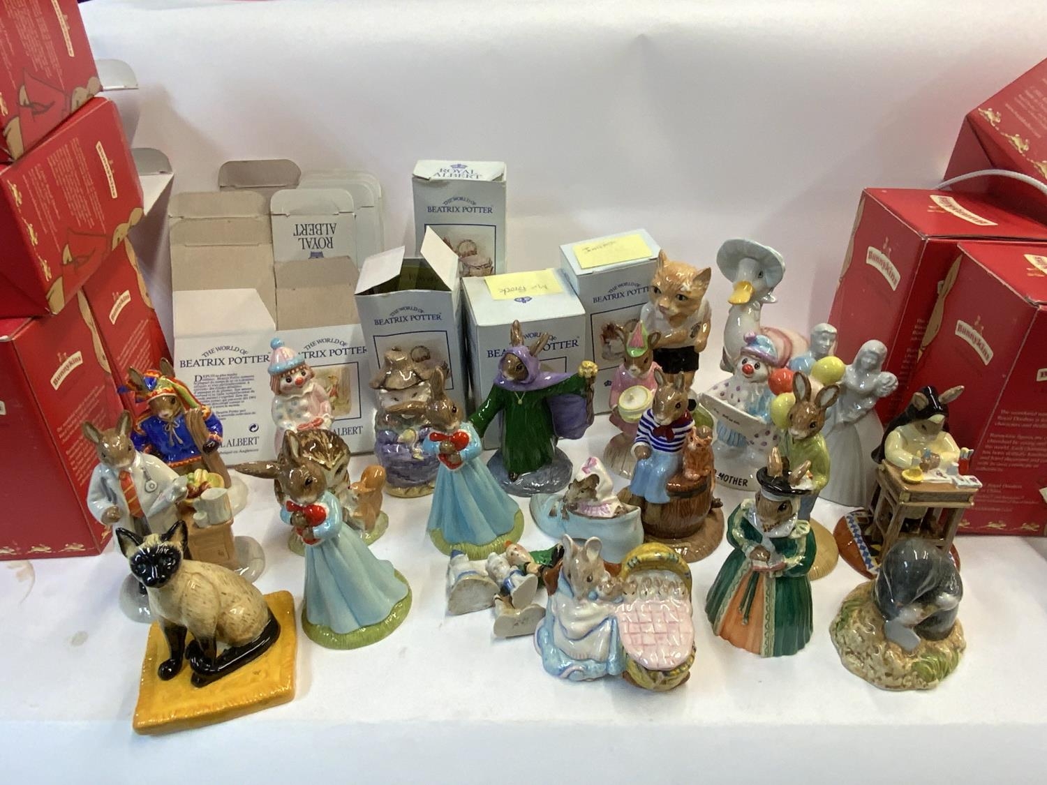 A collection of Royal Albert Beatrix Potter figure and Royal Doulton Bunnykins, some with boxes. (D) approx 22.
