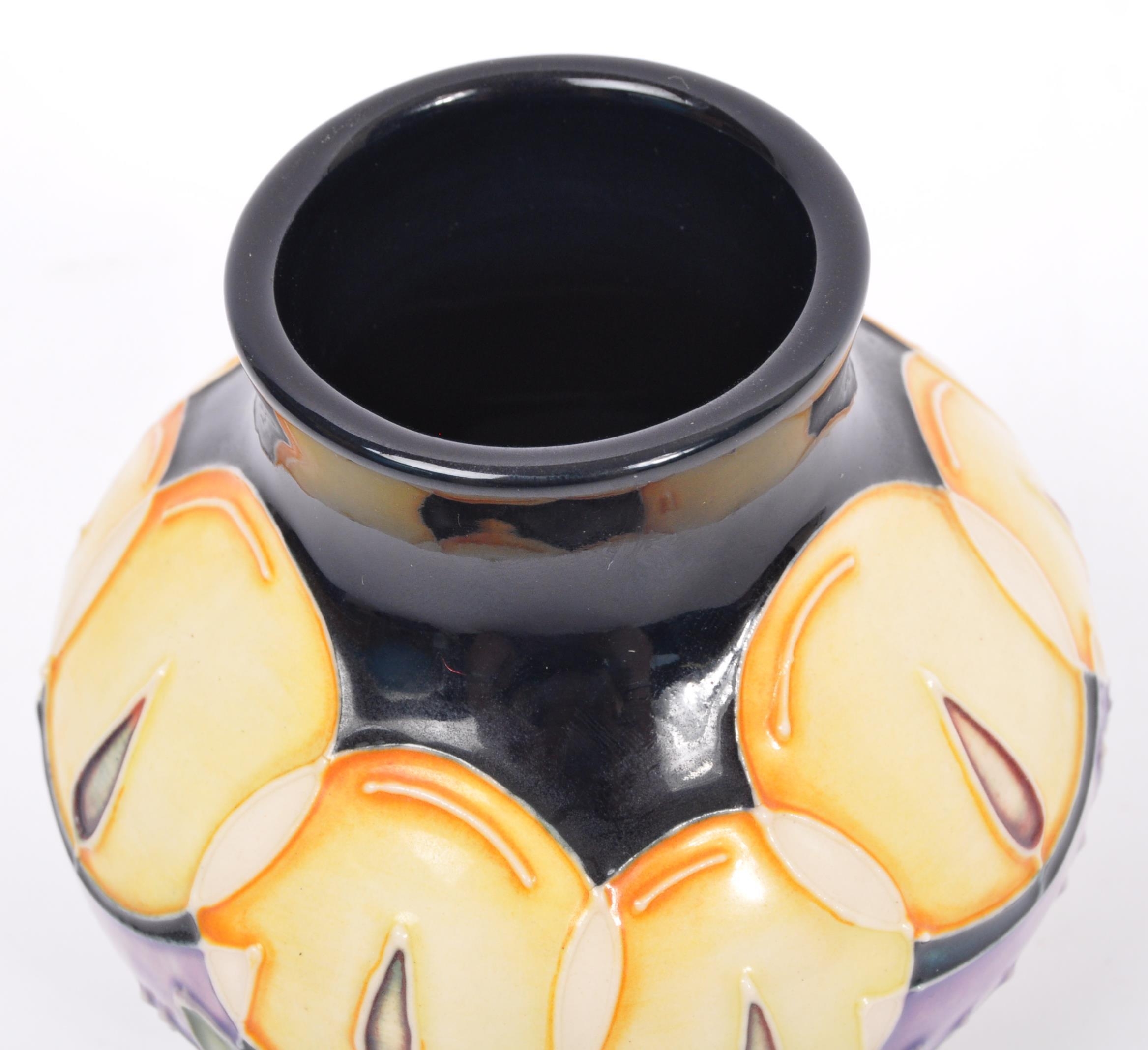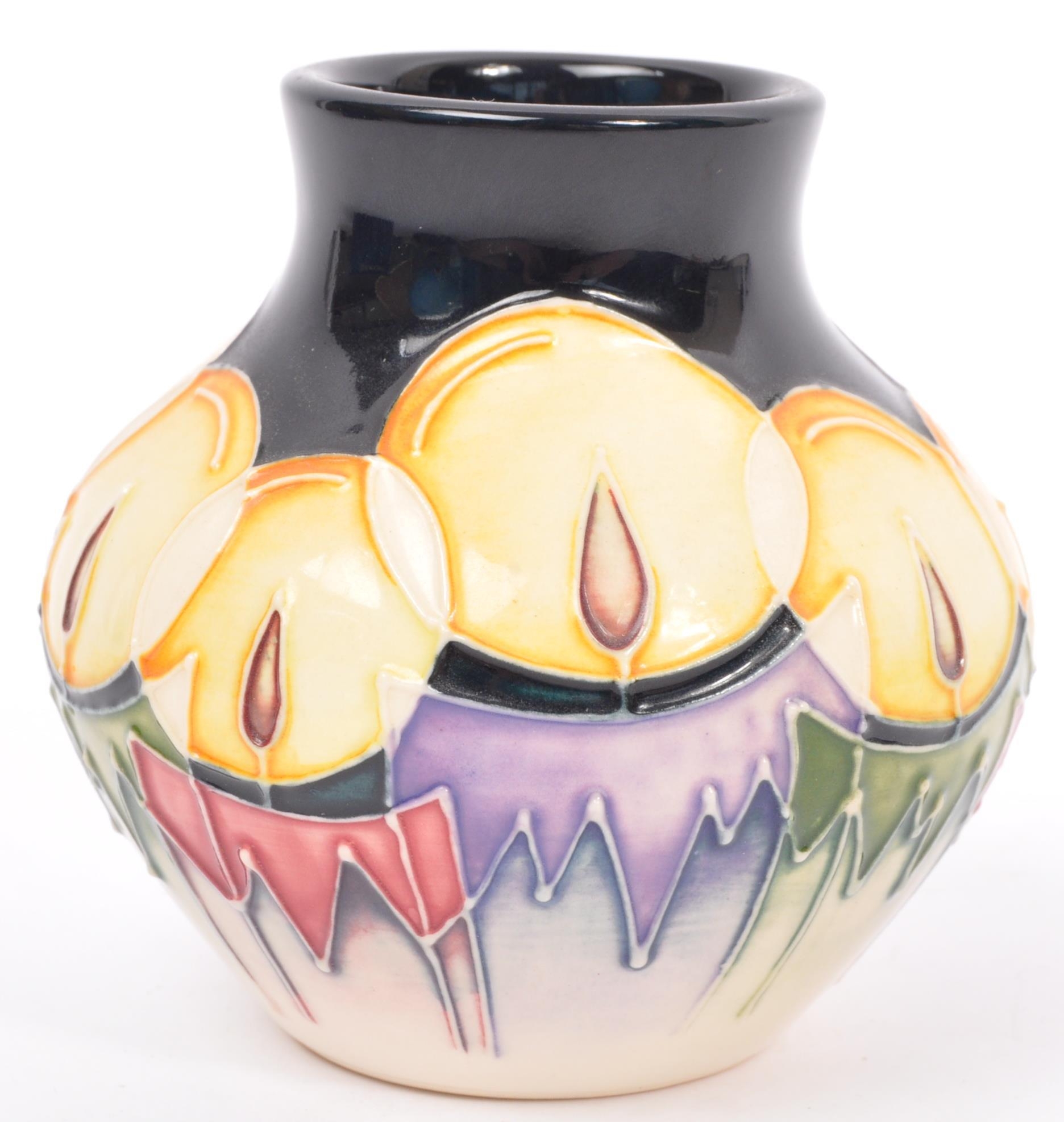 Moorcroft - Candlelight - A 20th century Moorcroft vase in the Candlelight pattern designed by Nicola Slaney. Marked and signed to base. Measures 90mm tall. Boxed.