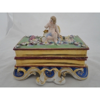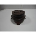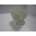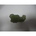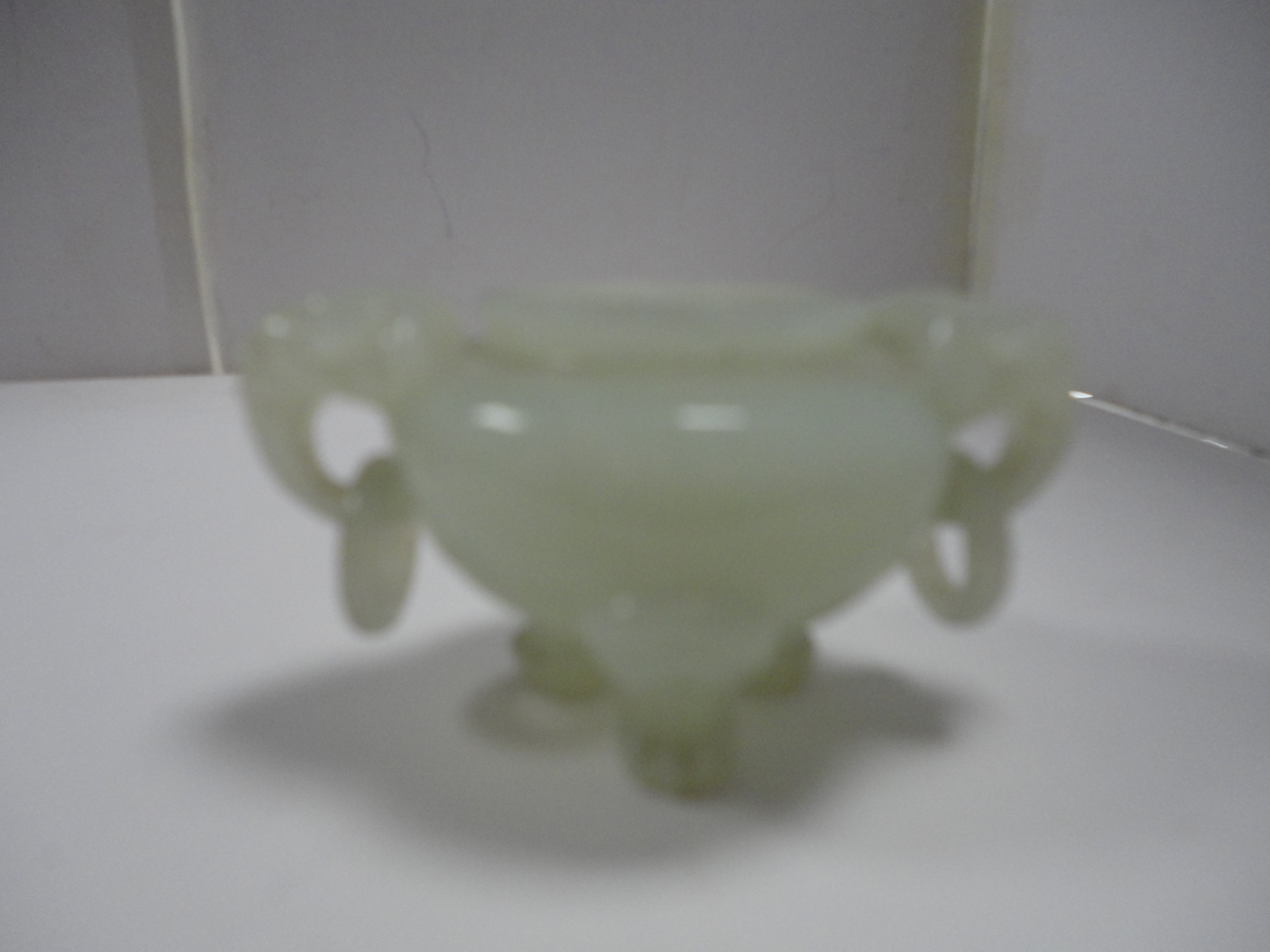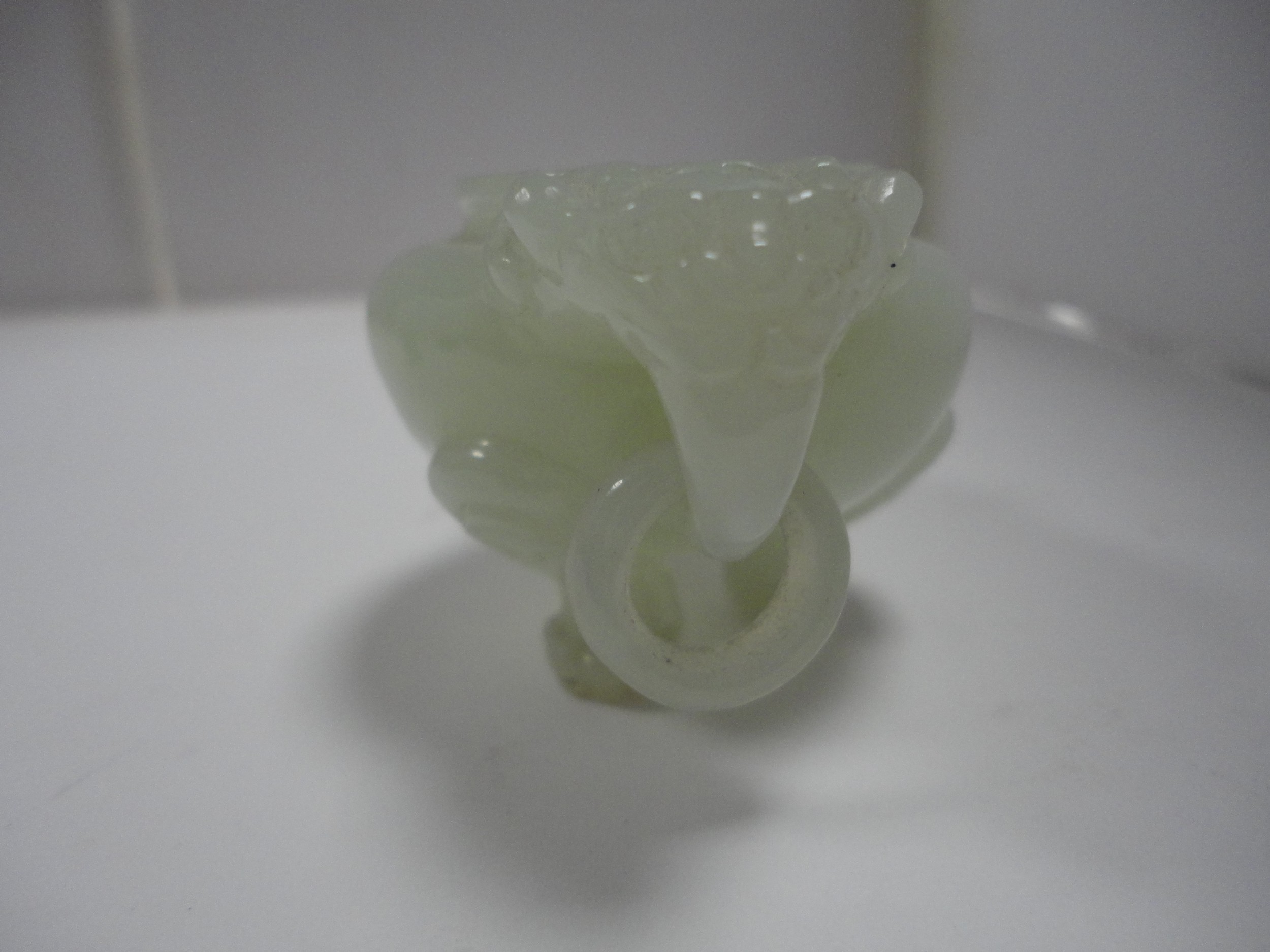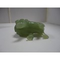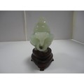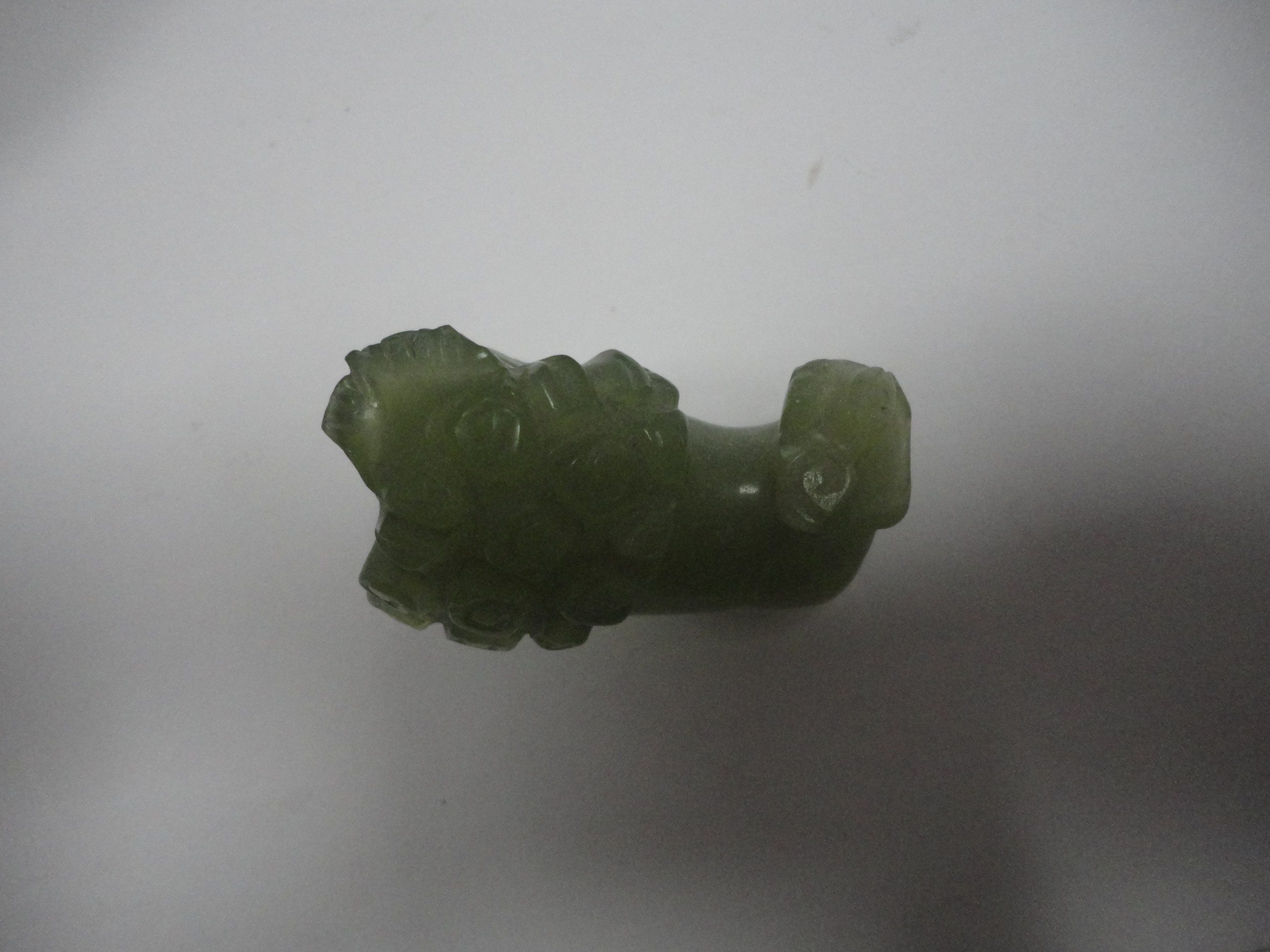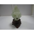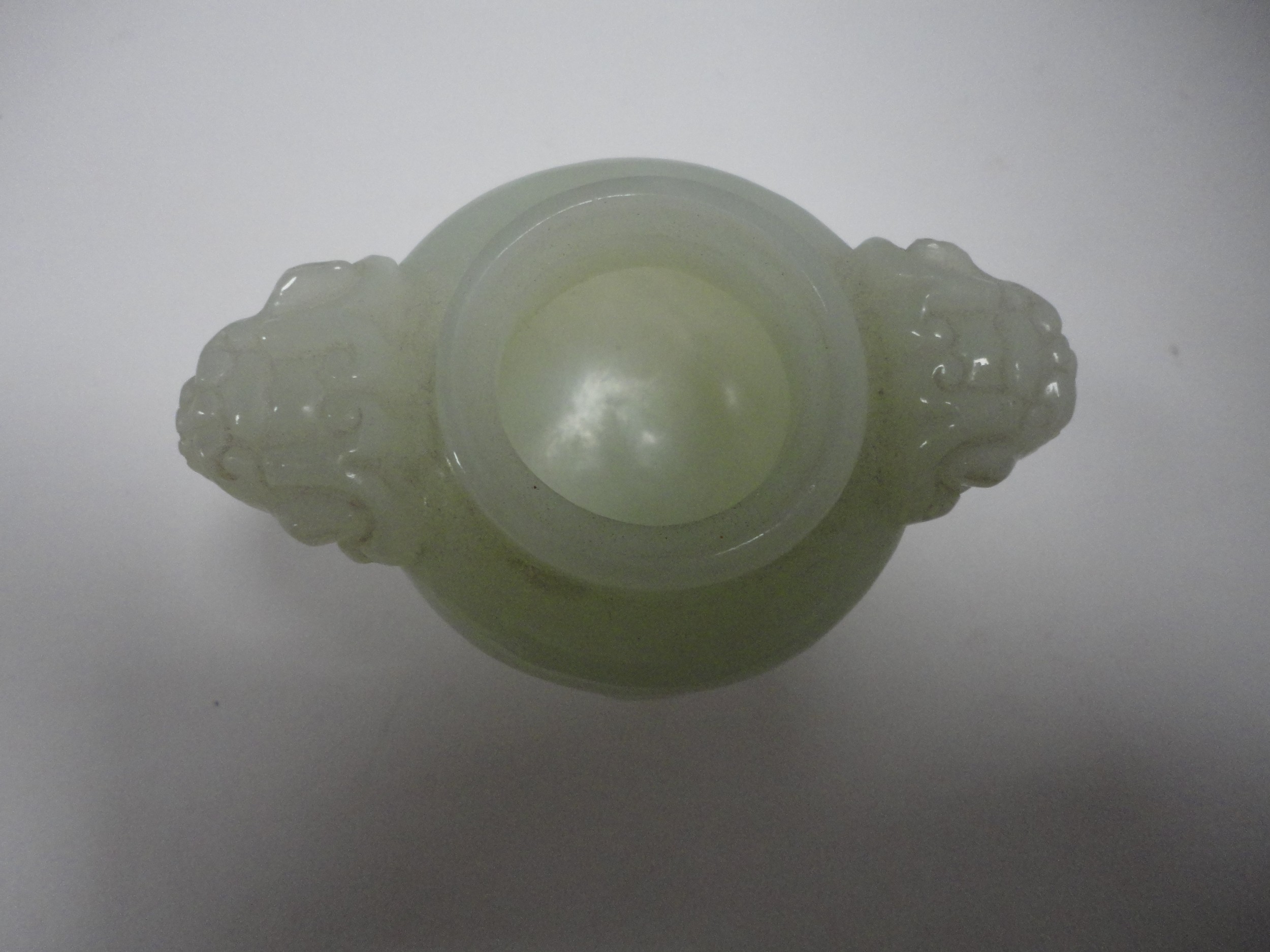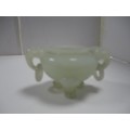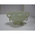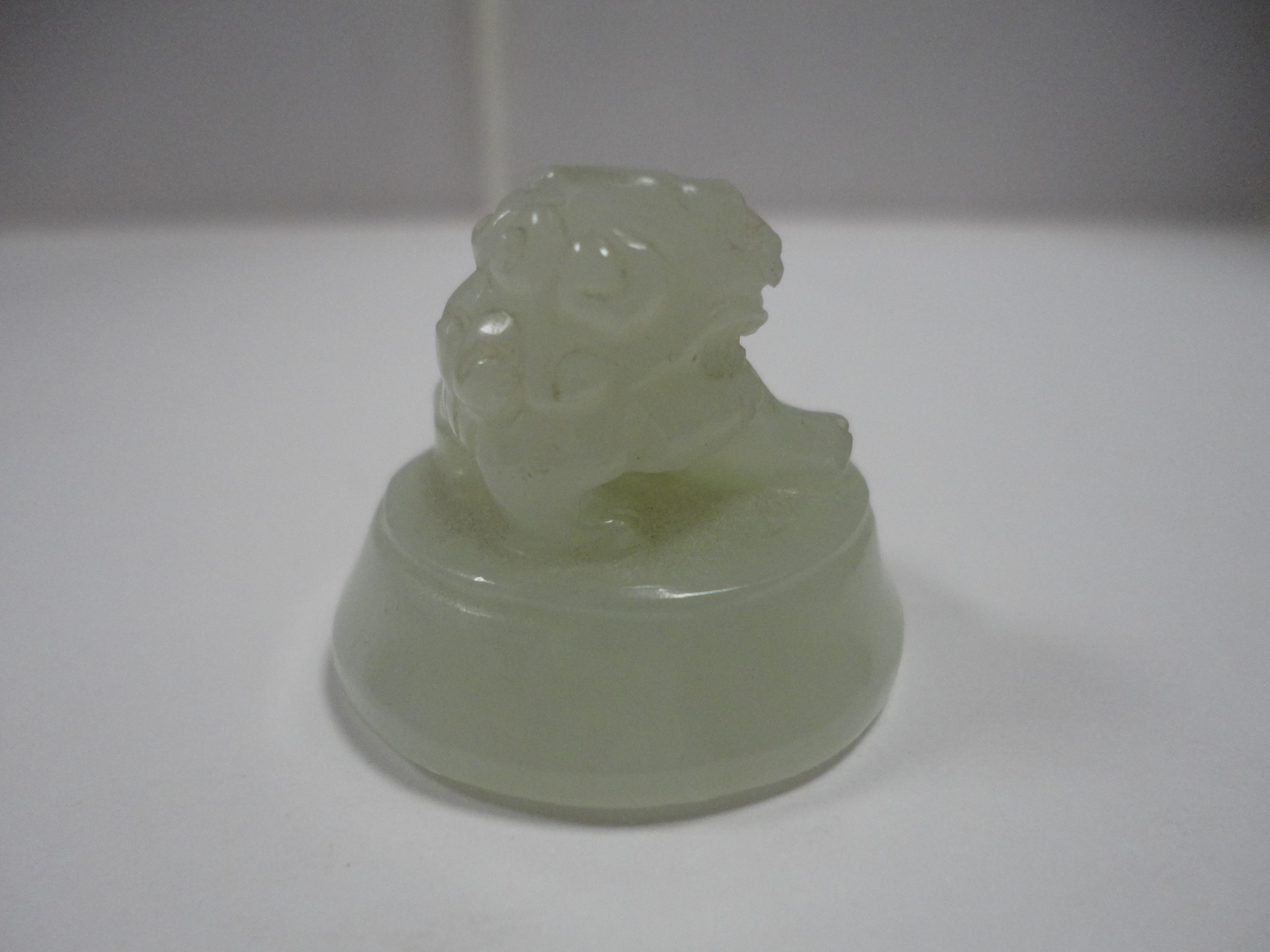 Small Chinese-style jade-coloured censer and cover on stand, and a similar jade-coloured temple dog. (2)