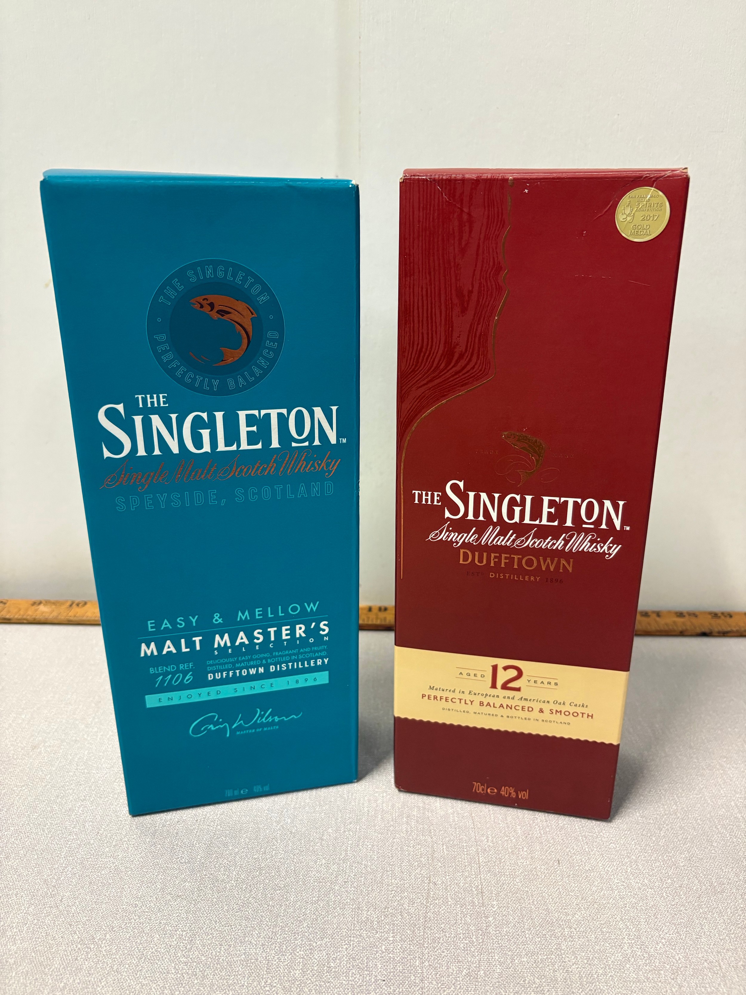 2 boxed bottles of singleton malt whisky