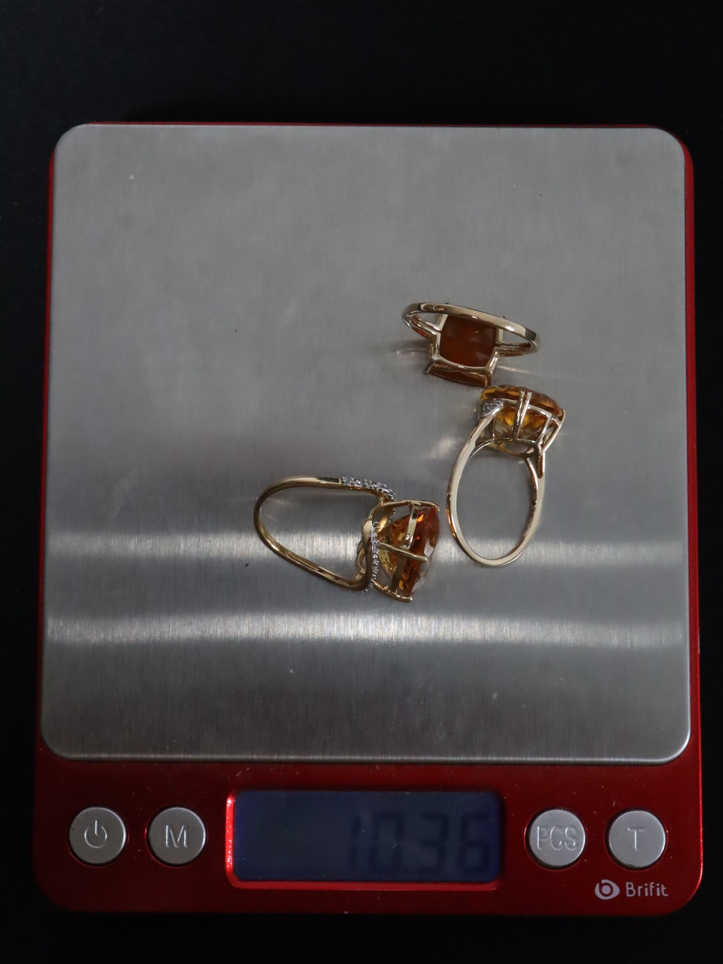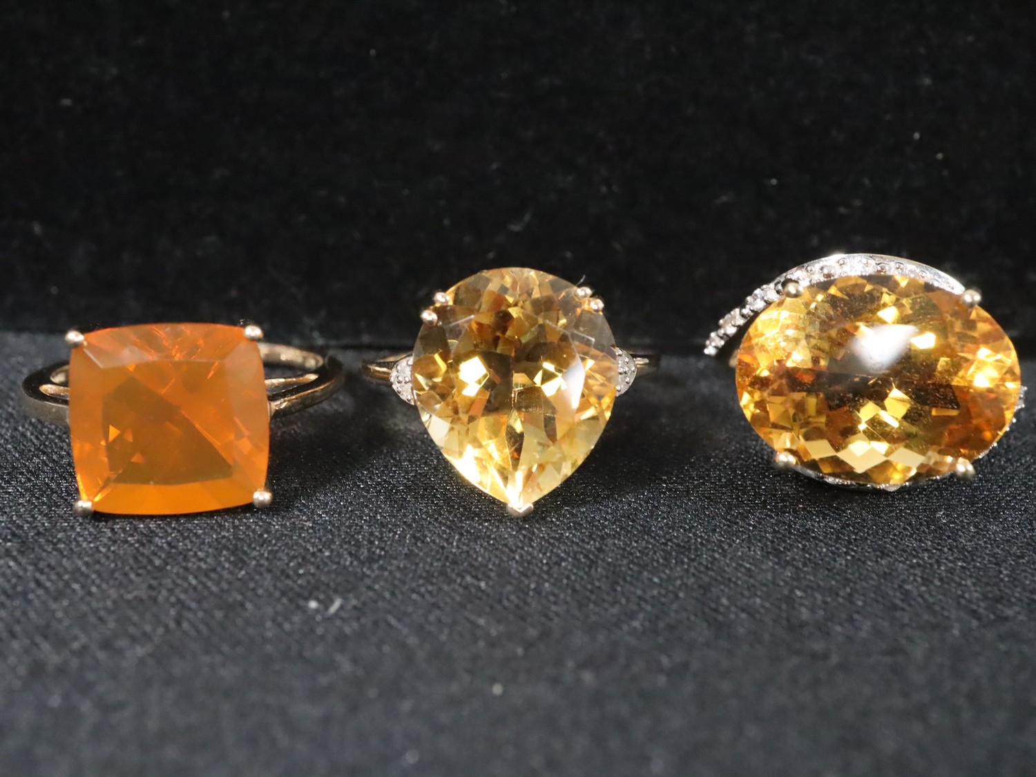 3.83ct AA Orange American Fire Opal 9K Gold Ring Size N to O, Rio Golden Citrine & White Zircon 9K Gold Ring Atgw 8.77cts Size N to O, Diamantina Citrine & Diamond 9K Gold Ring Atgw 6.77cts Size N to O -10.3g