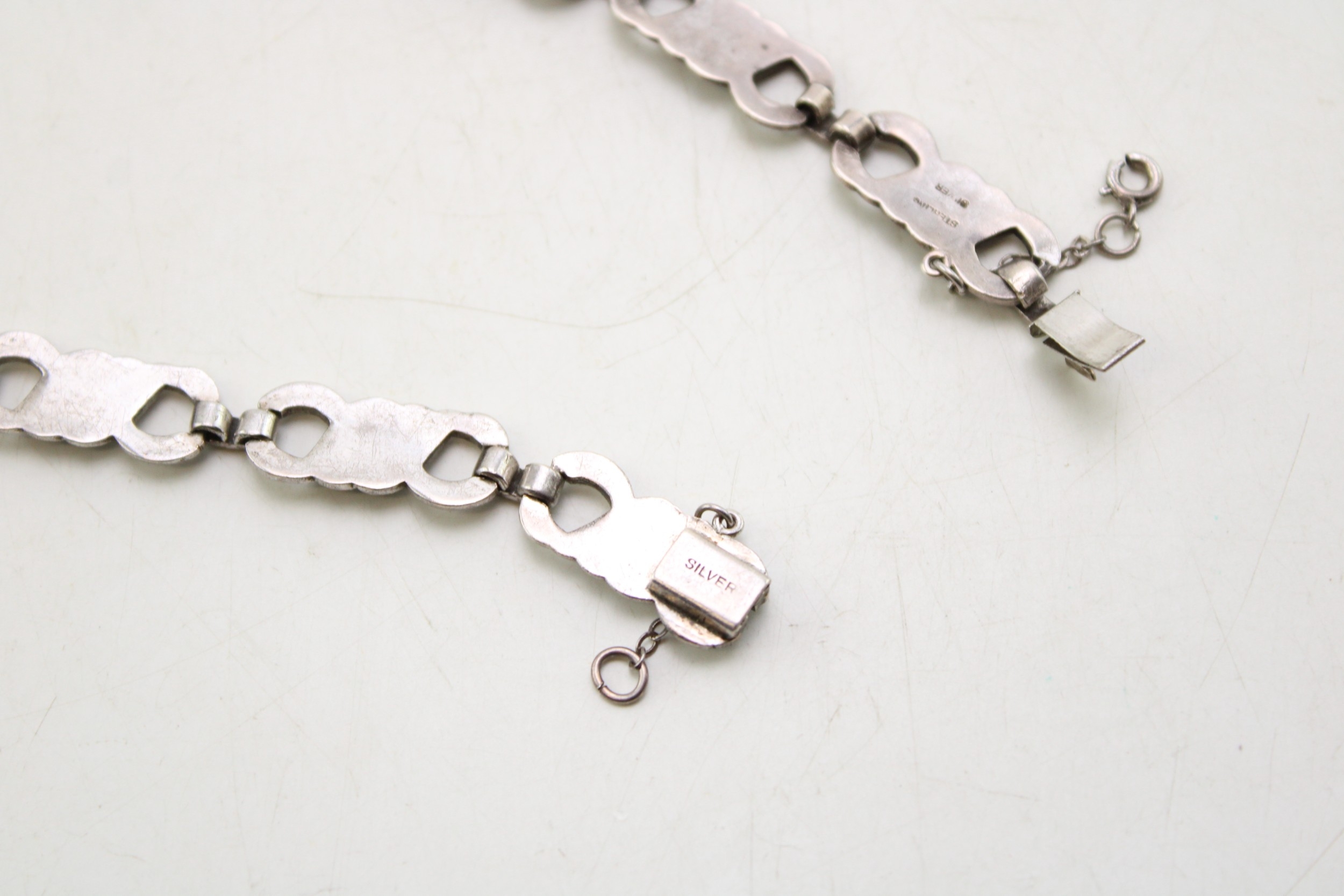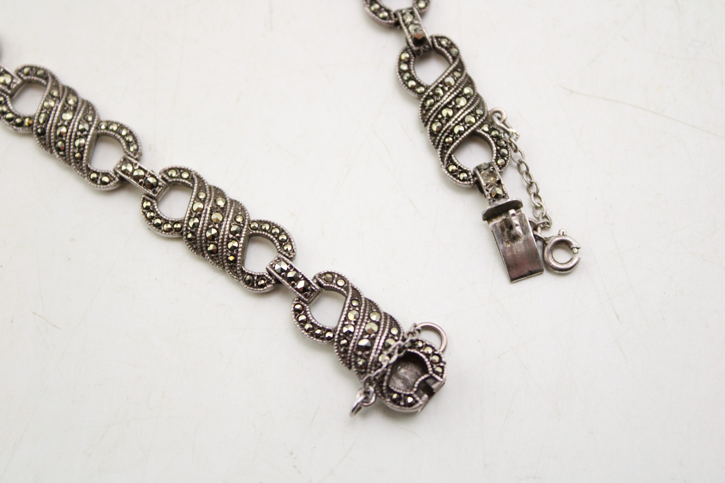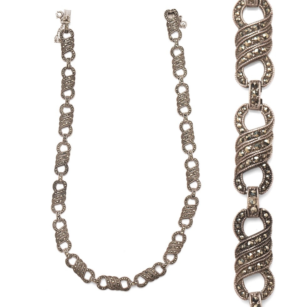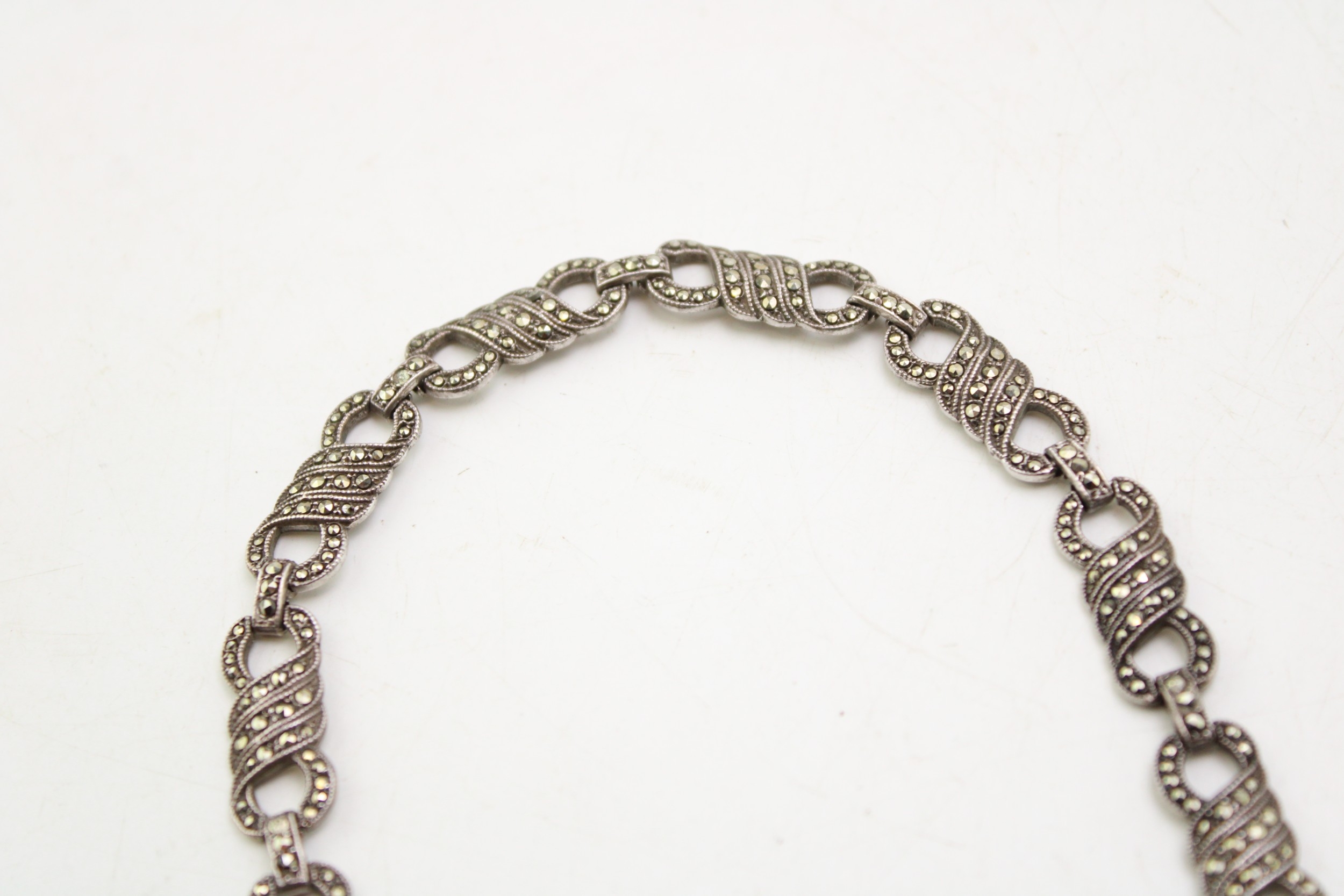 A silver marcasite necklace, 39cm long.