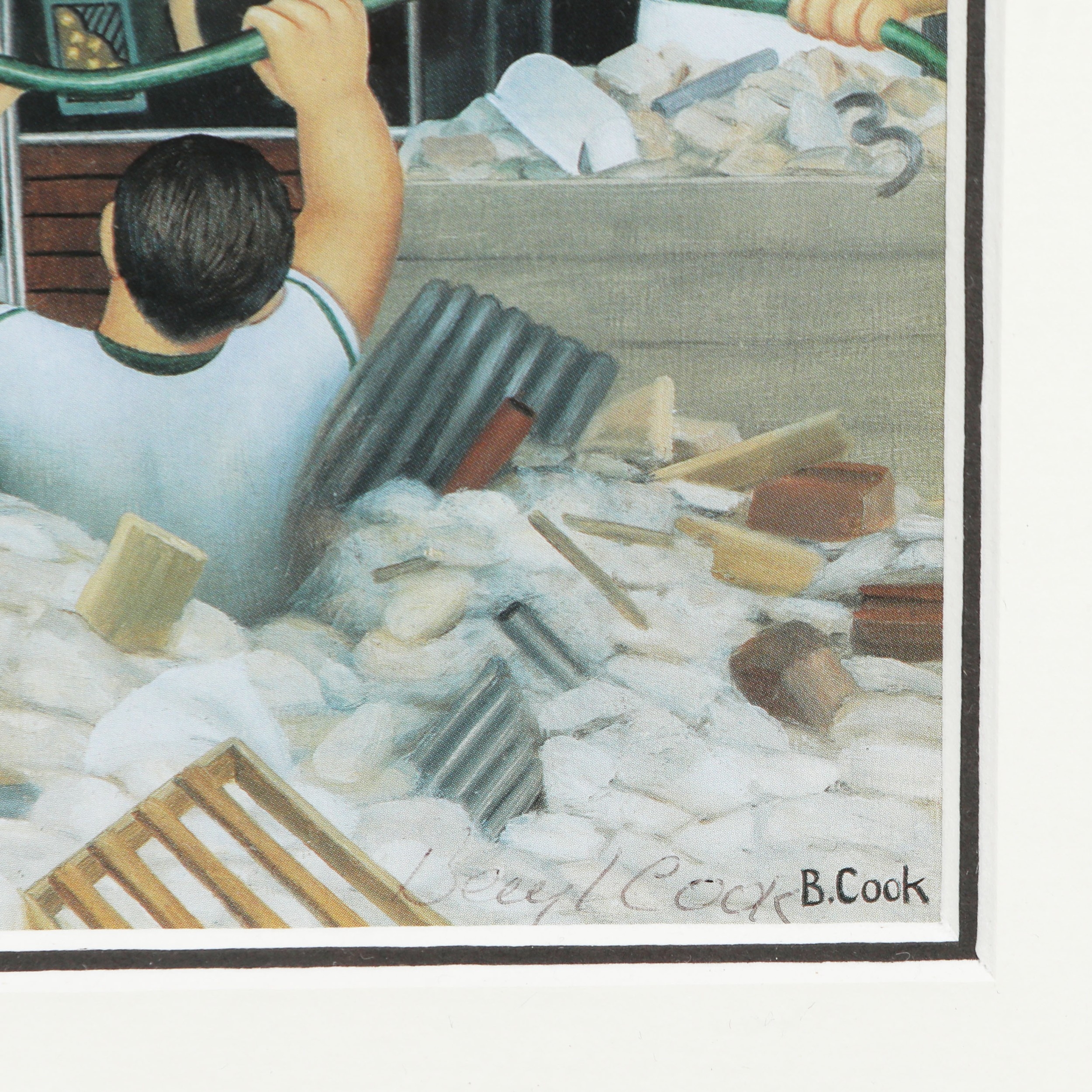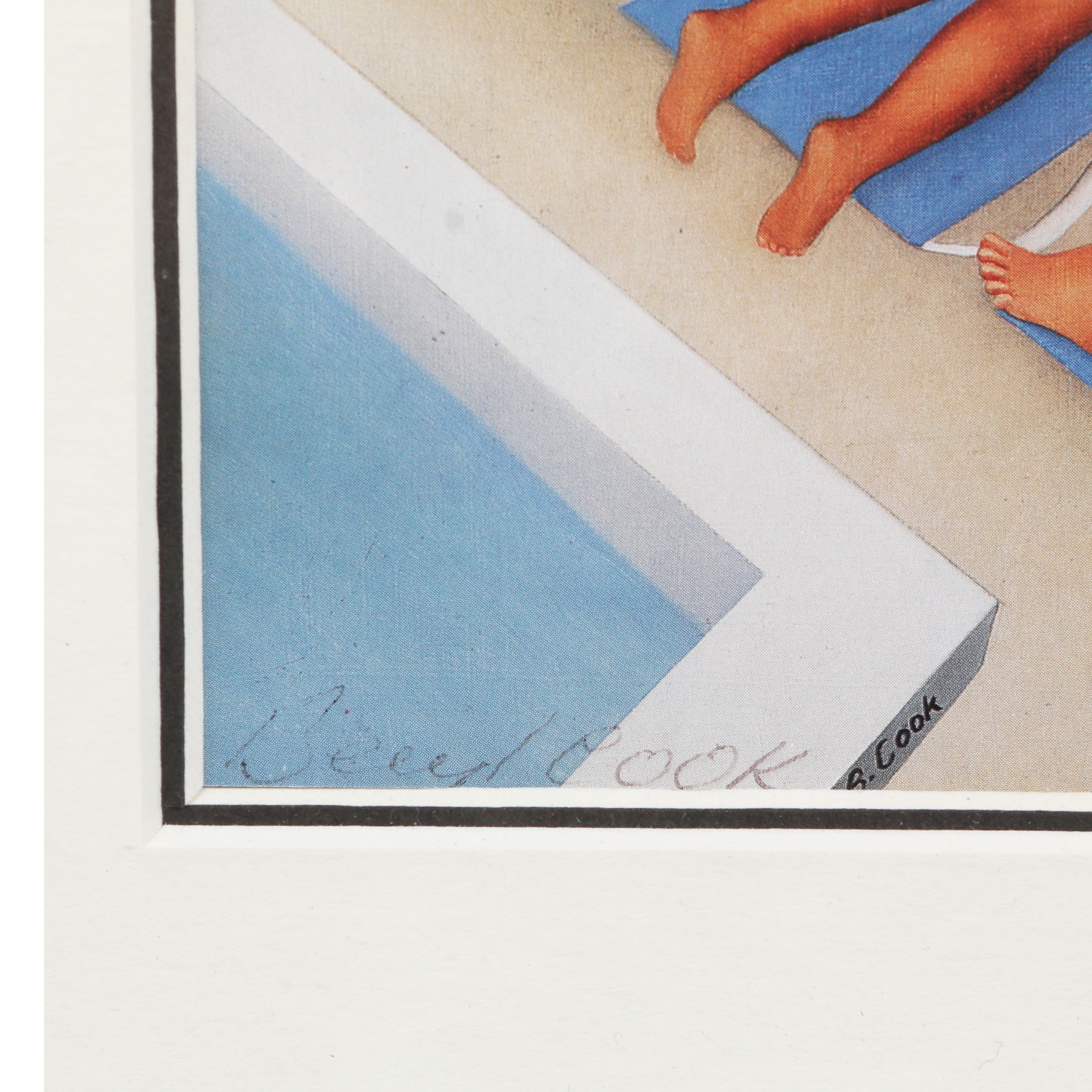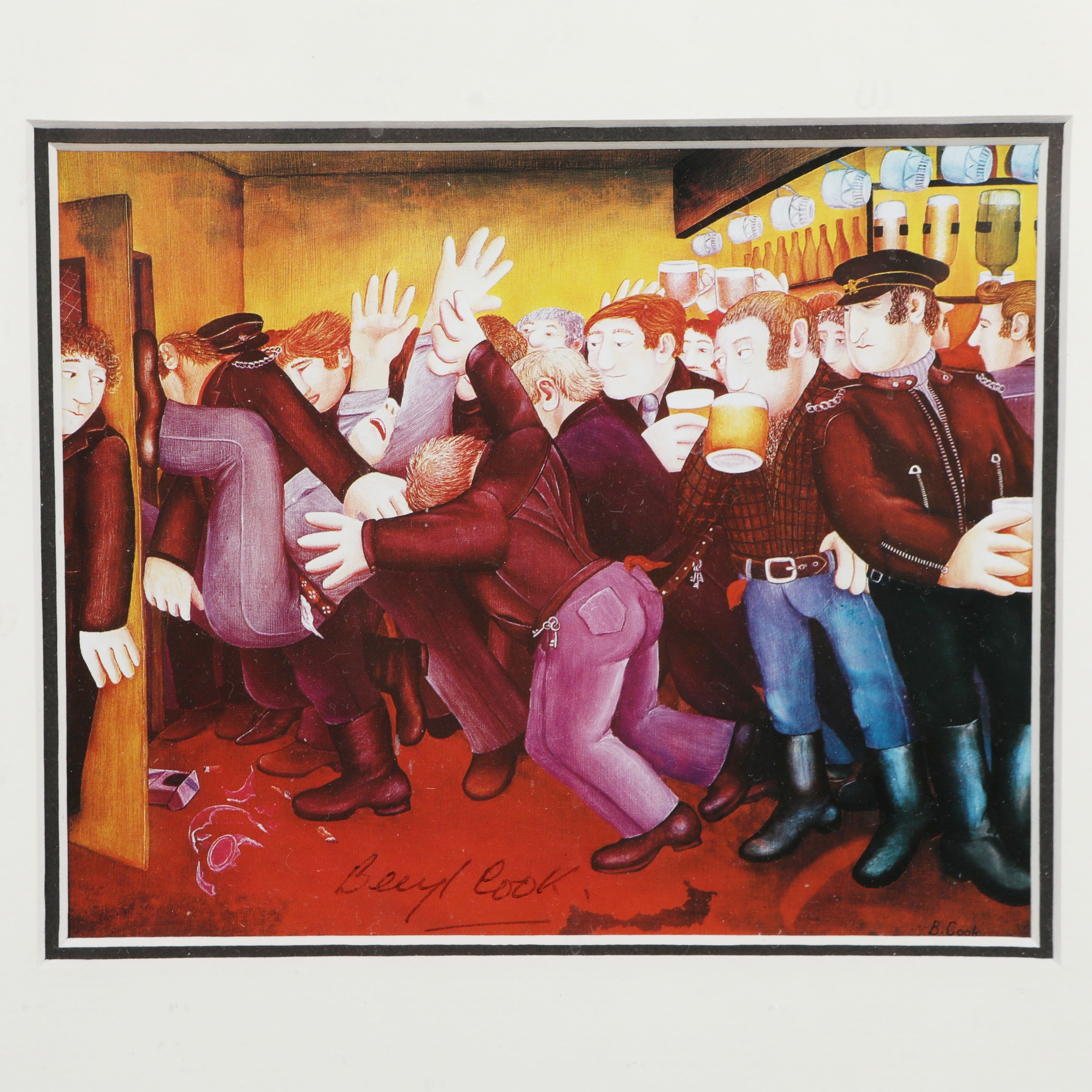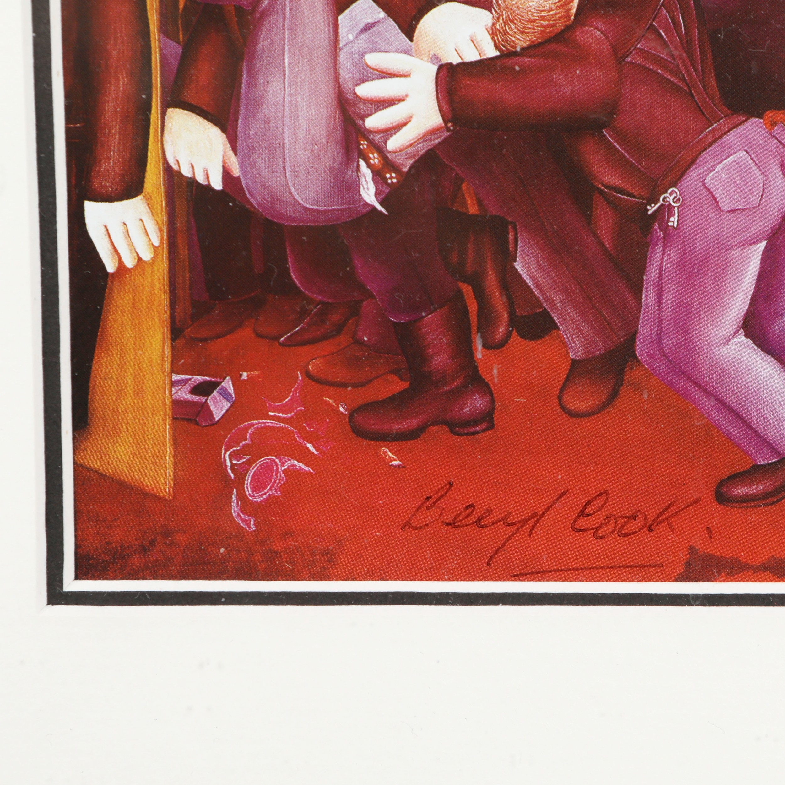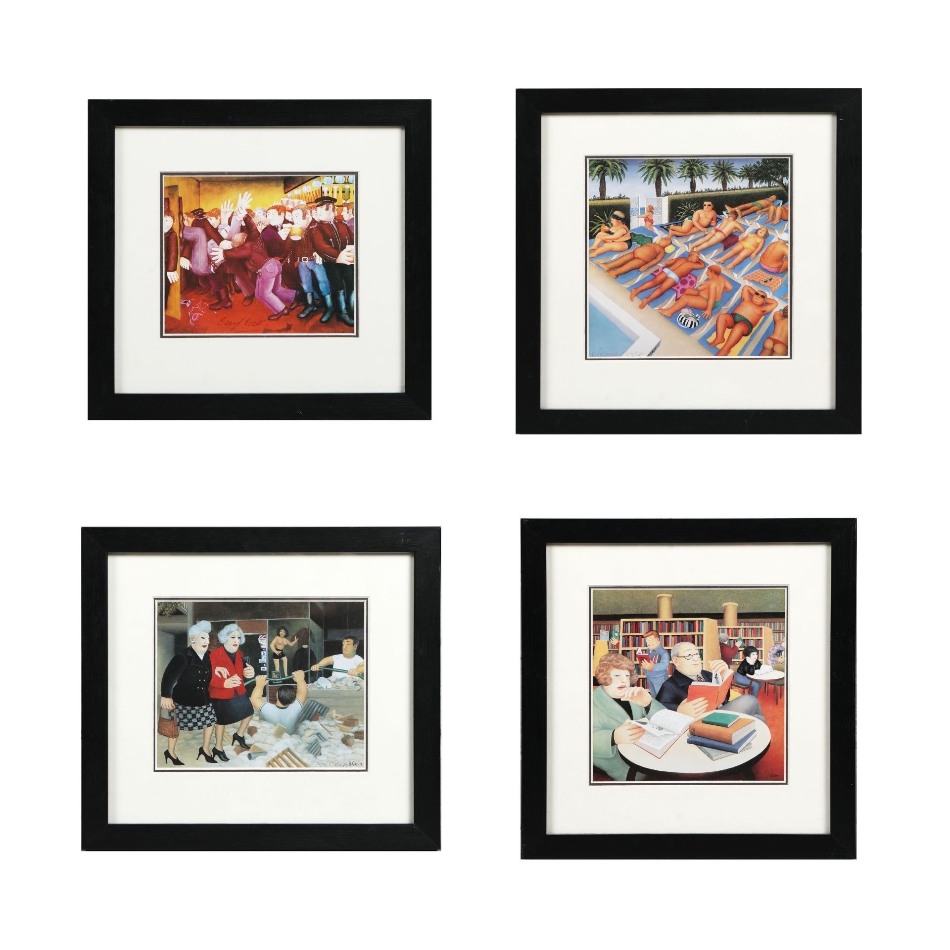BERYL COOK (1926-2008). A COLLECTION OF PRINTS ON PAPER (4). all signed, mounted, glazed and framed, the largest measuring at 30 cm H x 29 cm W approx. (framed).