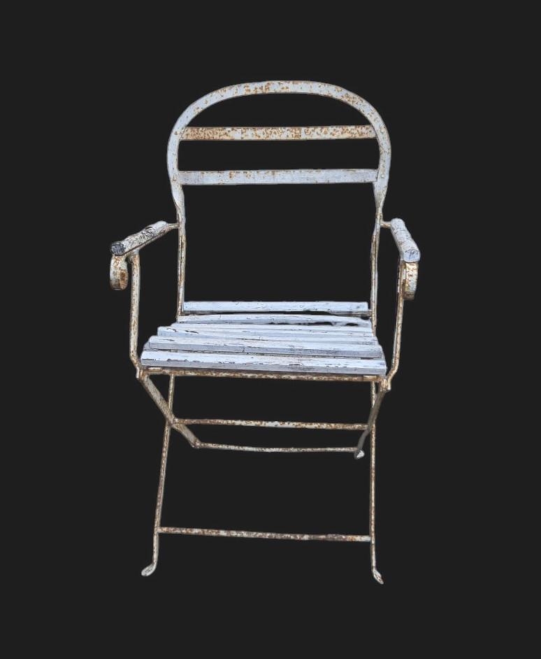 A folding metal garden chair. Provenance: property of the late actor Michael Gough
