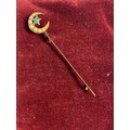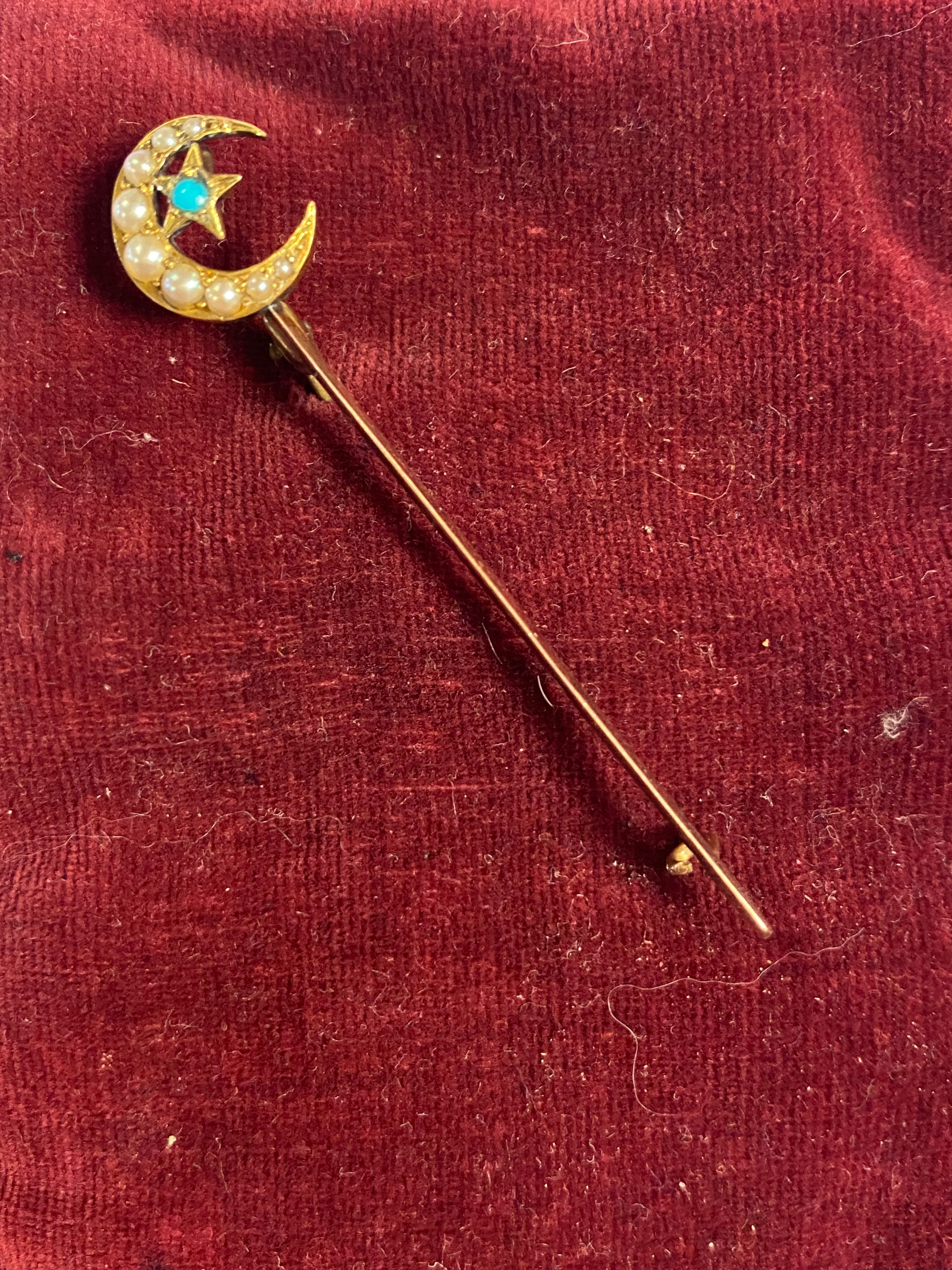 set with a turquoise and seed pearl crescent moon and star on a knife bar -