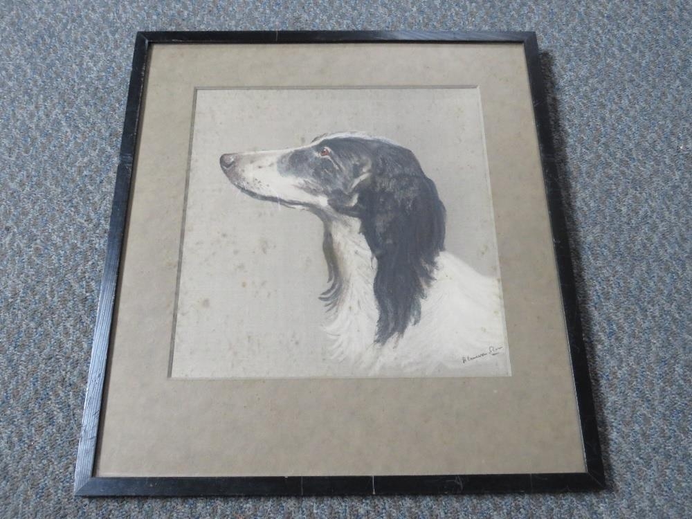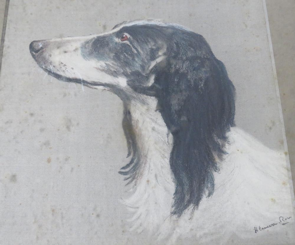 H. A. CAMERON-ROSE (XIX-XX). A portrait of a dog, signed lower right, mixed media on paper laid on board, framed and glazed, 26 x 26 cm