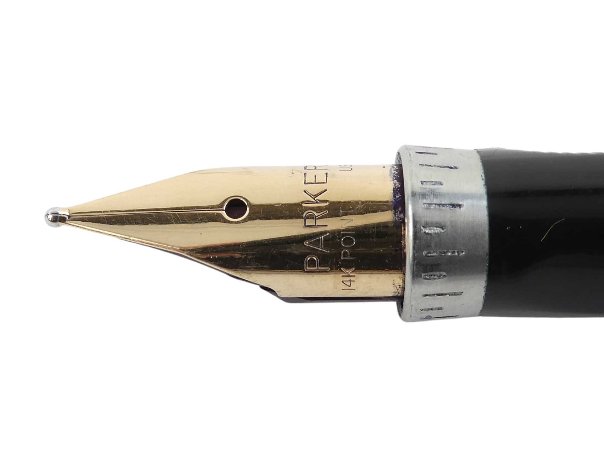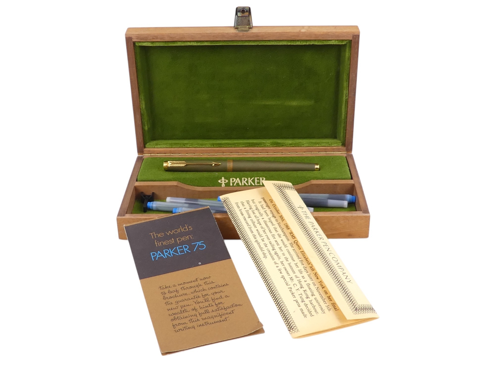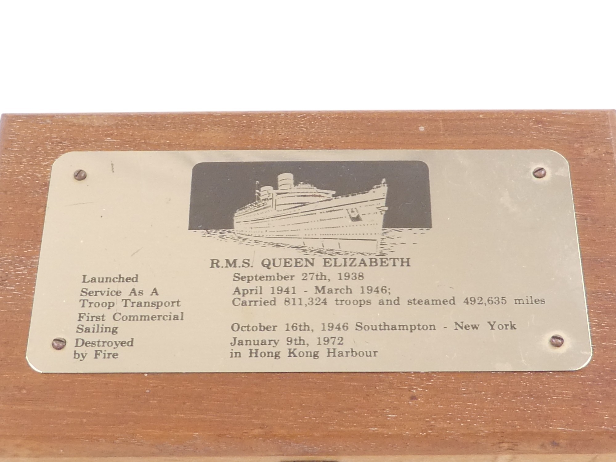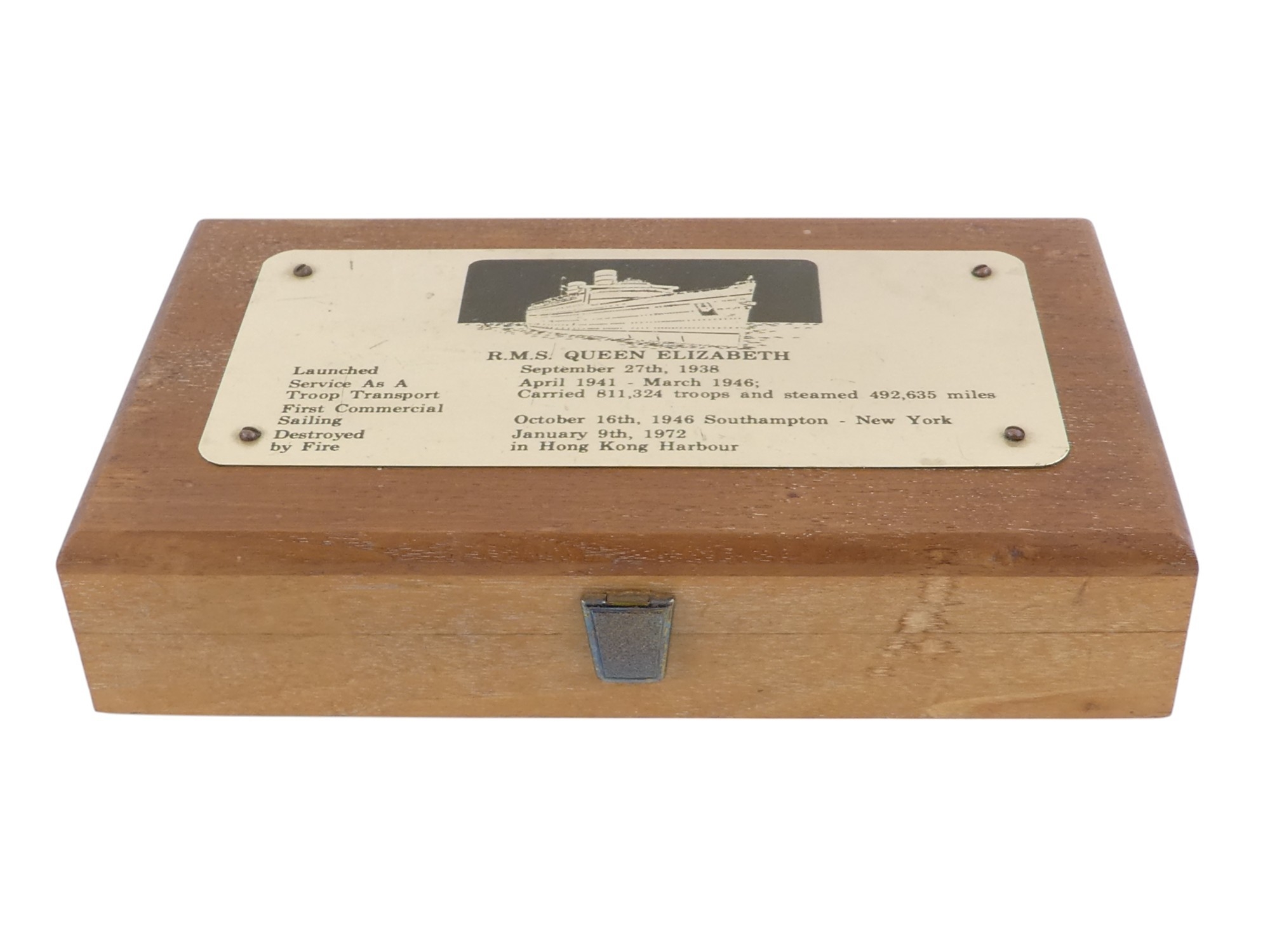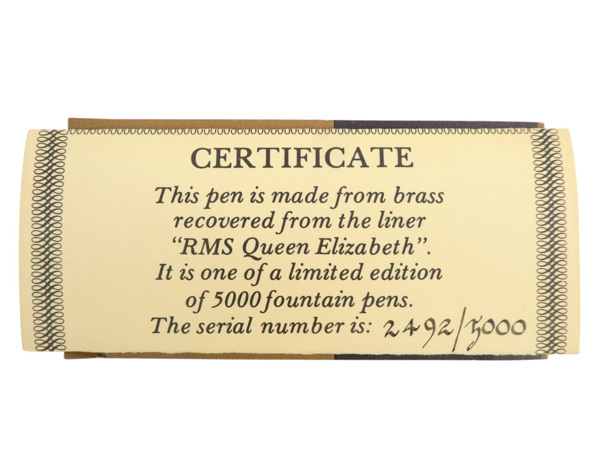 A Parker 75 RMS Queen Elizabeth commemorative fountain pen - worked from brass recovered from the vessel, within a presentation box.