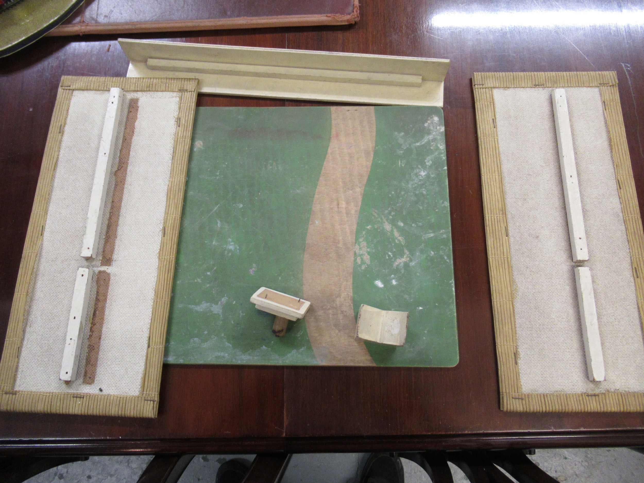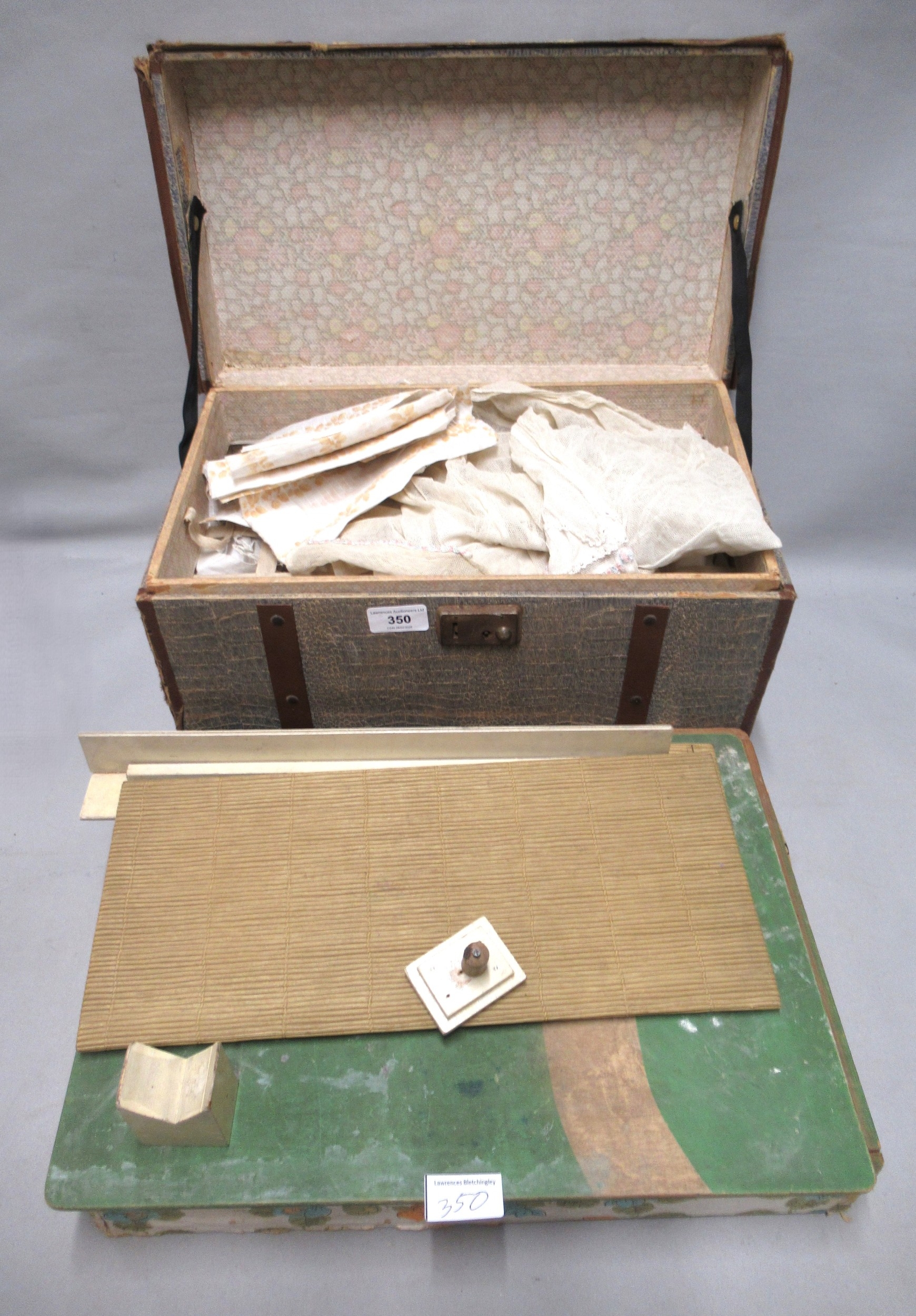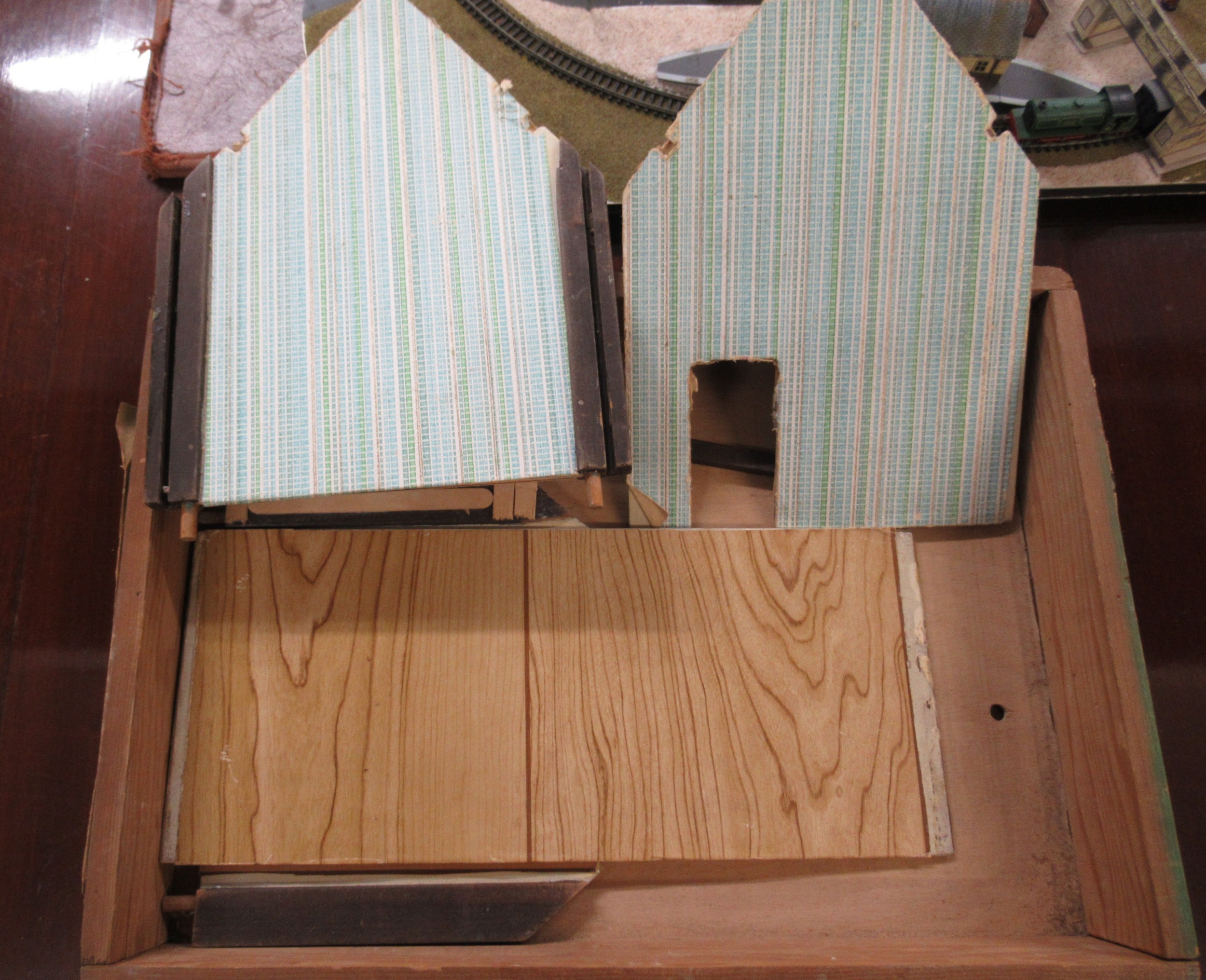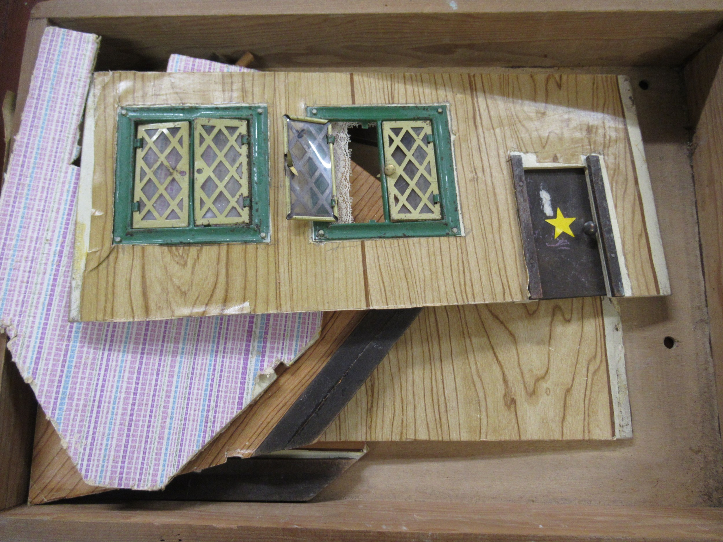Dolls travelling trunk wardrobe and a dolls folding house