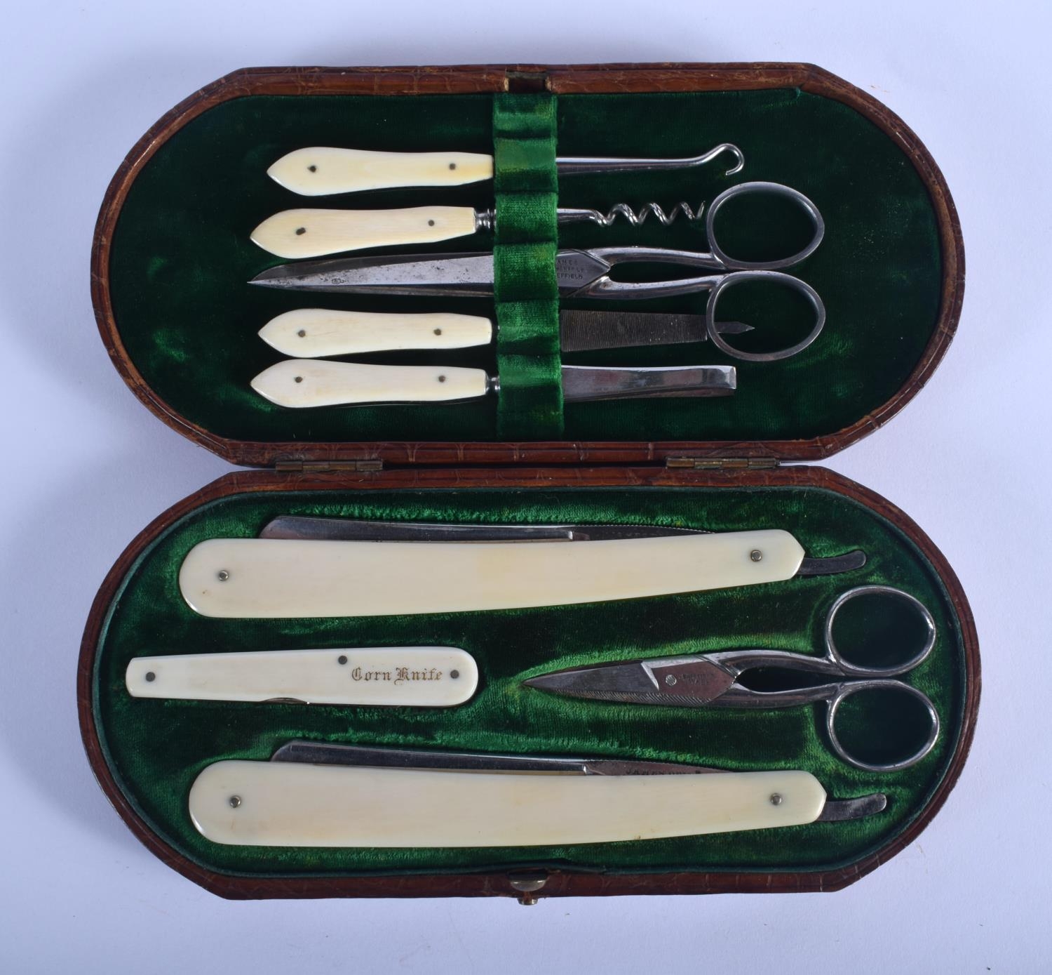 A COLLECTION OF ANTIQUE IVORY GROOMING KIT. 20 cm x 10 cm.