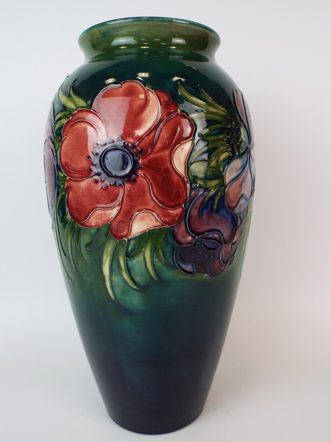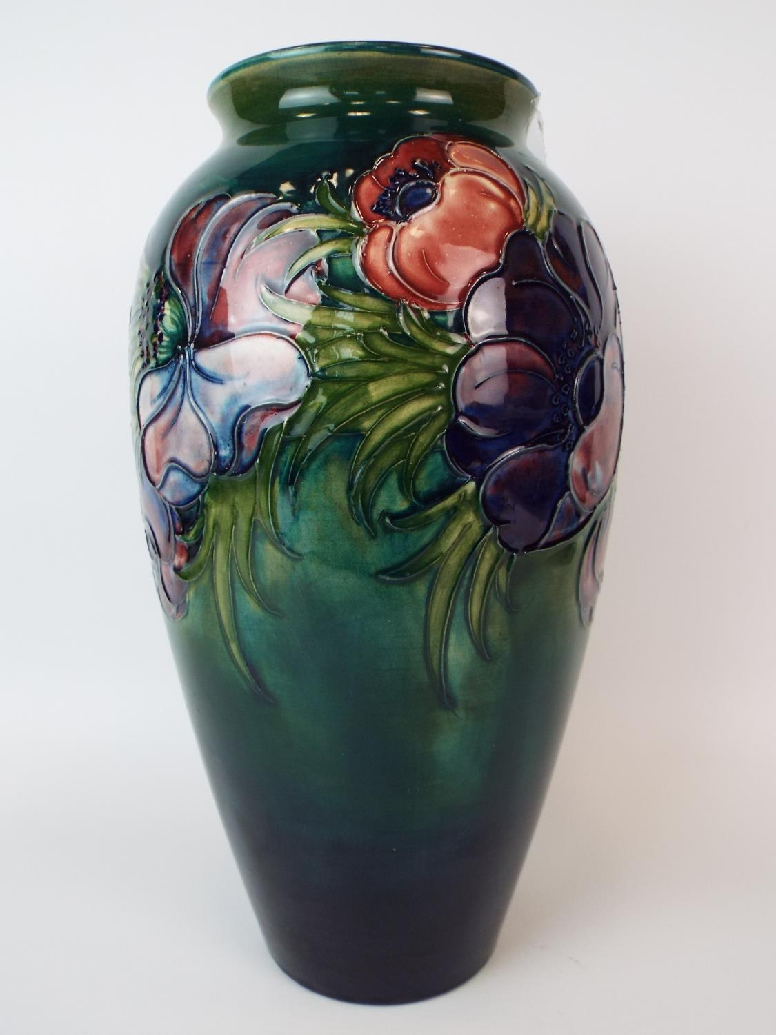 Large Moorcroft vase in the Anemome design. 12.5 inches tall. Excellent conditon free from any faults. Has Queen Mary sticker to base. 1953-78