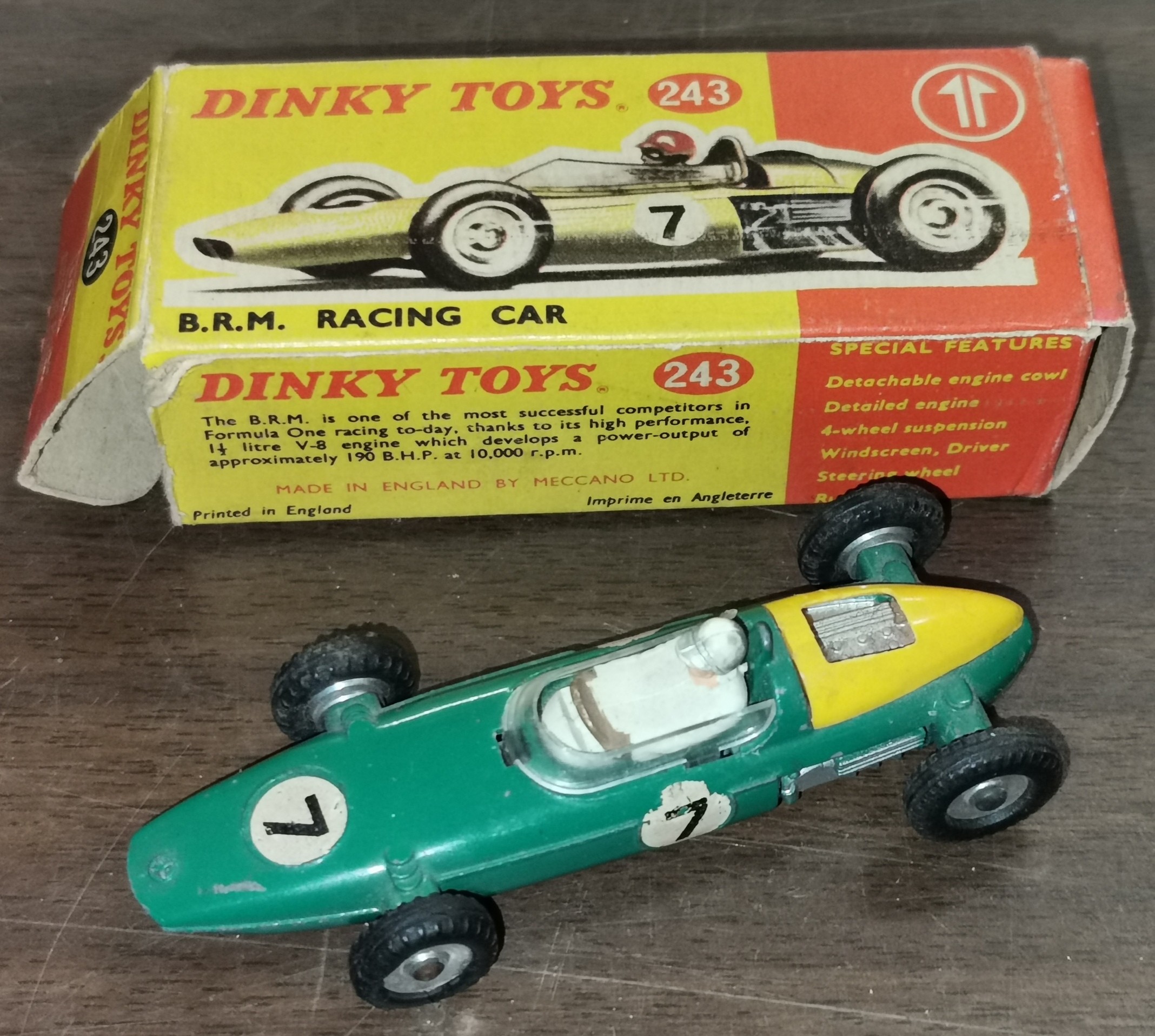 Dinky 243 BRM racing car (silver helmet) in original box