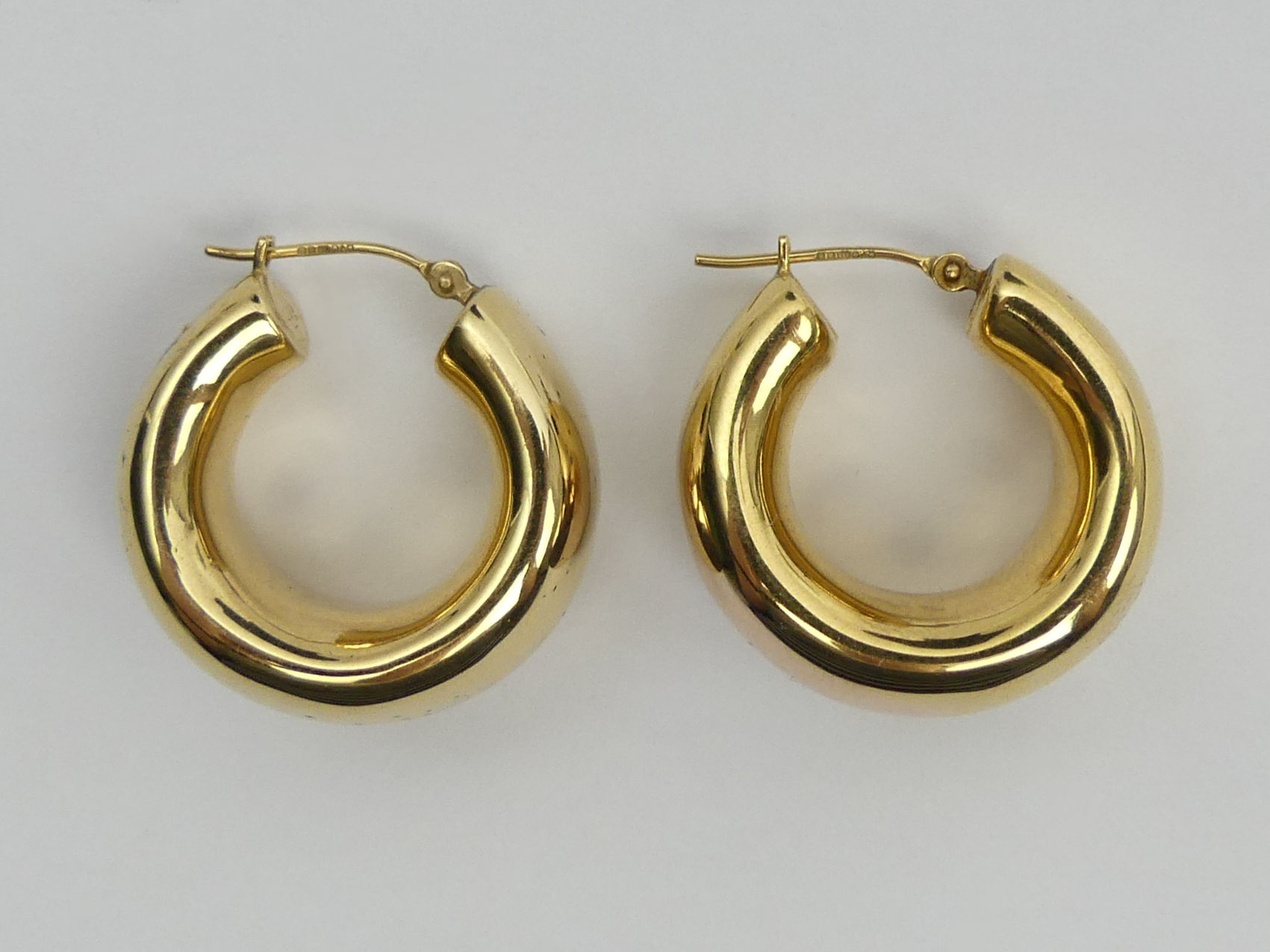 A pair of 9ct gold wide hoop earrings, 4.5 grams. 12.8 x 25 mm. UK Postage £12.