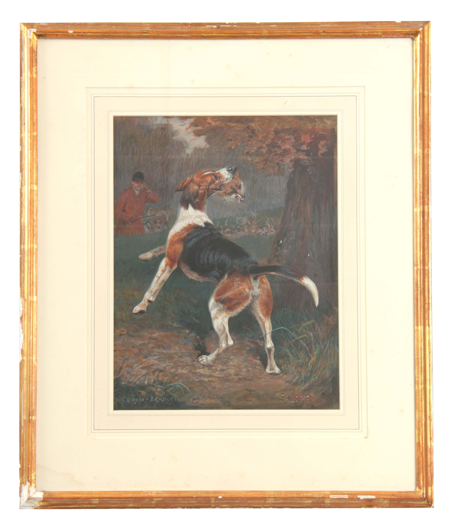 CUTHBERT BRADLEY WATERCOLOUR Hound with fox head 38.5cm high, 29.5cm wide - mounted in glazed gilt moulded frame