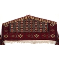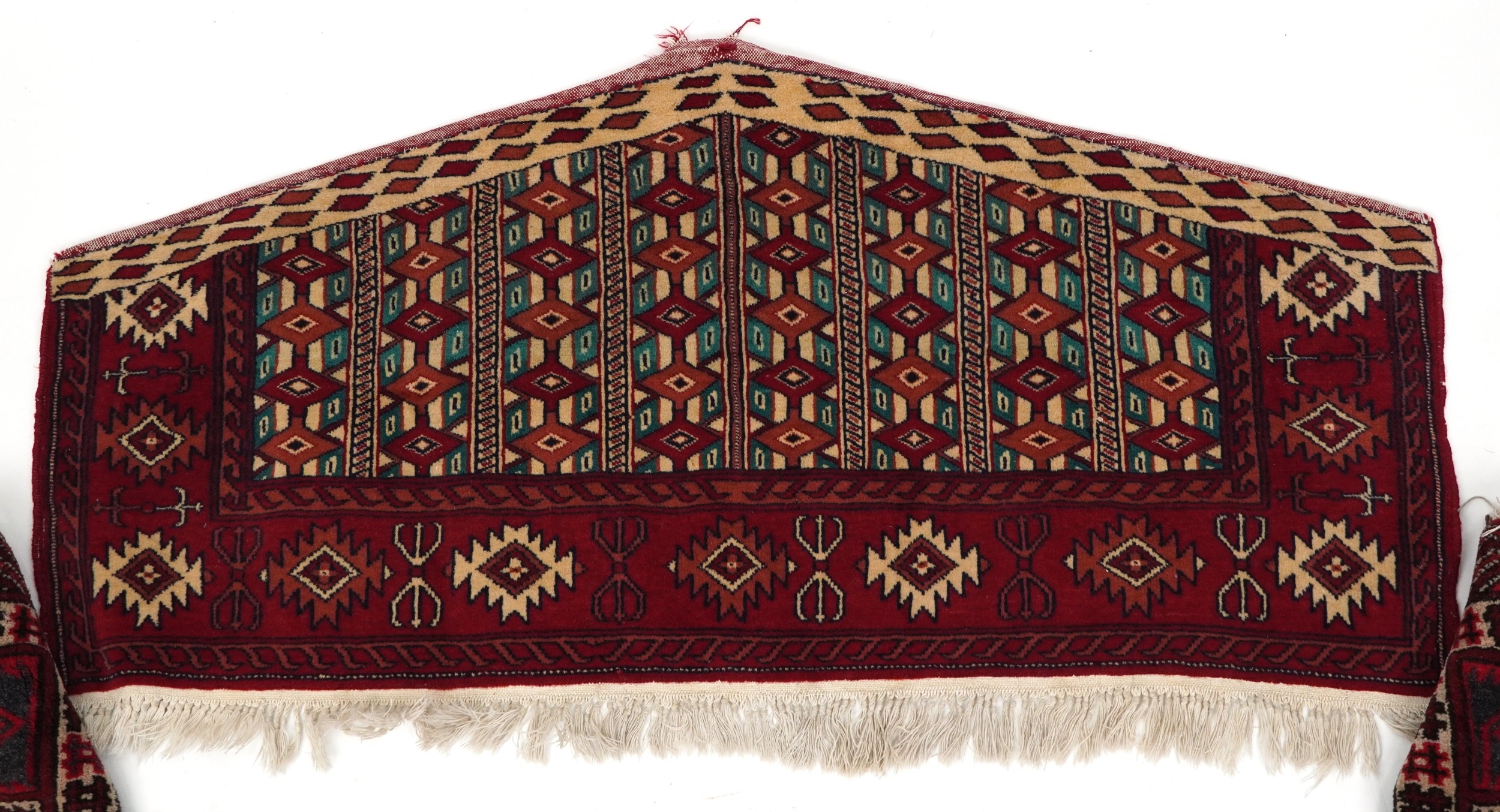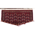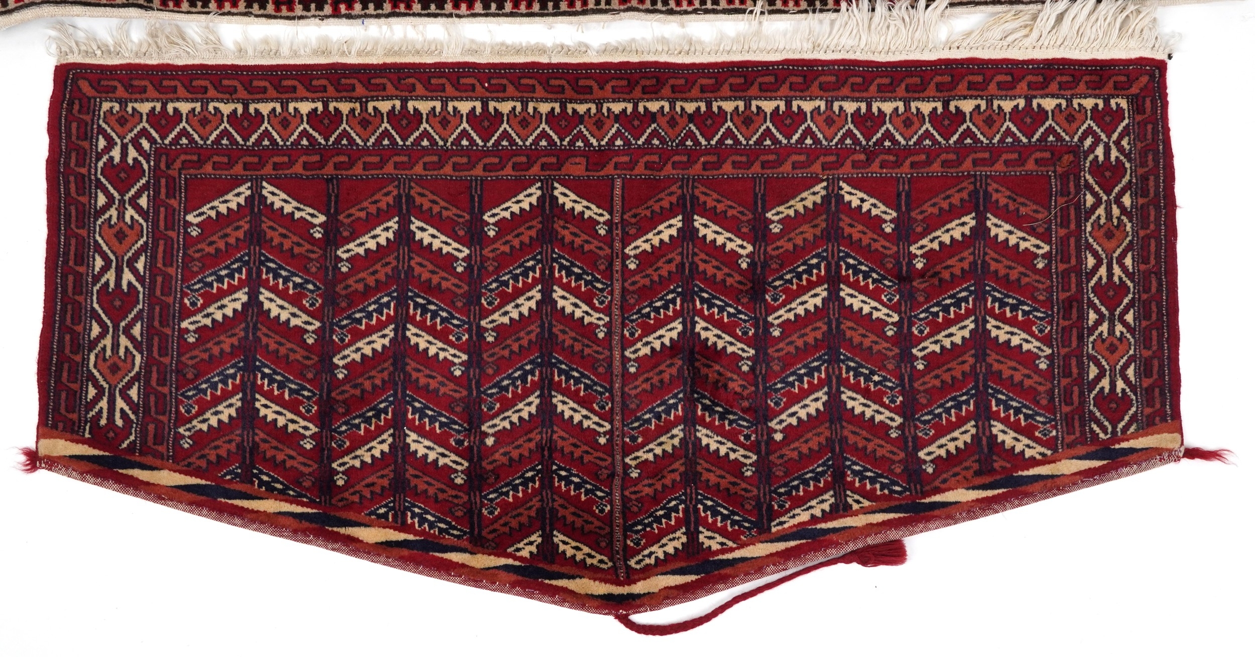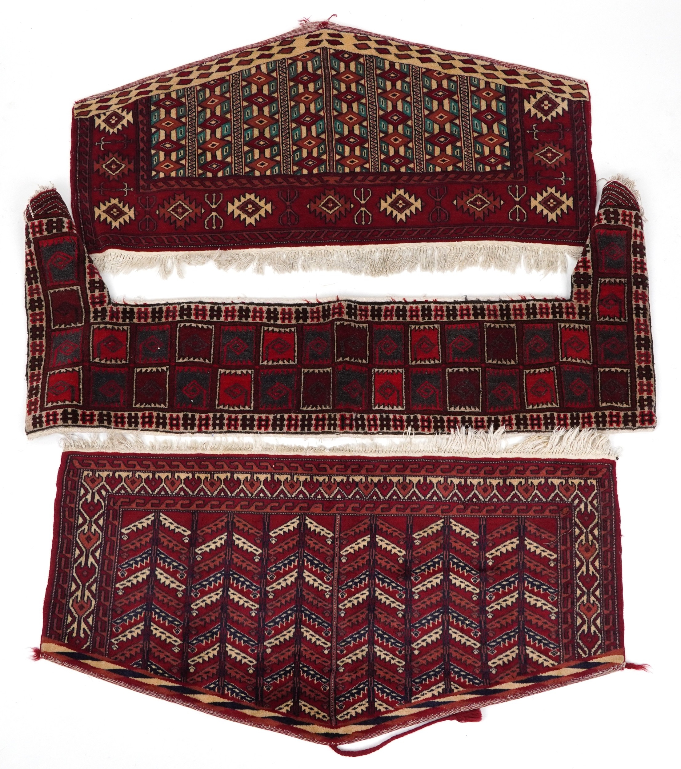 Three Turkmen door hangings, late 20th century, each with typical red field and stylized motifs, the largest 145cm wide.