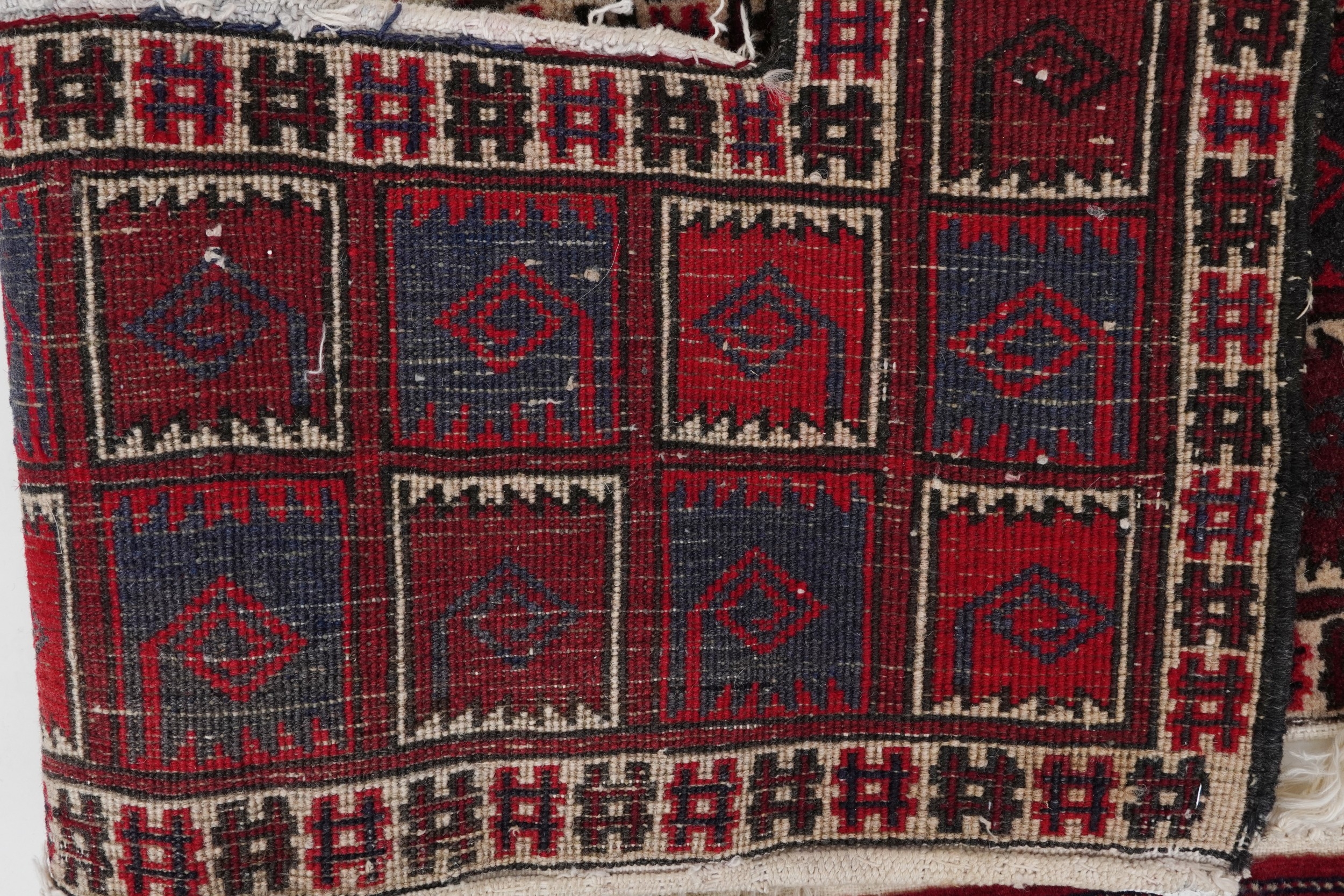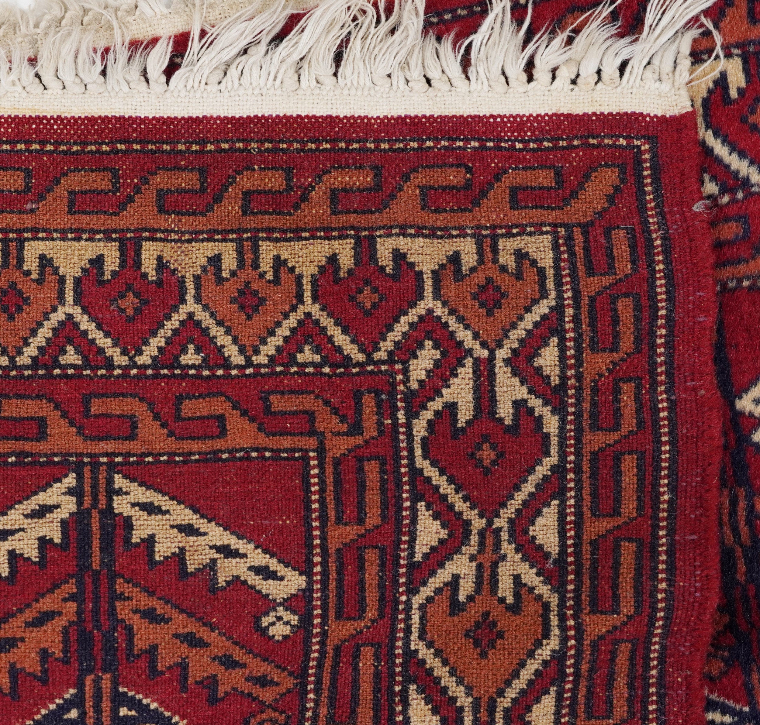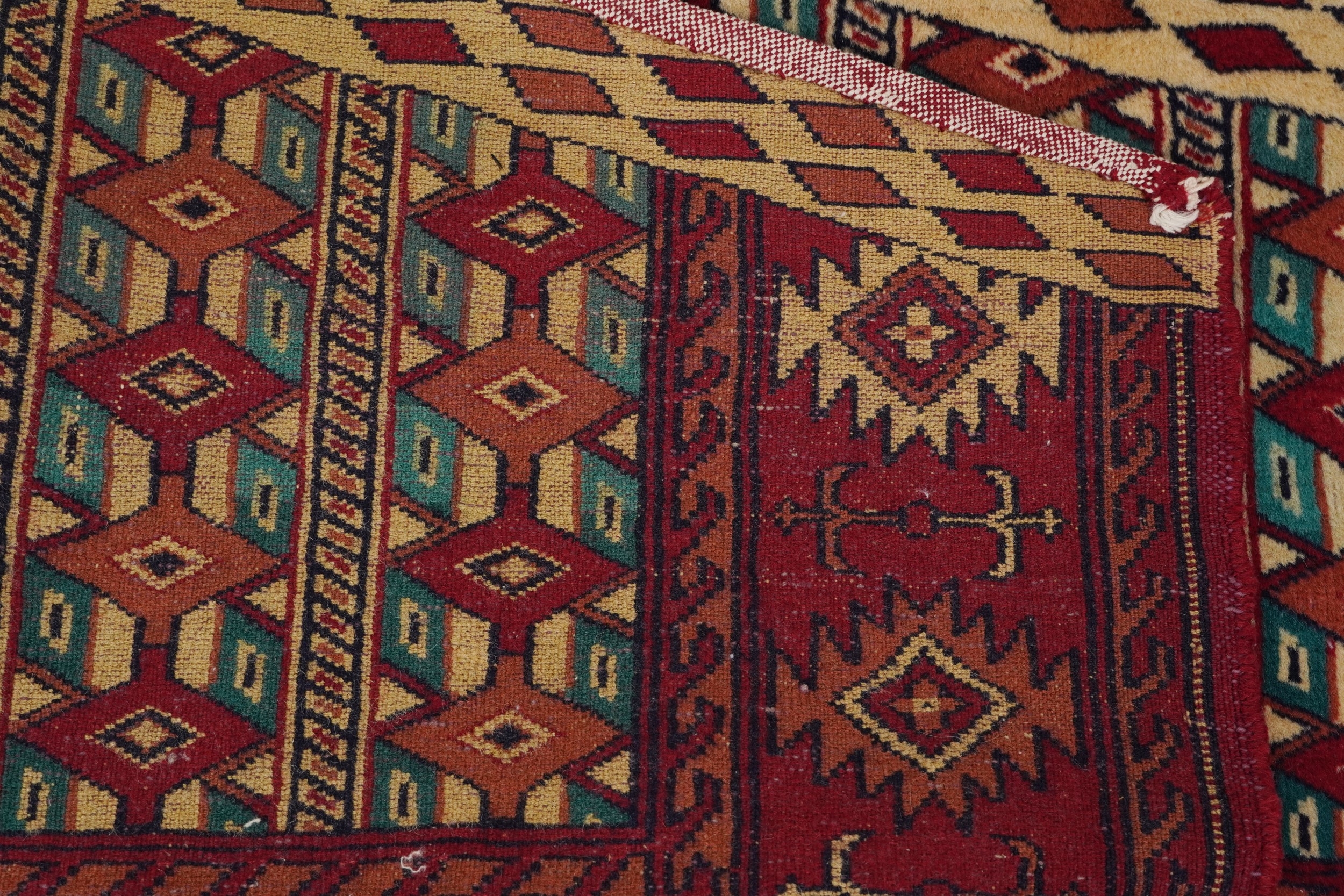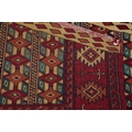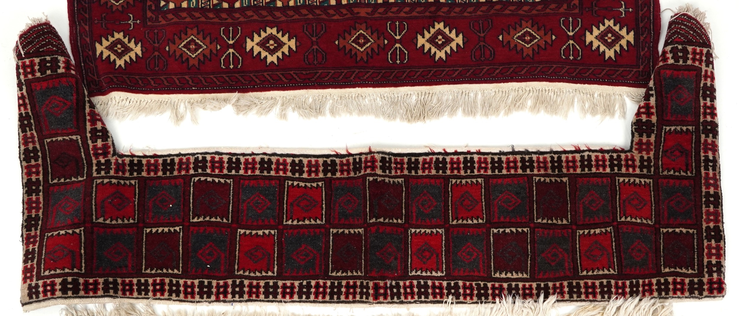 Three Turkmen door hangings, late 20th century, each with typical red field and stylized motifs, the largest 145cm wide.
