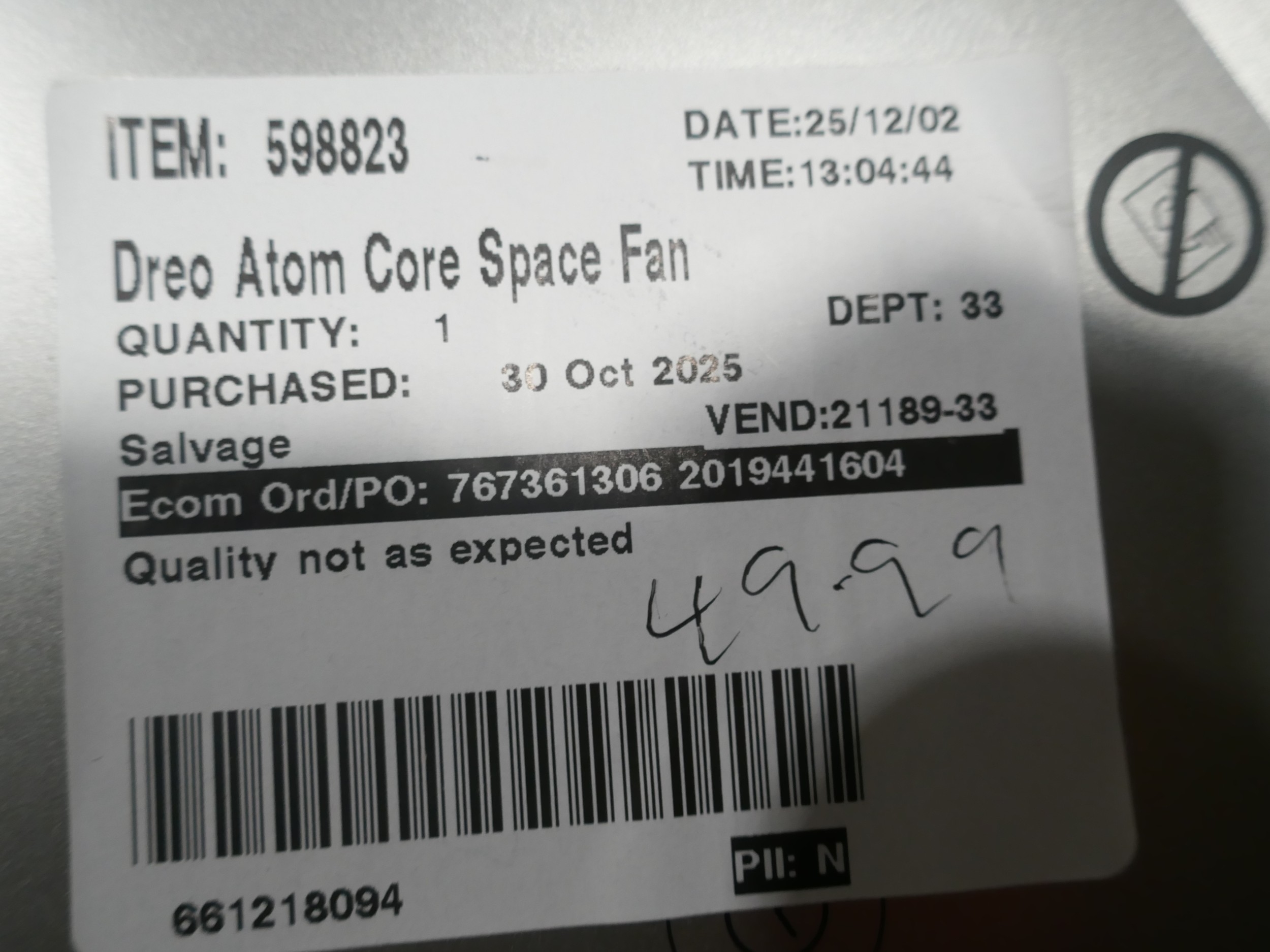 A Dreo Atom Core space fan (377-30) *This lot is subject to ...