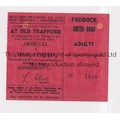 MANCHESTER UNITED Ticket for the CCTV showing at Old Trafford of the away League match v Arsenal 3/3/1967, very slightly creased and 2 punched holes repaired. Generally good