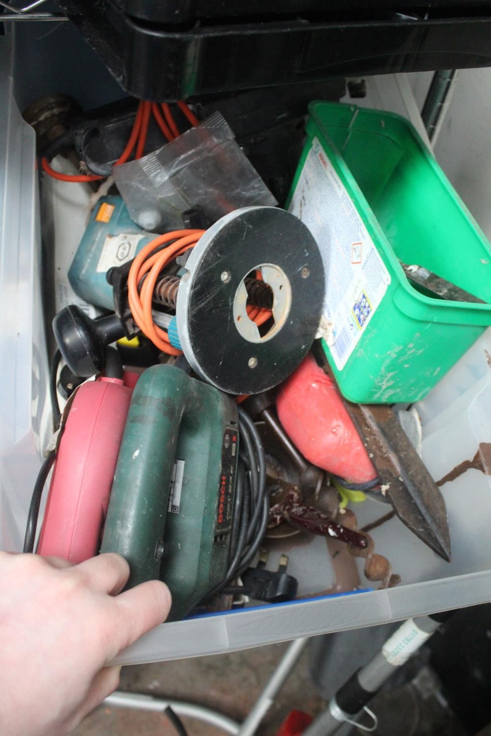 BOX OF ELECTRICAL TOOLS, JIGSAWS ETC