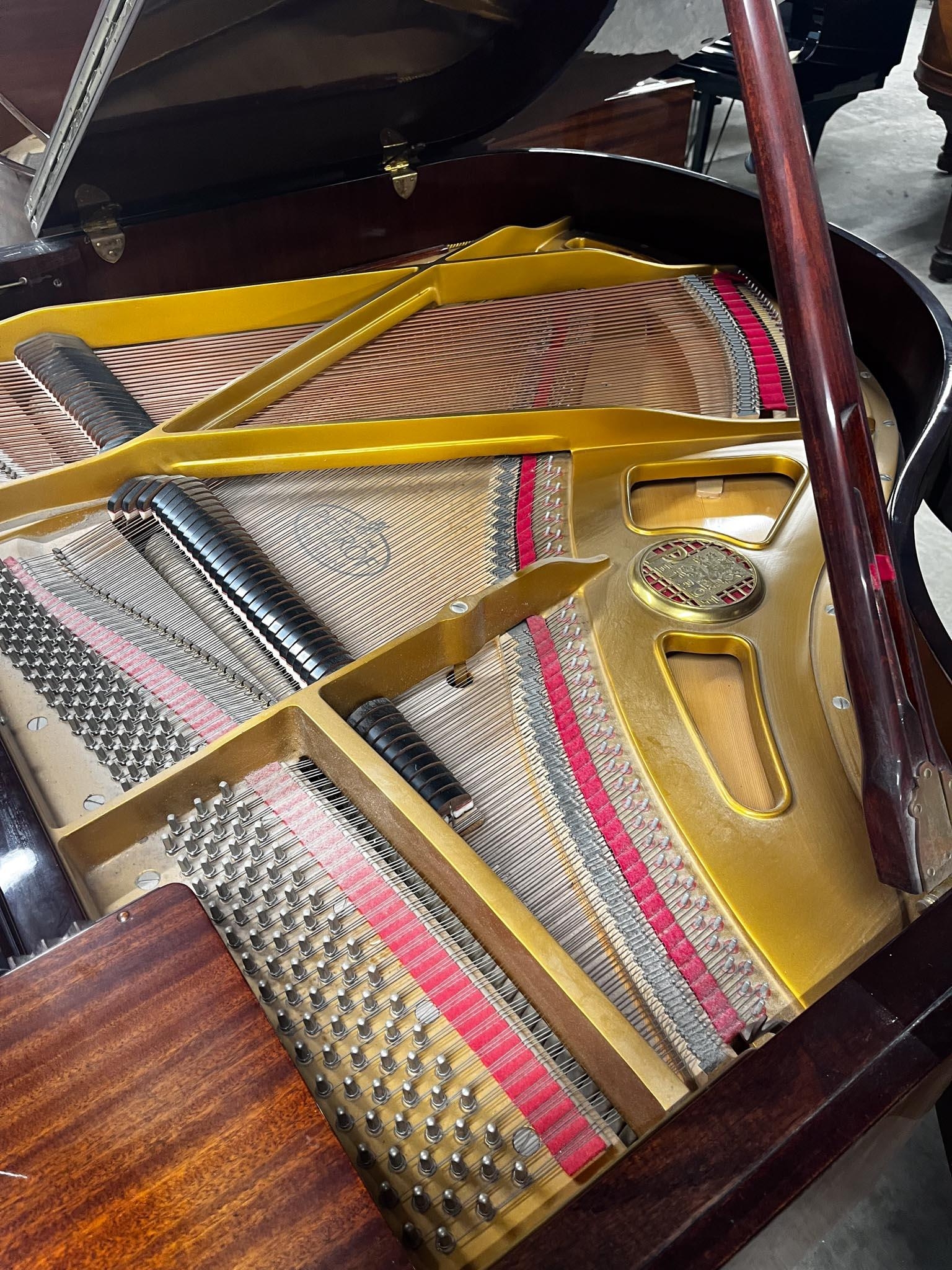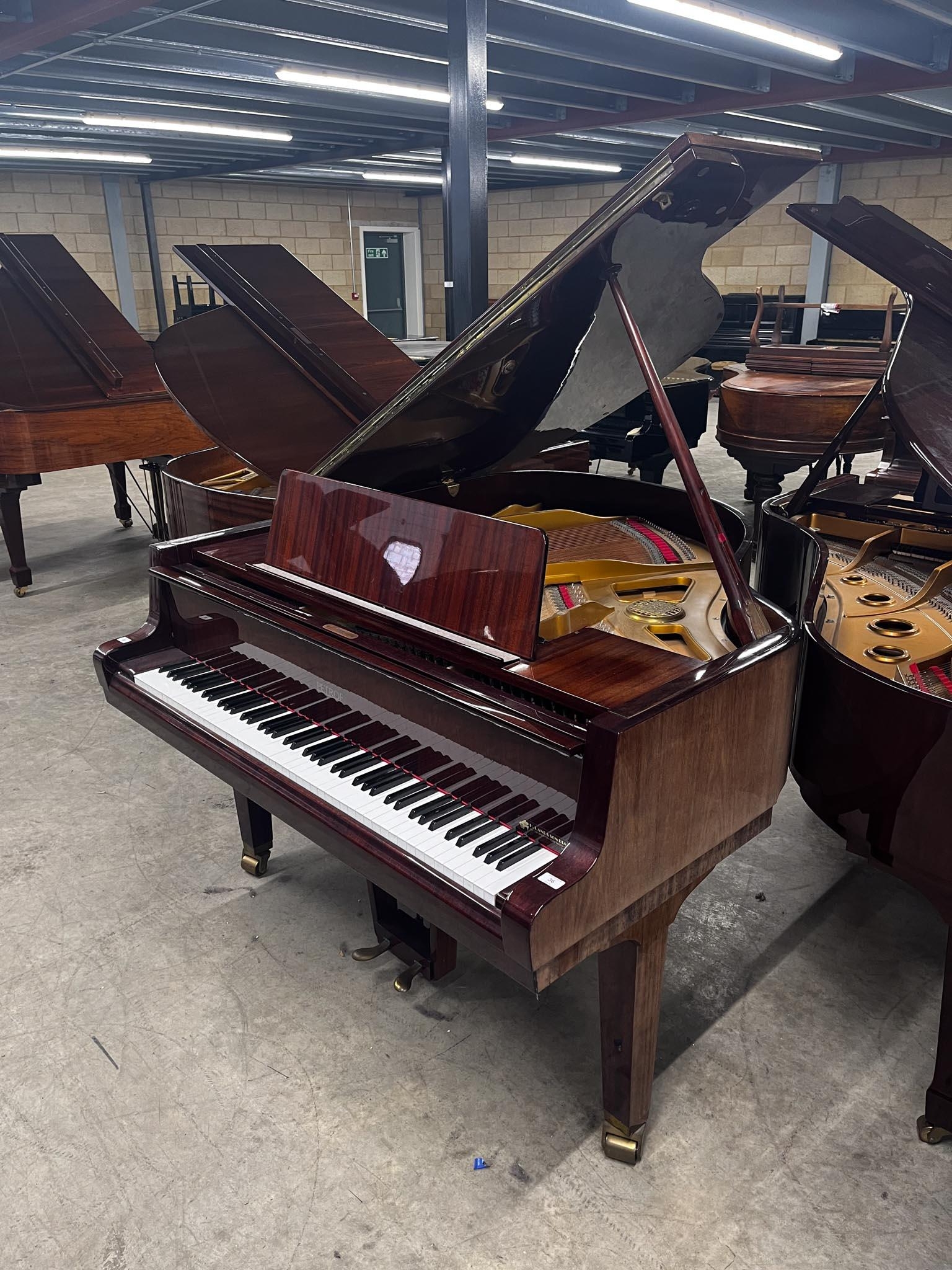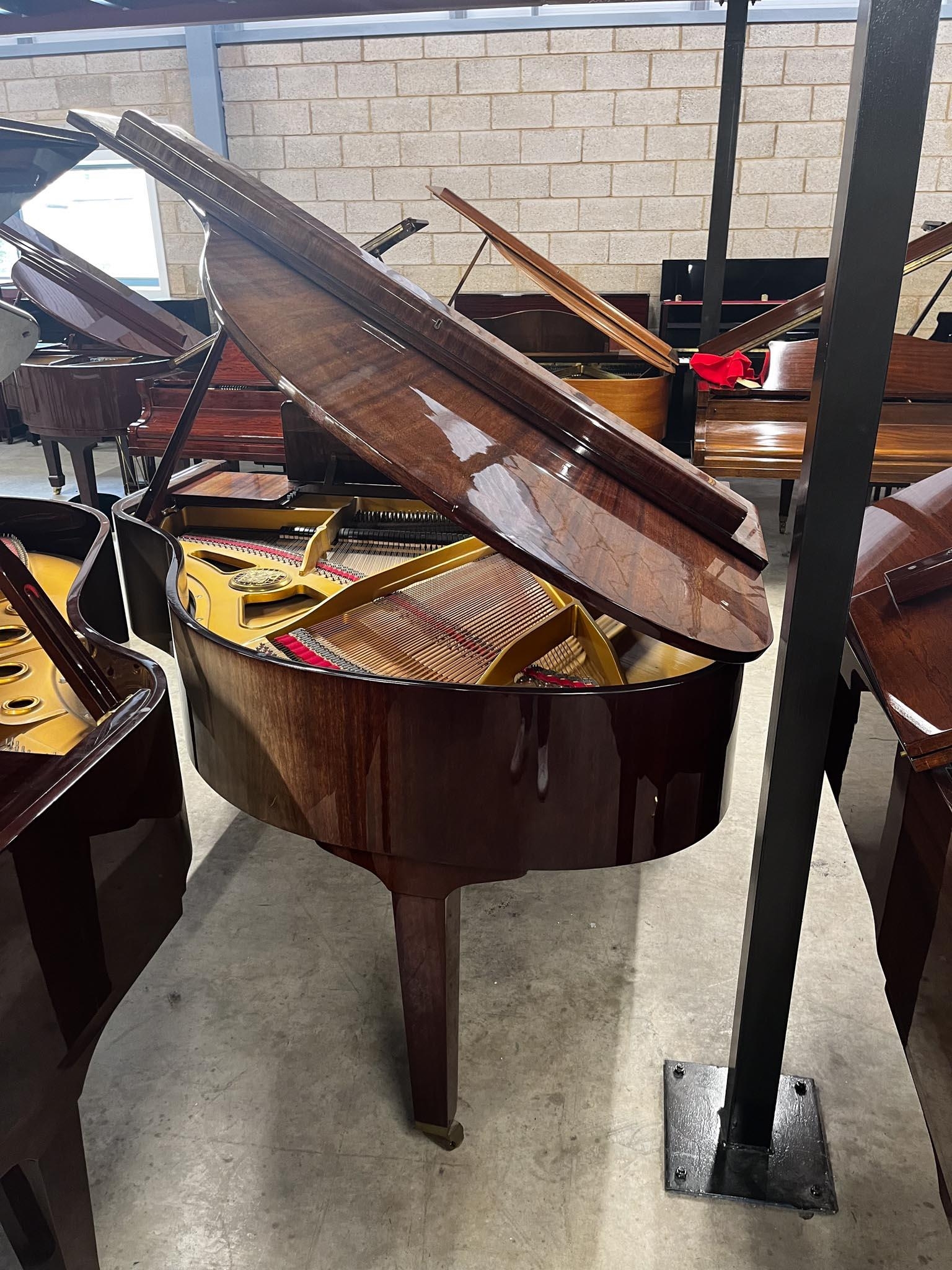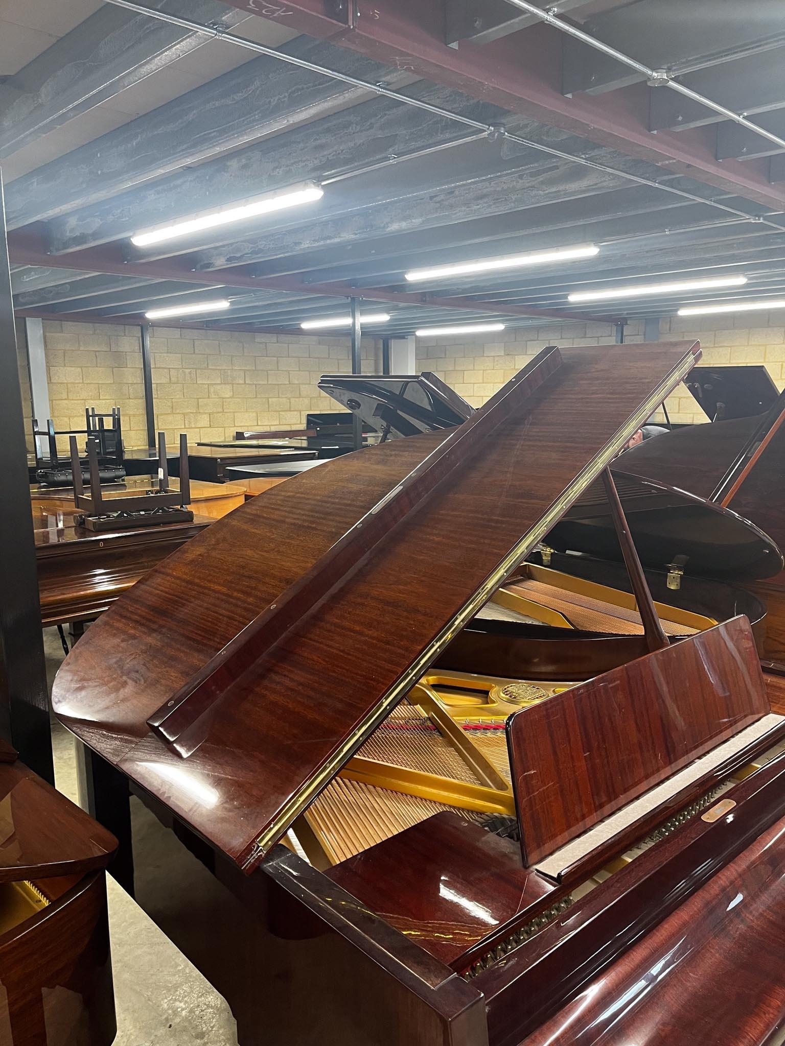 A 5ft 3in Model V grand piano in a bright mahogany case on square tapered legs.