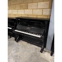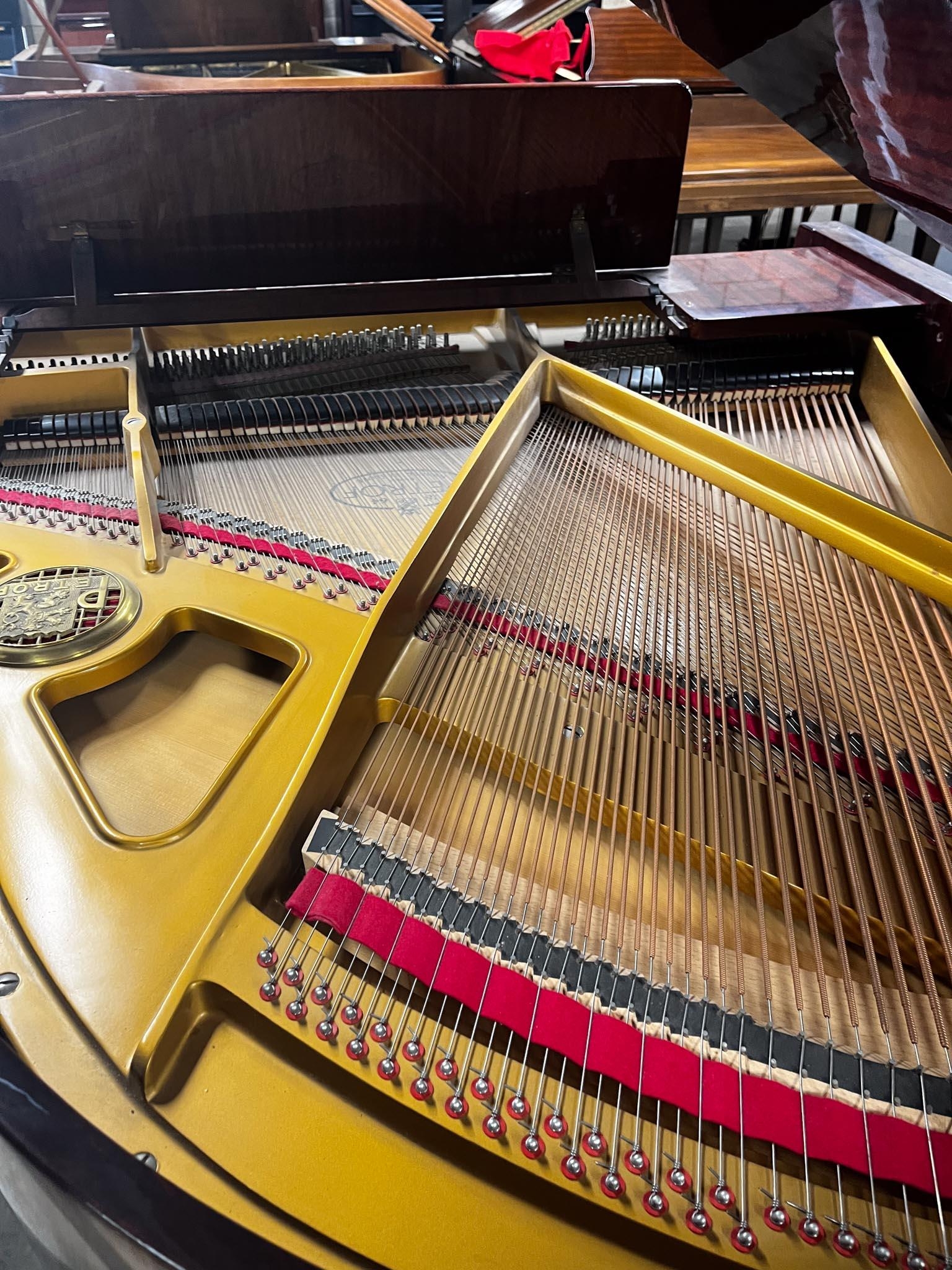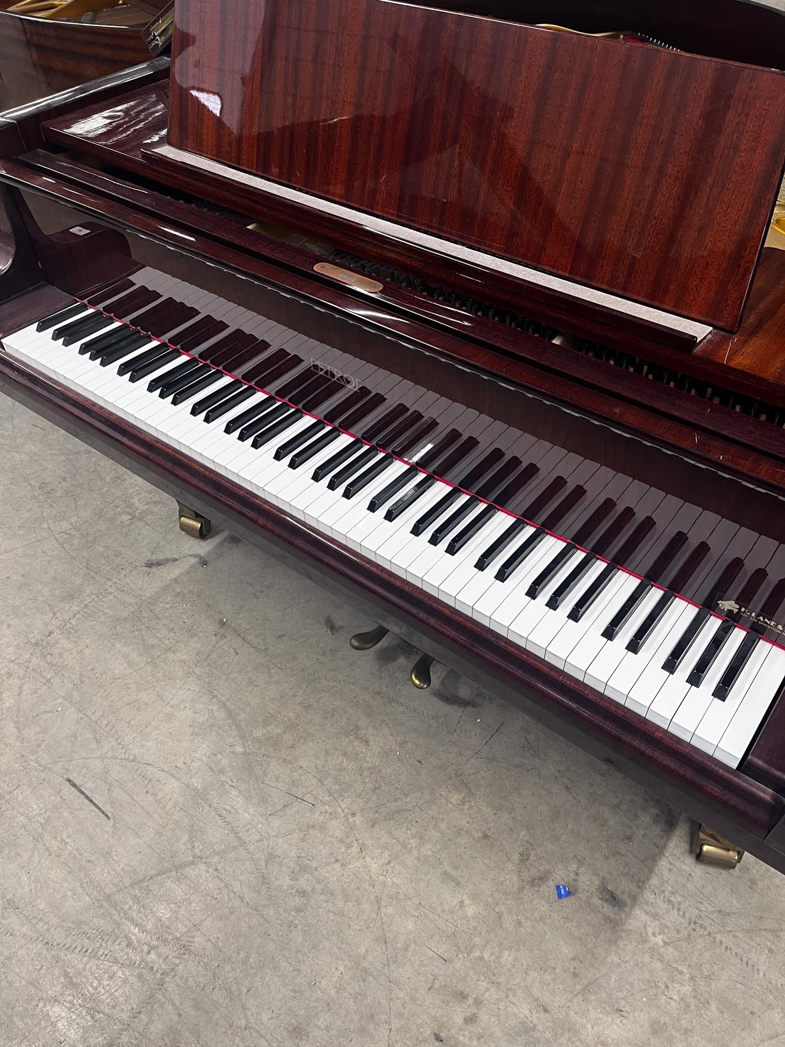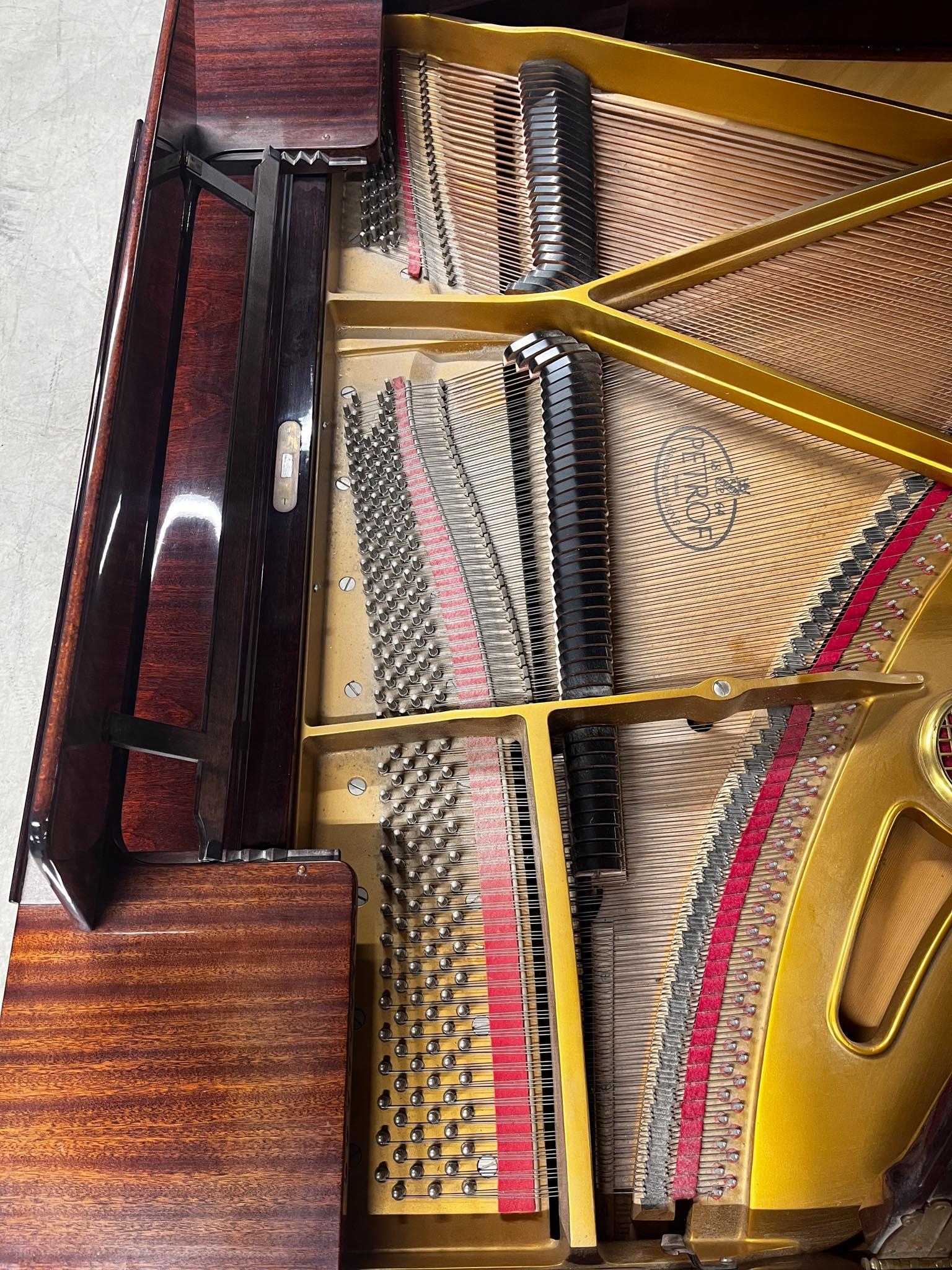 A 5ft 3in Model V grand piano in a bright mahogany case on square tapered legs.
