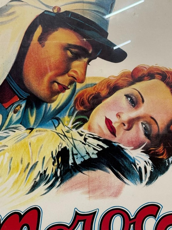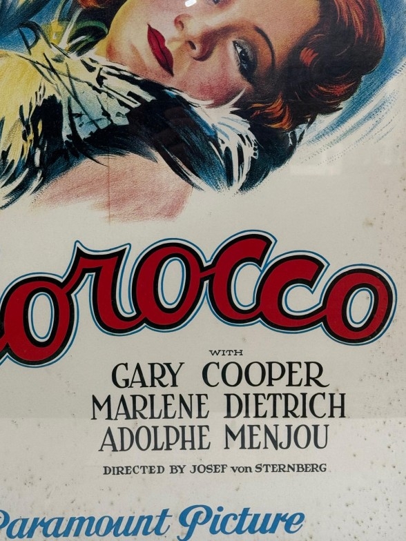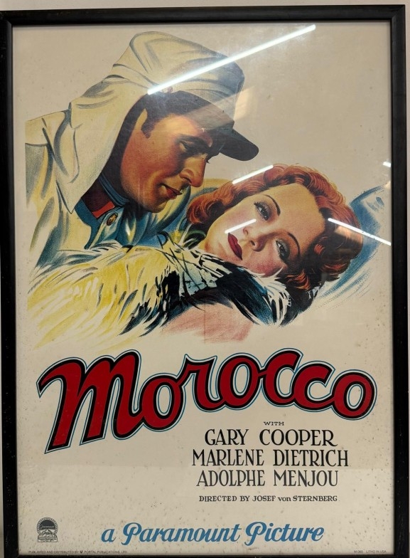 A vintage framed film poster for "Morocco" starring Gary Cooper and Marlene Deitrich 54cm x 74cm