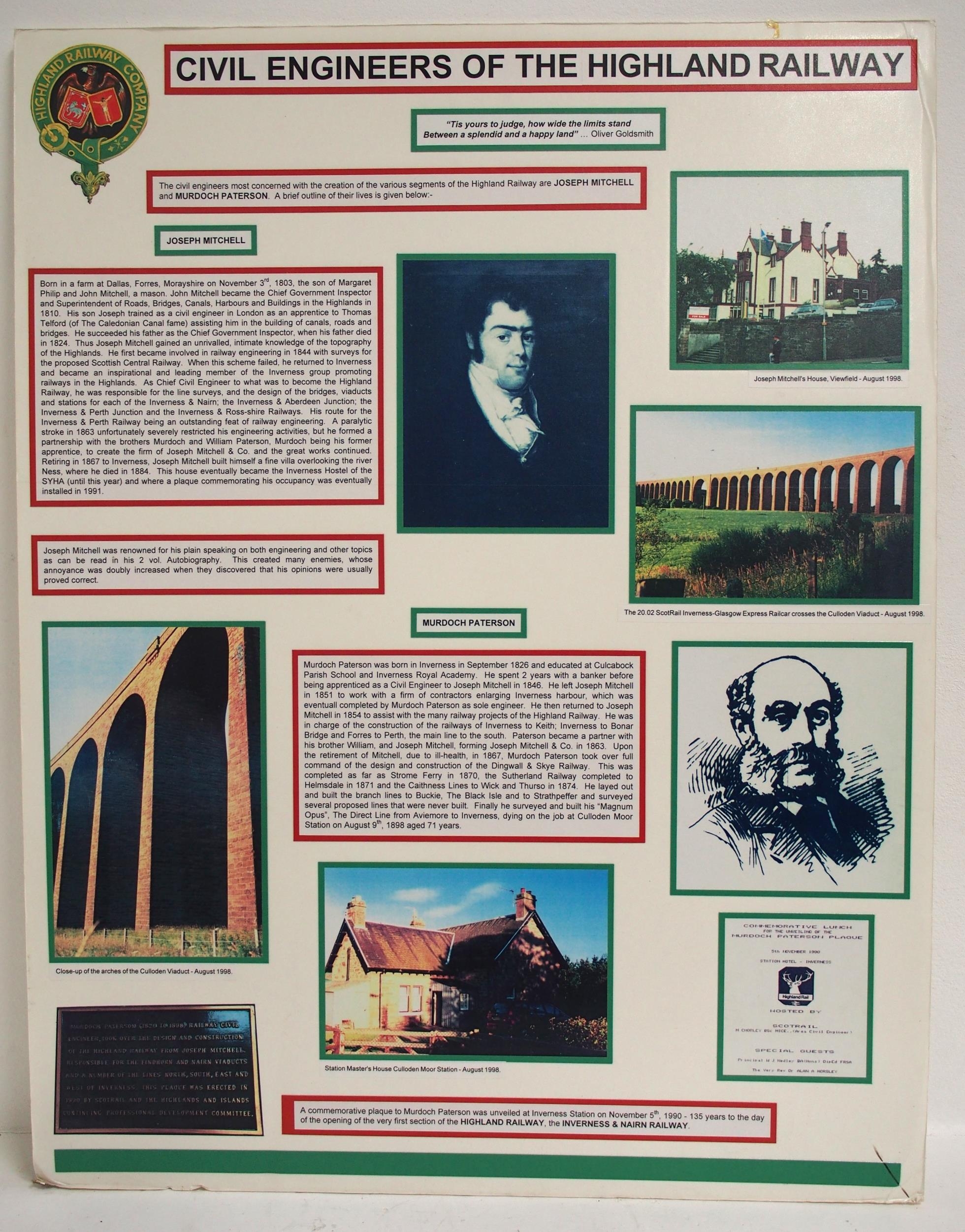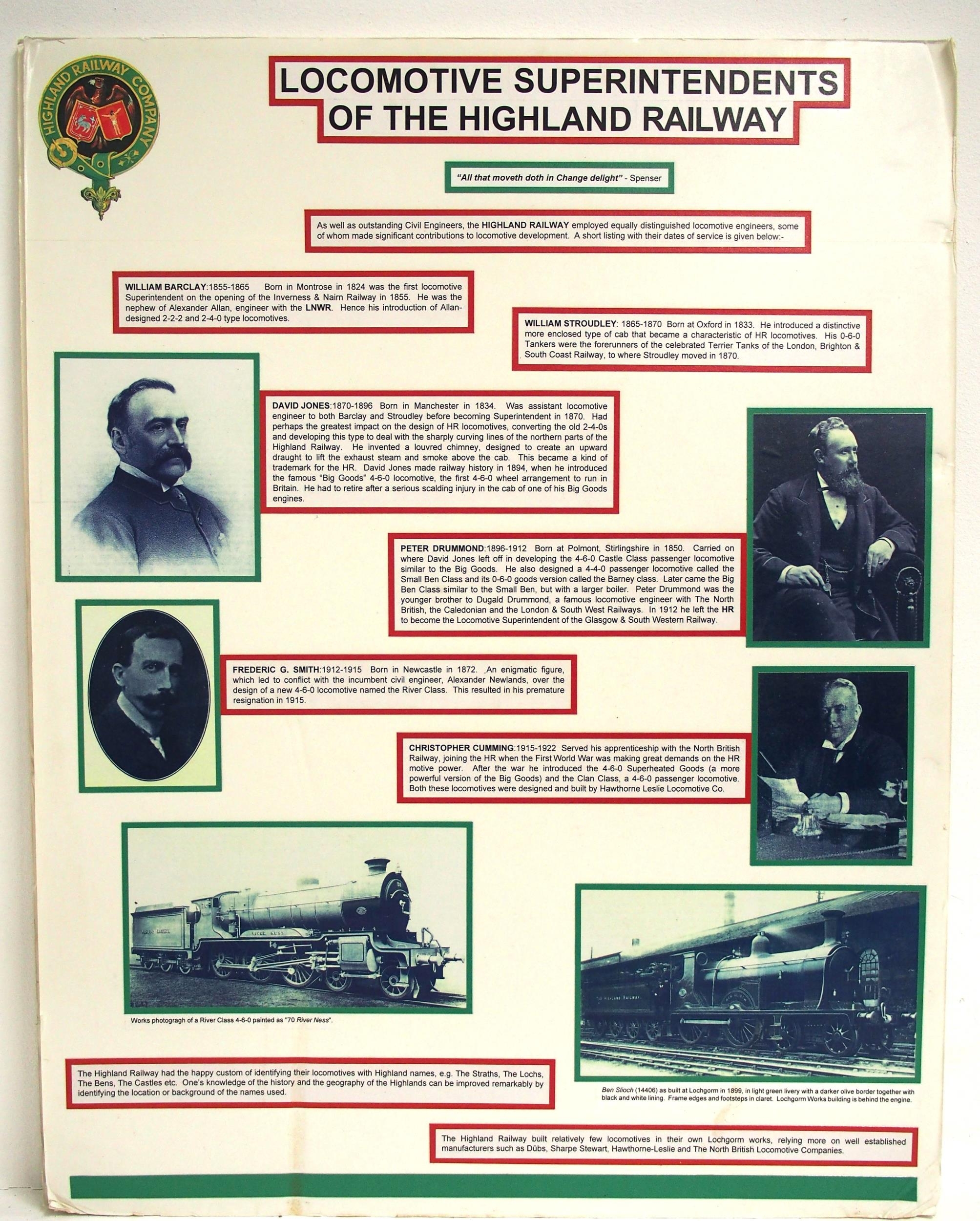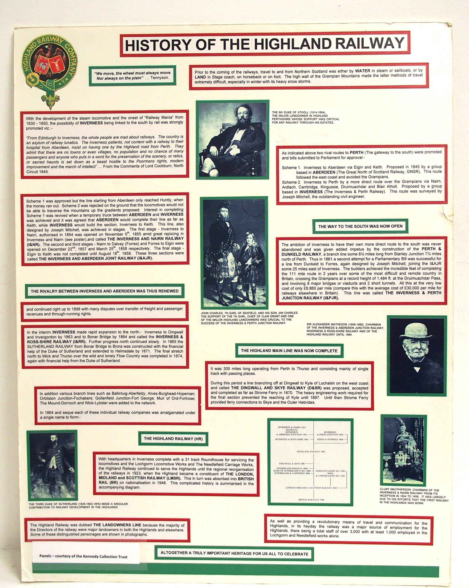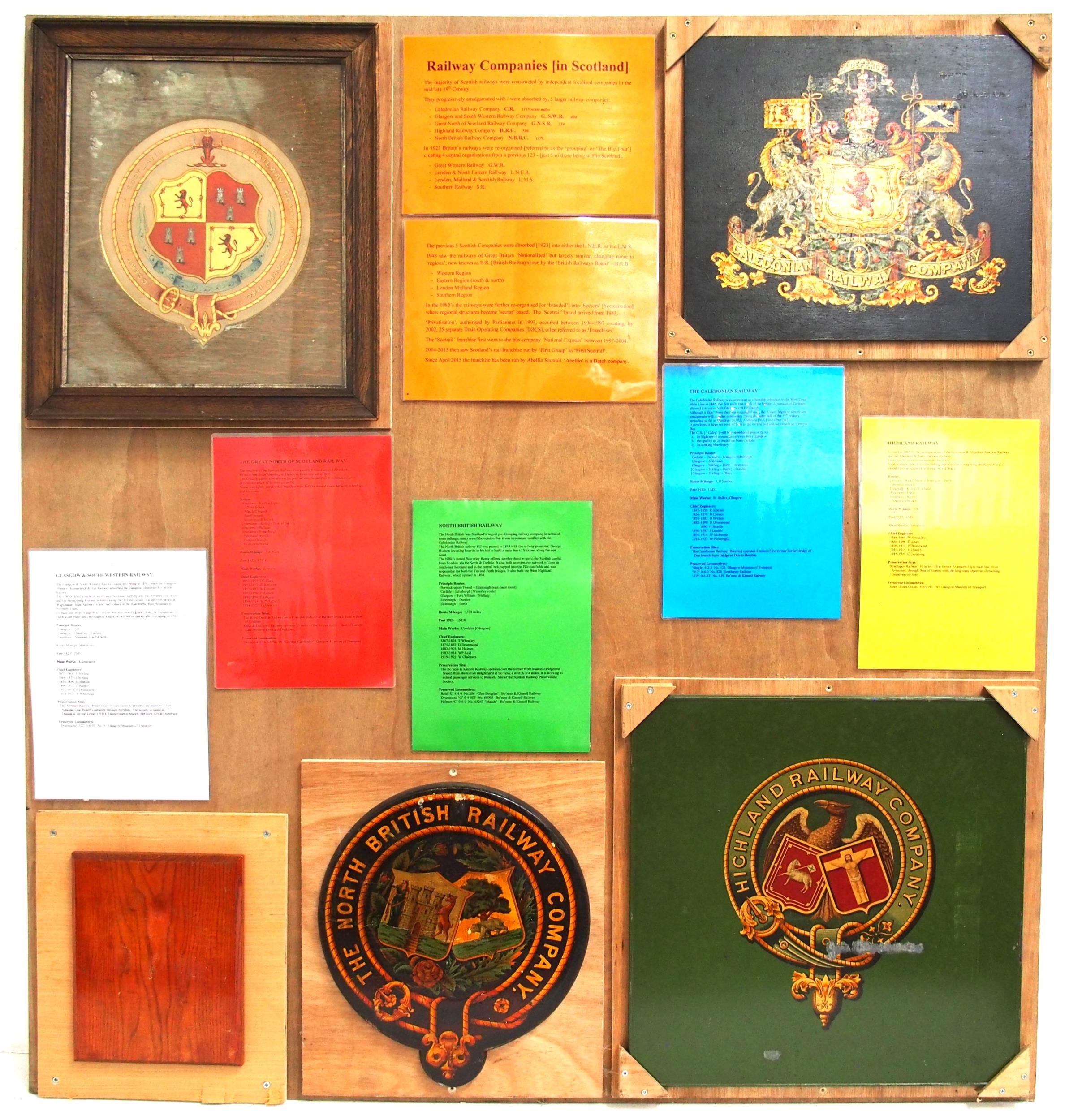 Mounted coats of arms - North British Rly, Highland Railway, Great North of Scotland Railway, Caledonian Railway, all incorporated into a historical display for a Museum - six information boards one on plywood (largest 48"x 52"). (6) (DESK) (Dispatch by Mailboxes/Collect from Banbury Depot)