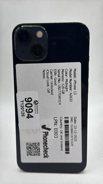 APPLE IPHONE 13 / A2633 / 128GB / IMEI: 352888218733329 / I-CLOUD UNLOCKED
