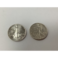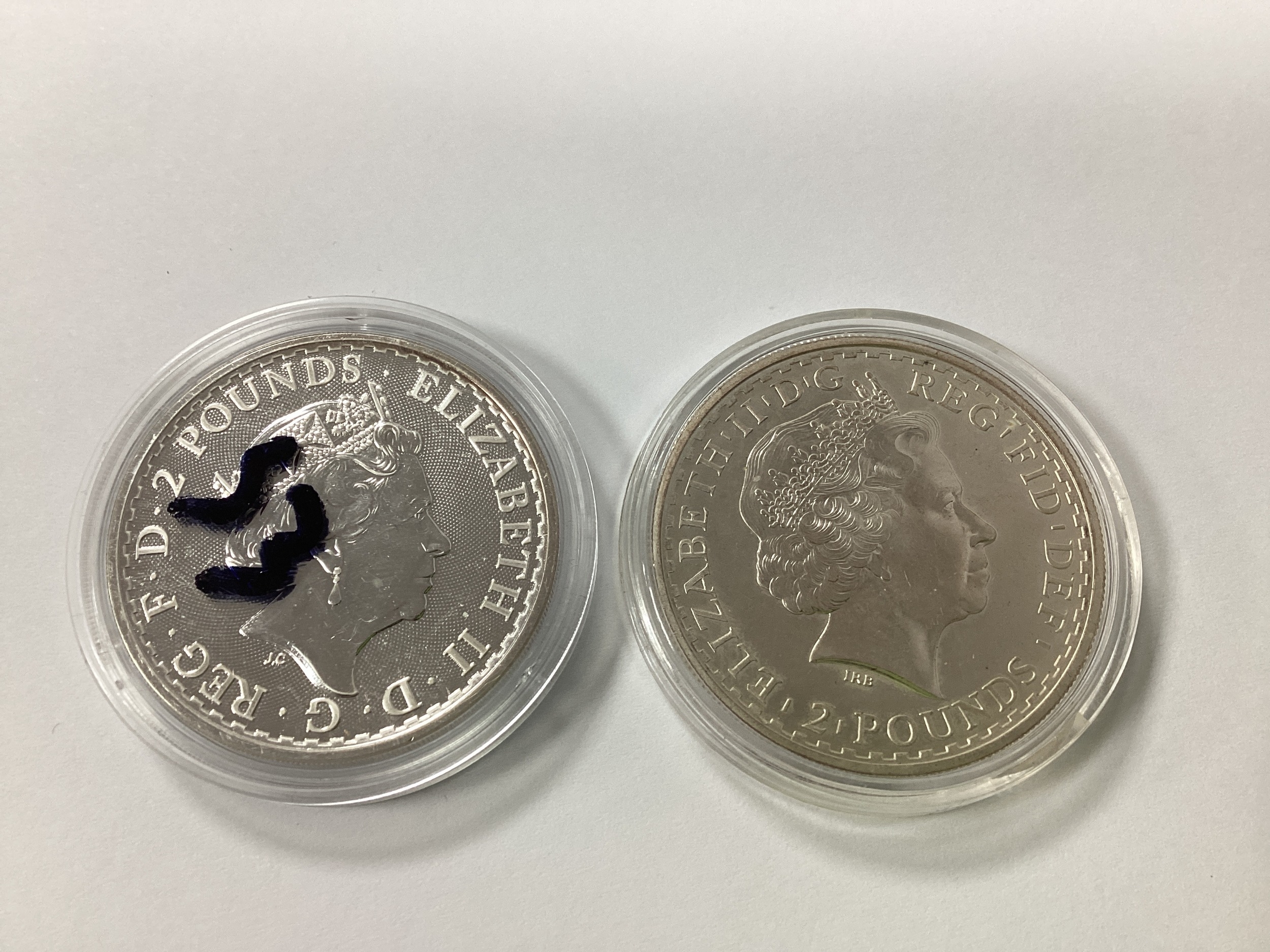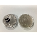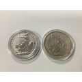Two Fine Silver One Ounce Britannia Coins, 1998 and 2020.