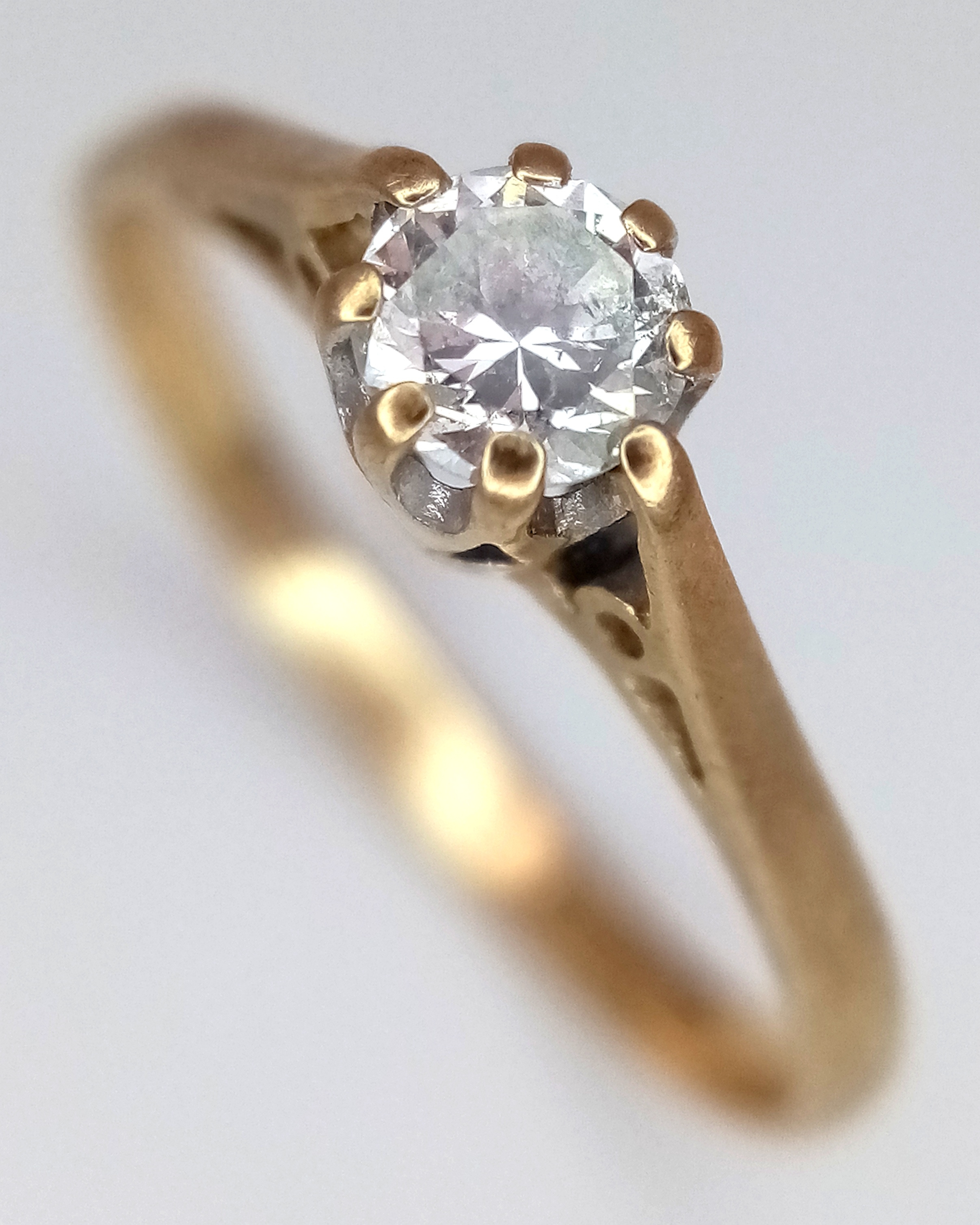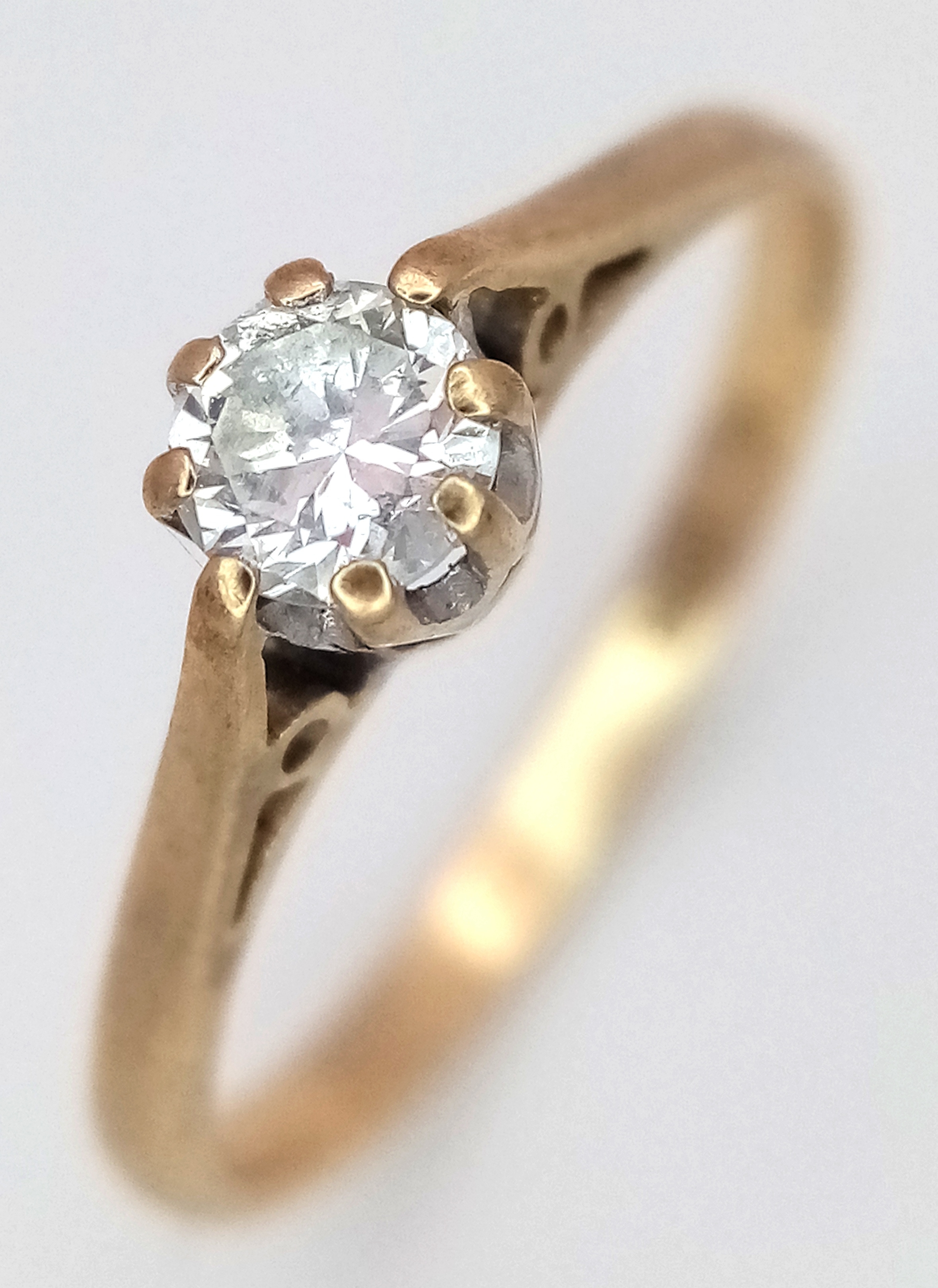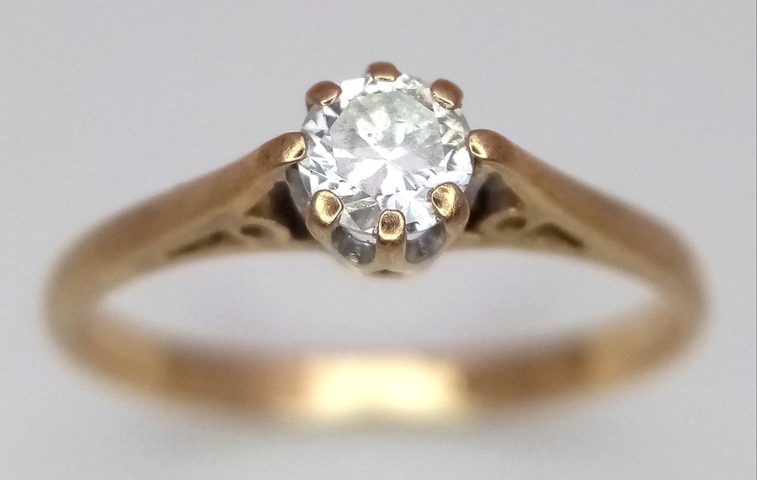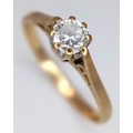 A 9K Yellow Gold White Stone Solitaire Ring. Size K. 1.1g.