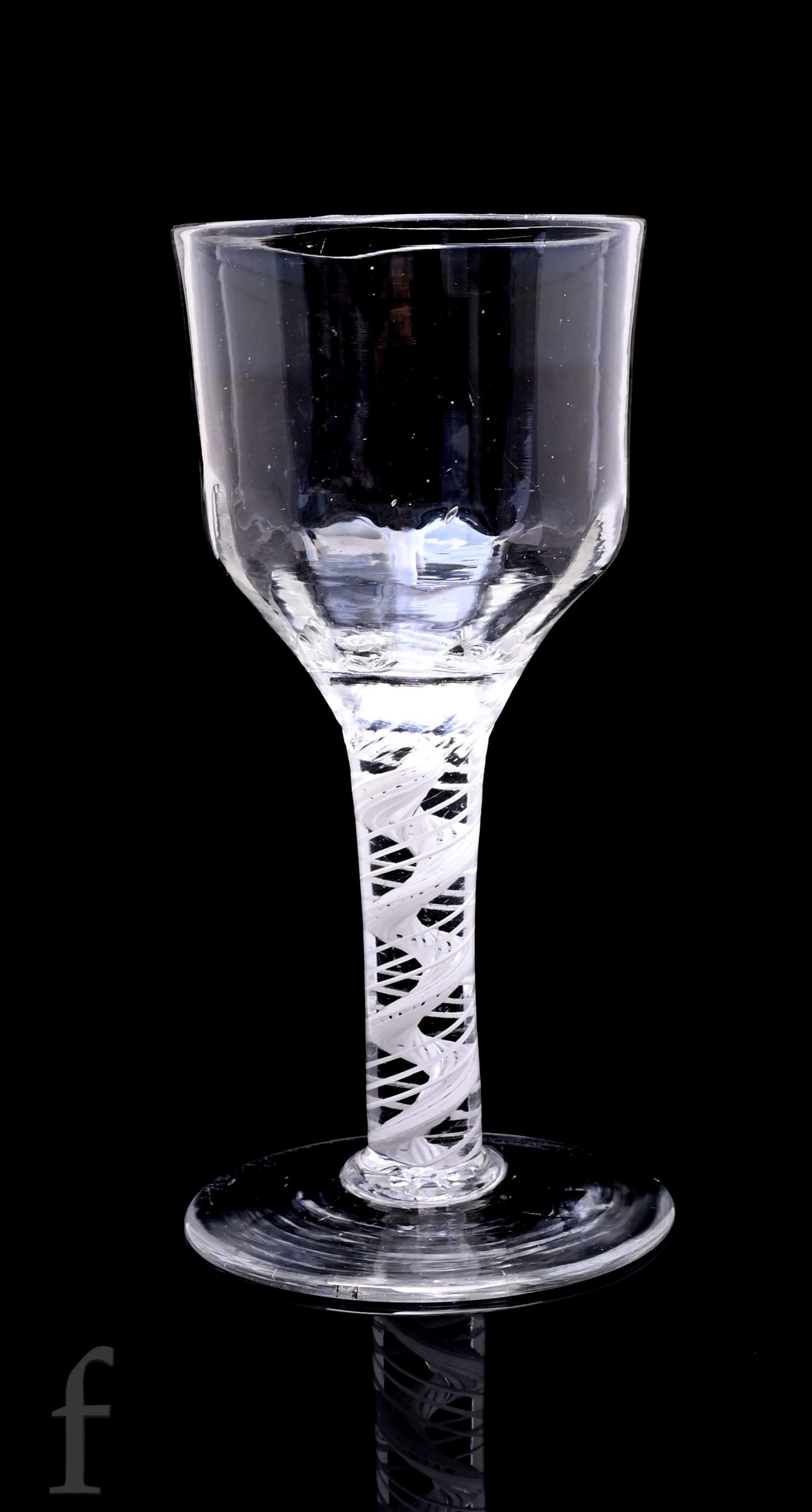 An 18th Century goblet circa 1760, the large ogee bowl with basal molding above a heavy double series opaque twist stem with spiral tapes outside a central corckscrew, raised to a shallow conical foot, height 19cm.