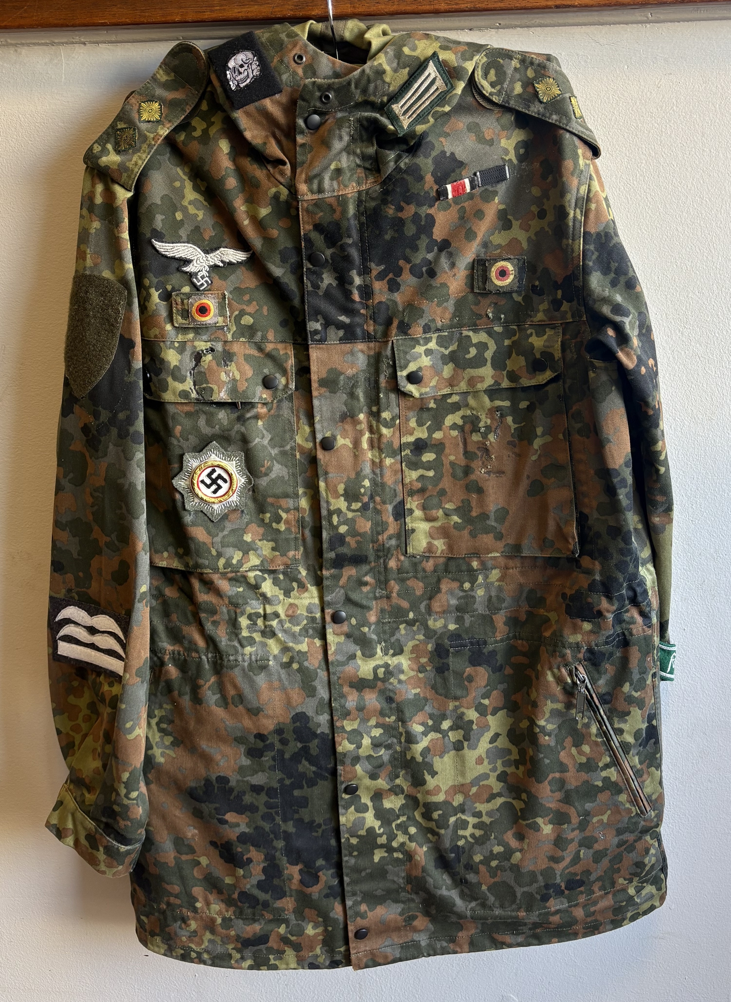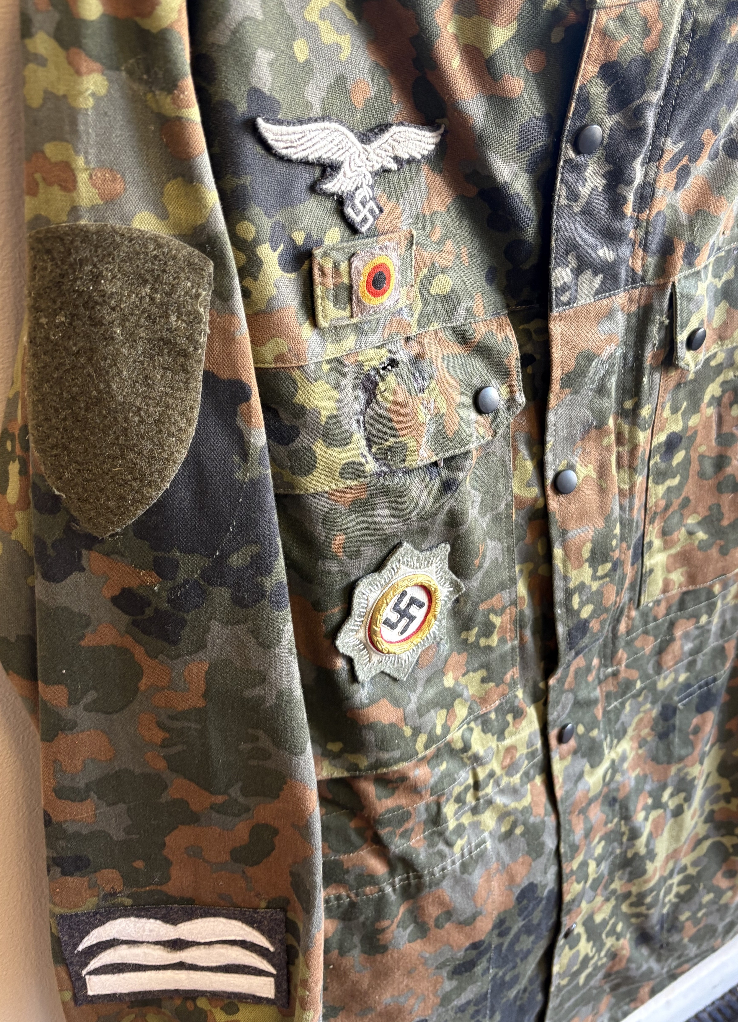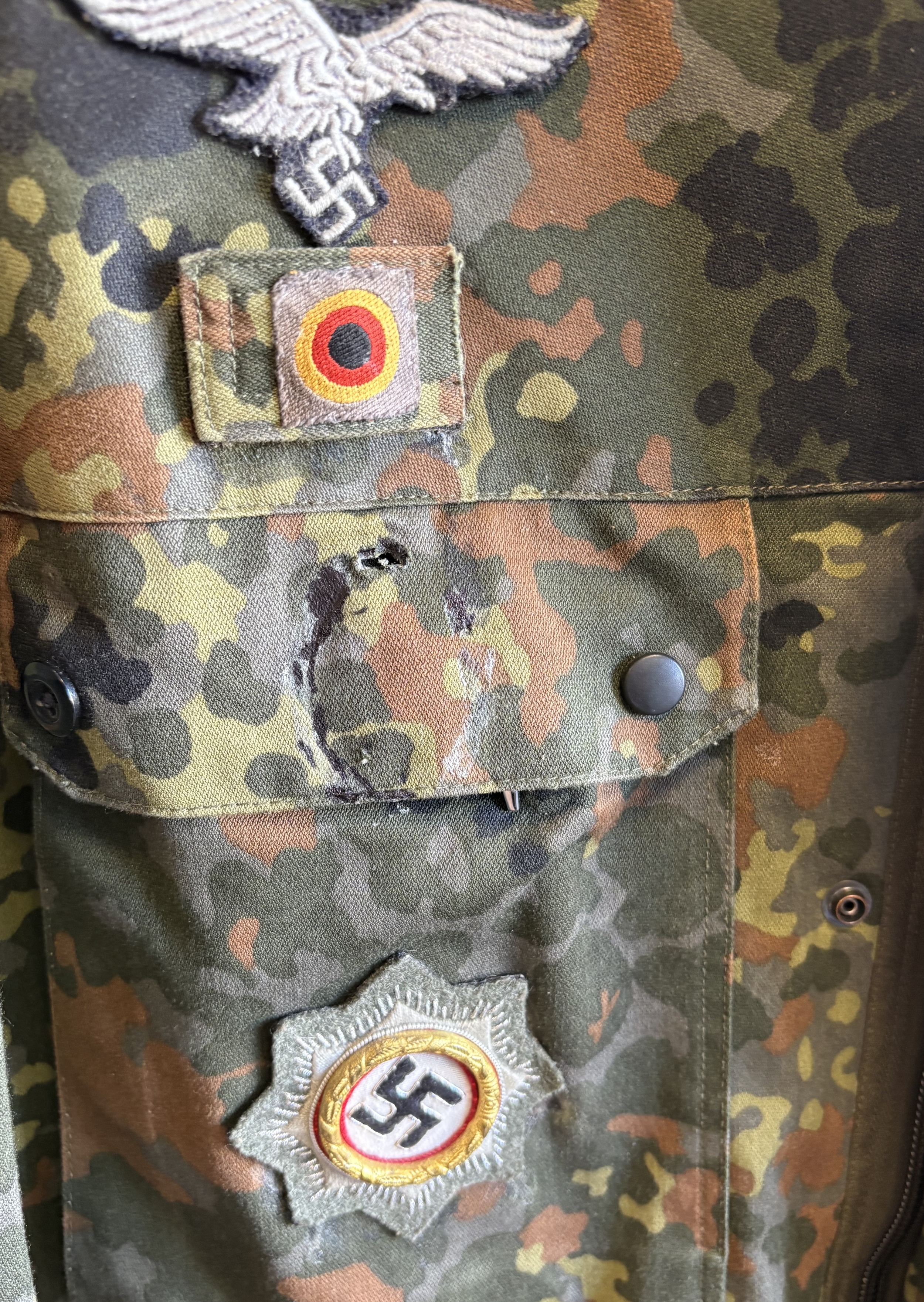 A reproduction WW2 German M44 Pea Dot Tunic together with matching trousers. Est. £20 - £30.