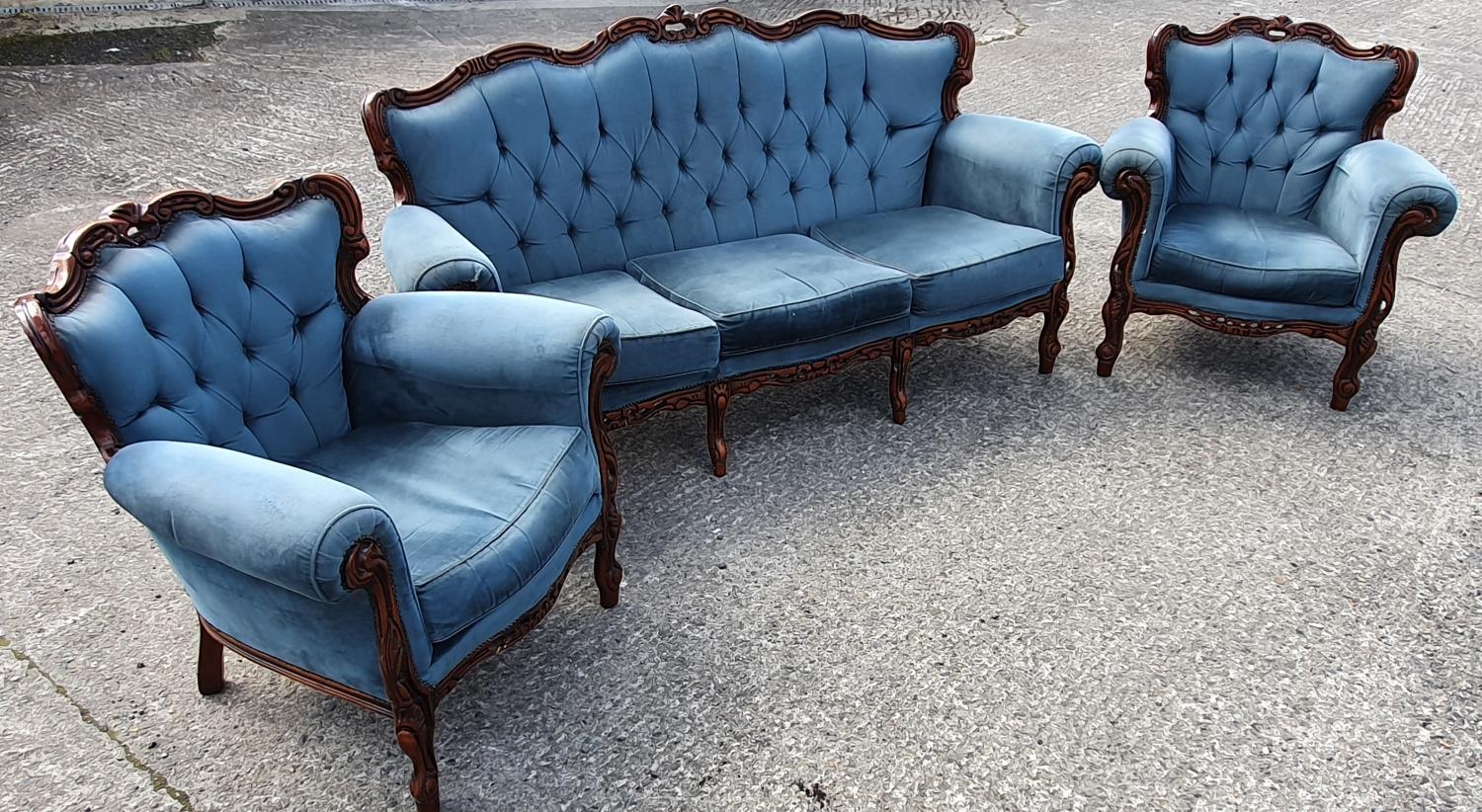 A good mahogany show frame three piece Suite.