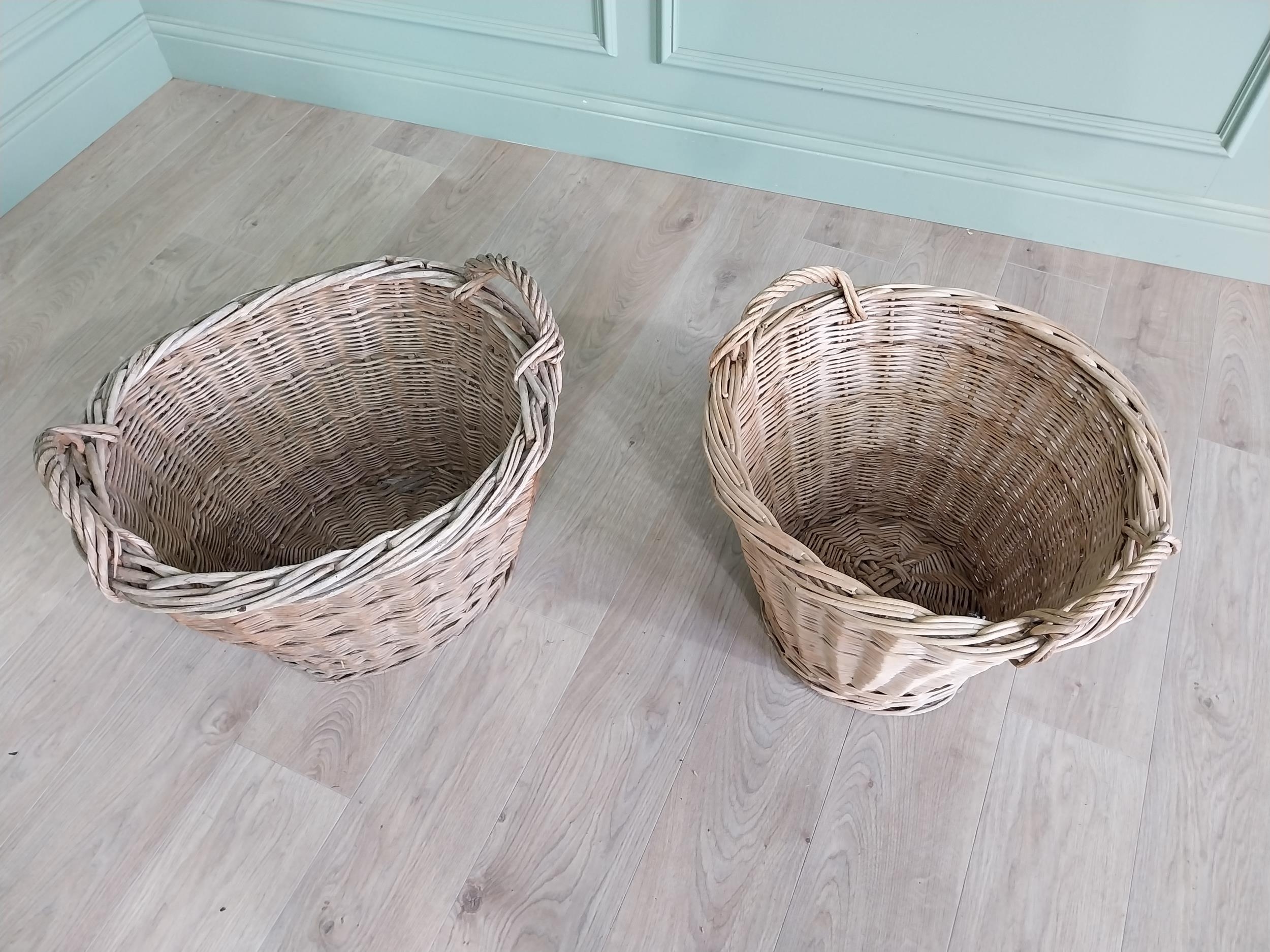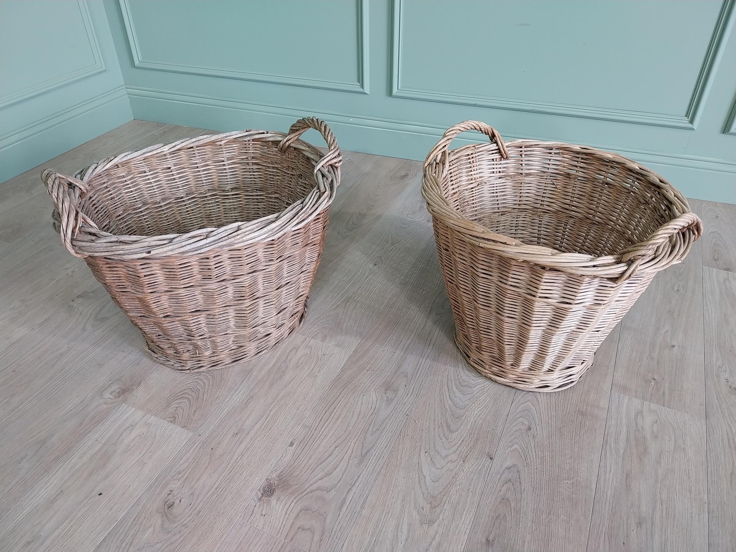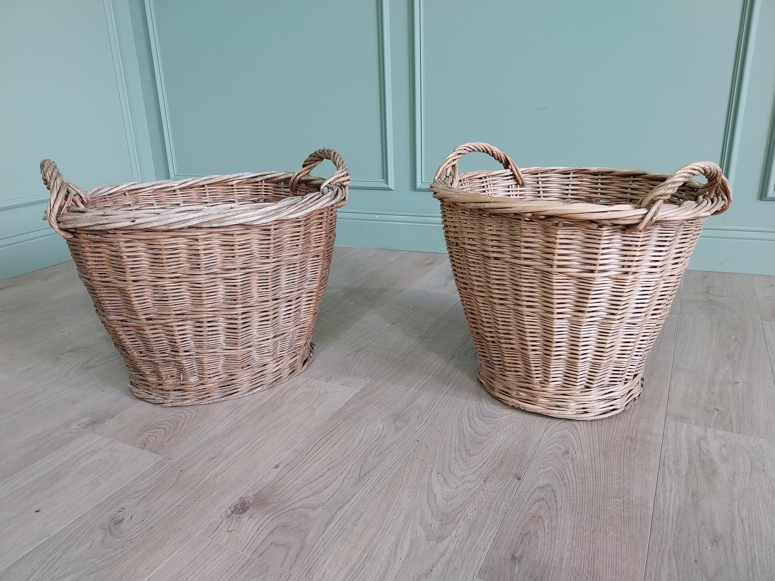 Two early 20th C. wicker baskets {46 cm H x 57 cm W x 50 cm D and 47 cm H x 54 cm W x 52 cm D}.