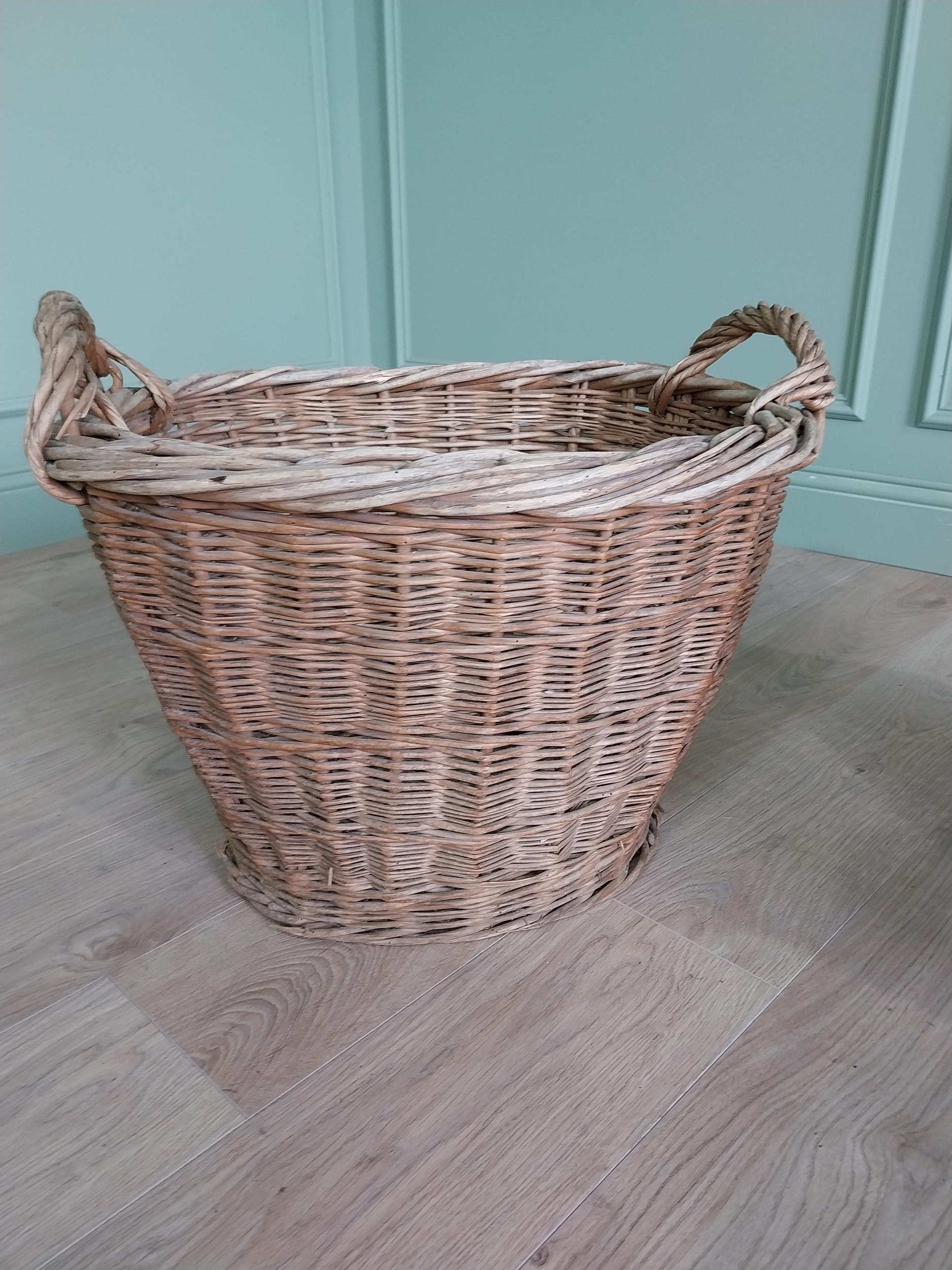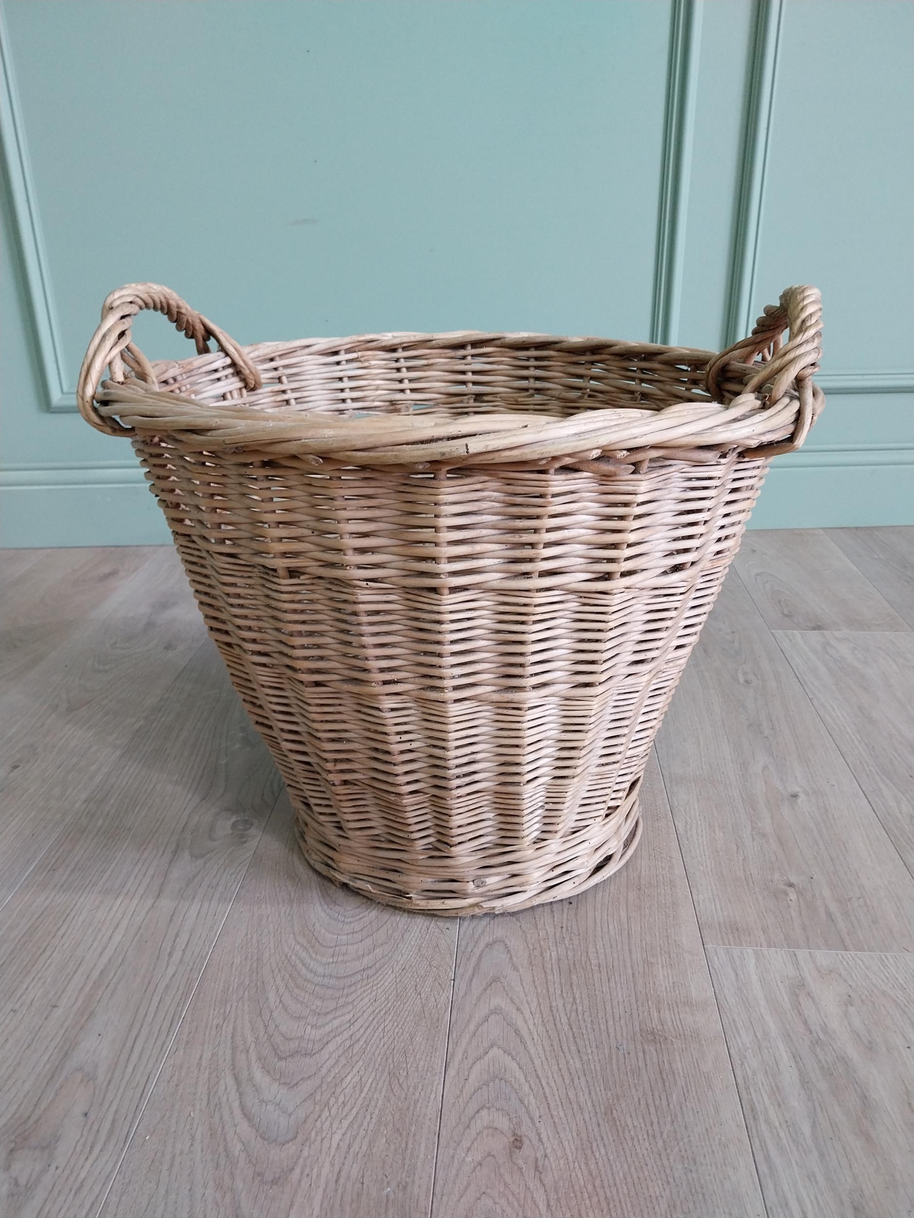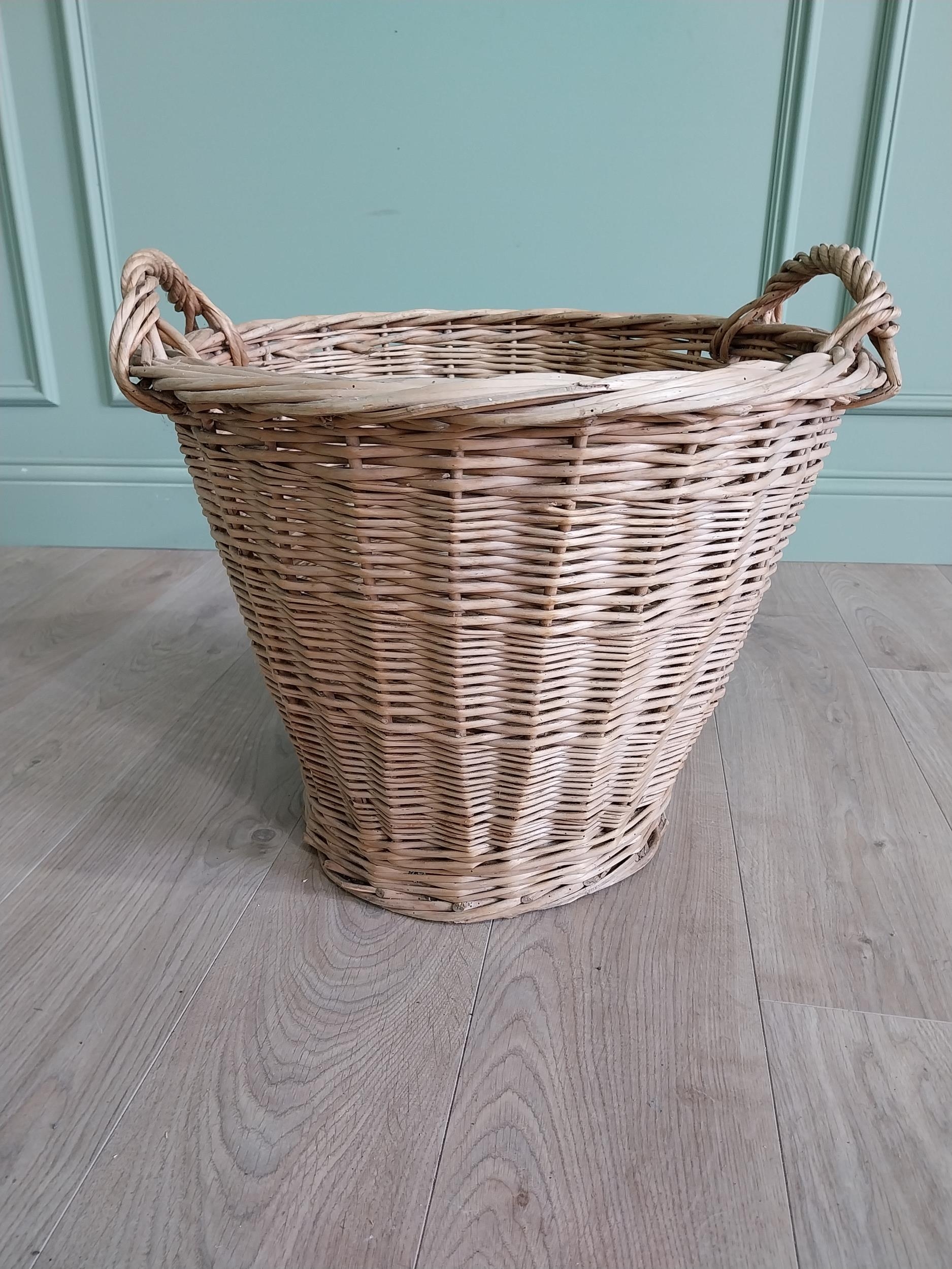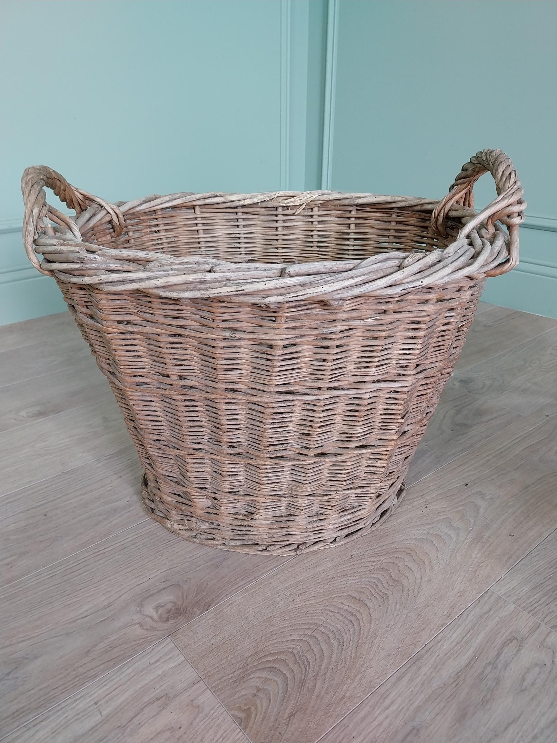 Two early 20th C. wicker baskets {46 cm H x 57 cm W x 50 cm D and 47 cm H x 54 cm W x 52 cm D}.