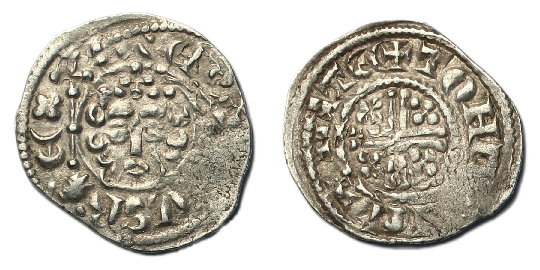 Henry III (1216-1272) Penny, short cross type class 7b3, Canterbury, moneyer Thomas, crowned facing bust holding sceptre, rev. voided short cross, +TOH[AS O]N [CAN]TE , 1.46g, (SCBC 1356B, N.979). Double struck, about good fine