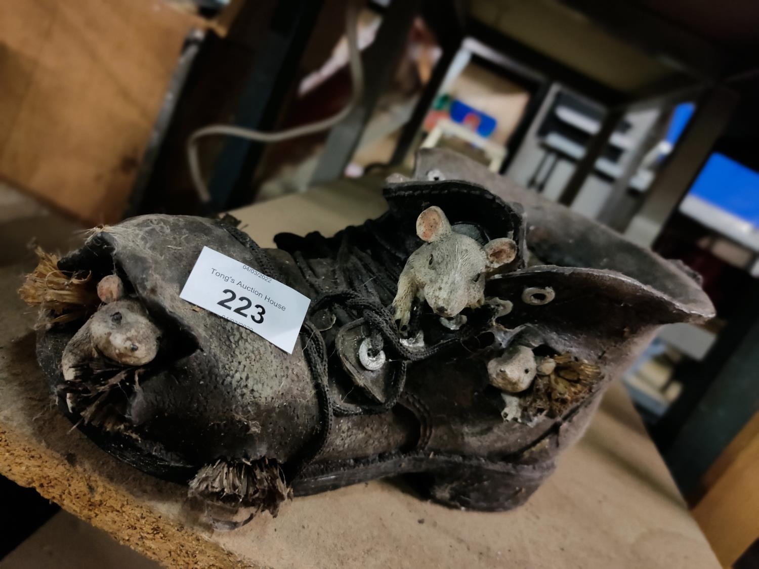 A RESIN BOOT WITH MICE PLANTER THIS WOULD LOOK GREAT ANY GARDEN