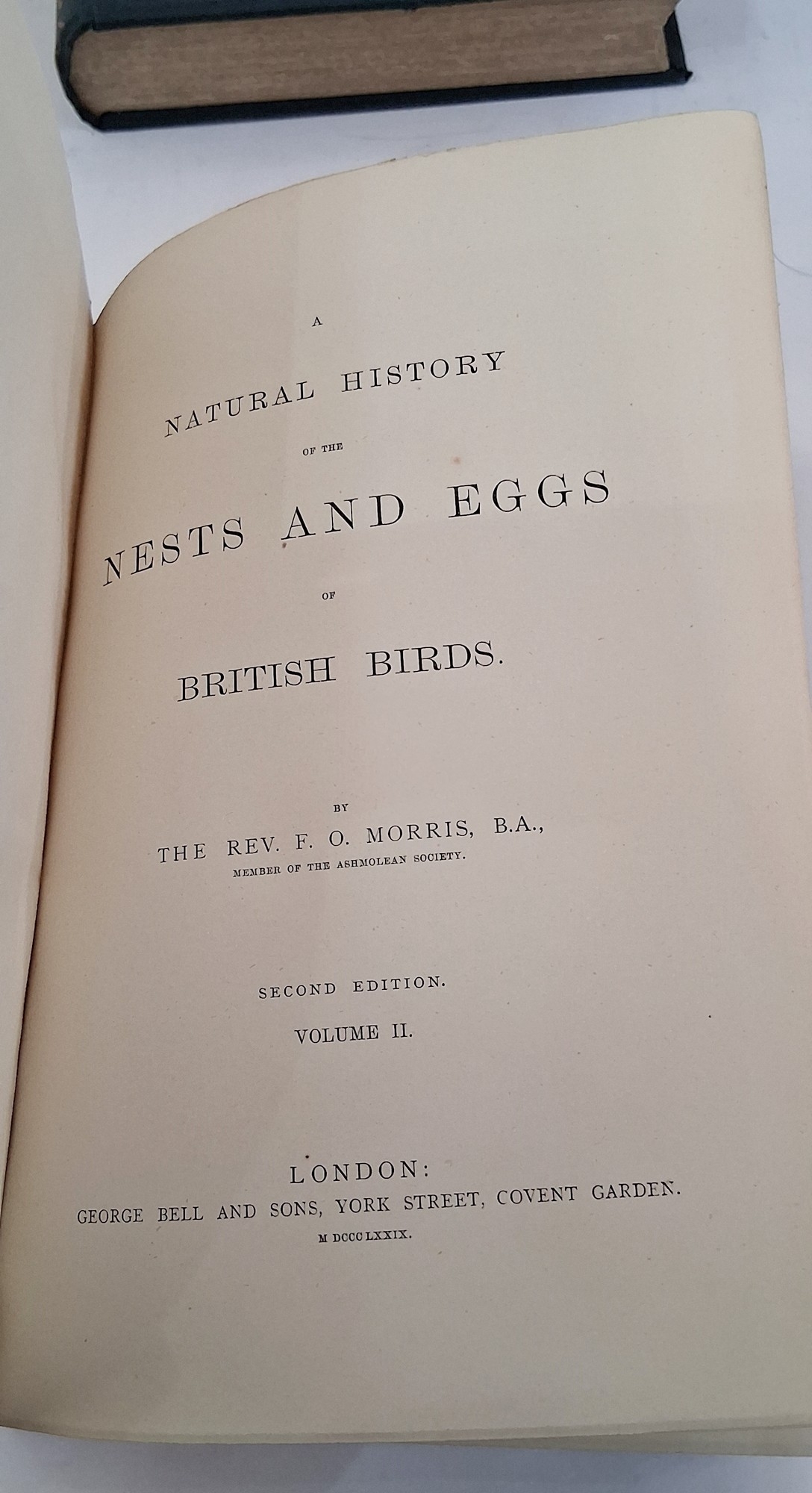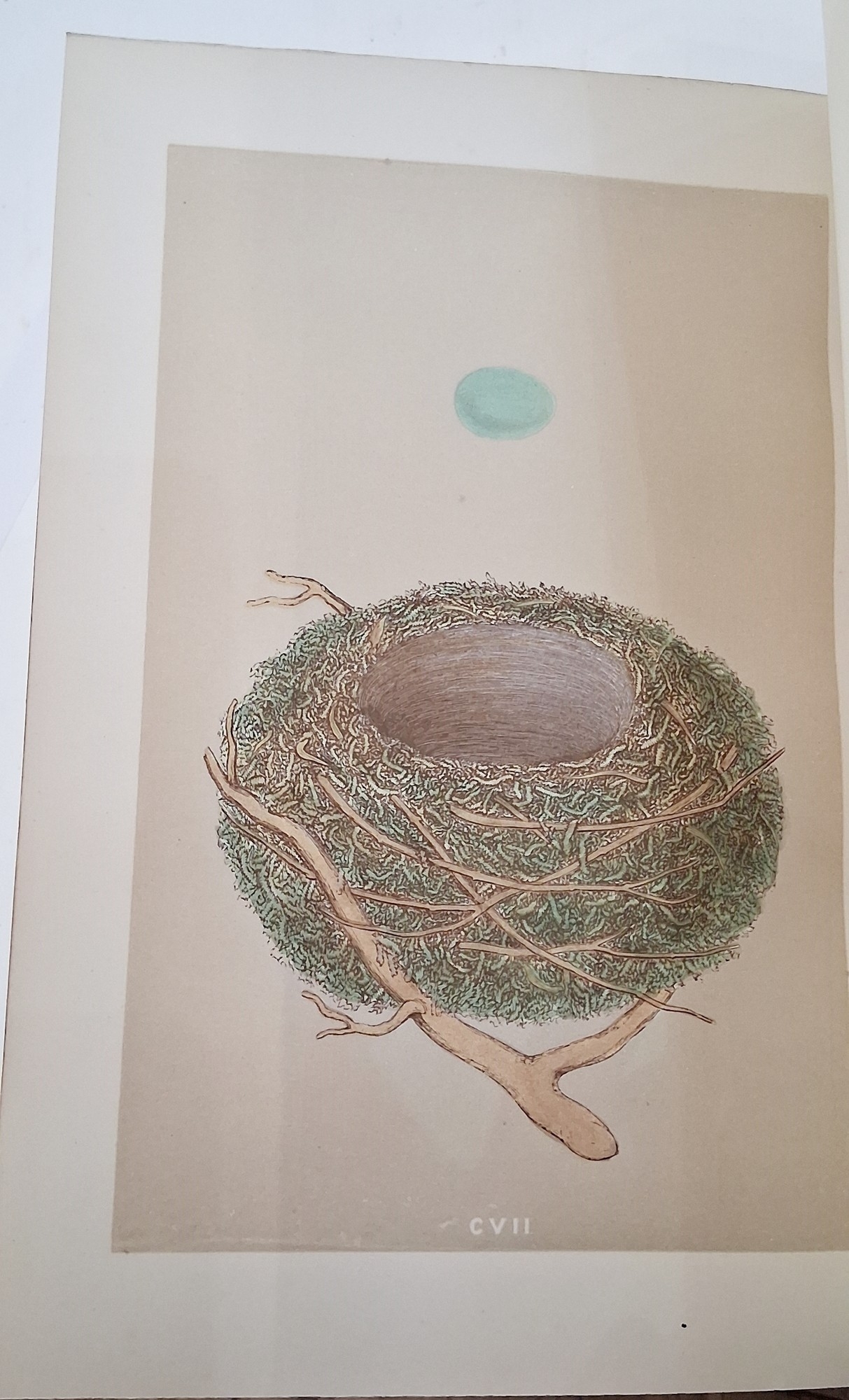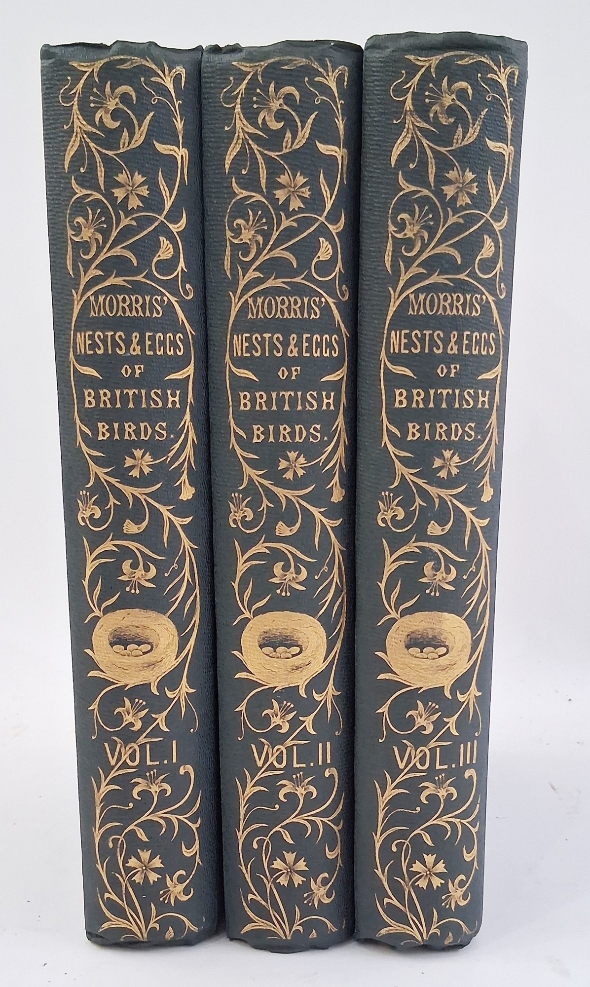 Morris, Reverend F. O. "A Natural History of the Nests and Eggs of British Birds", 2nd edition, George Bell & Sons 1879, 4 vols, colour plates with tissue guards in all vols, original publishers green cloth blindstamped with gilt pictorial image of bird nests on front boards, gilt decorations and titles to backstrips, small folio not collated (4)