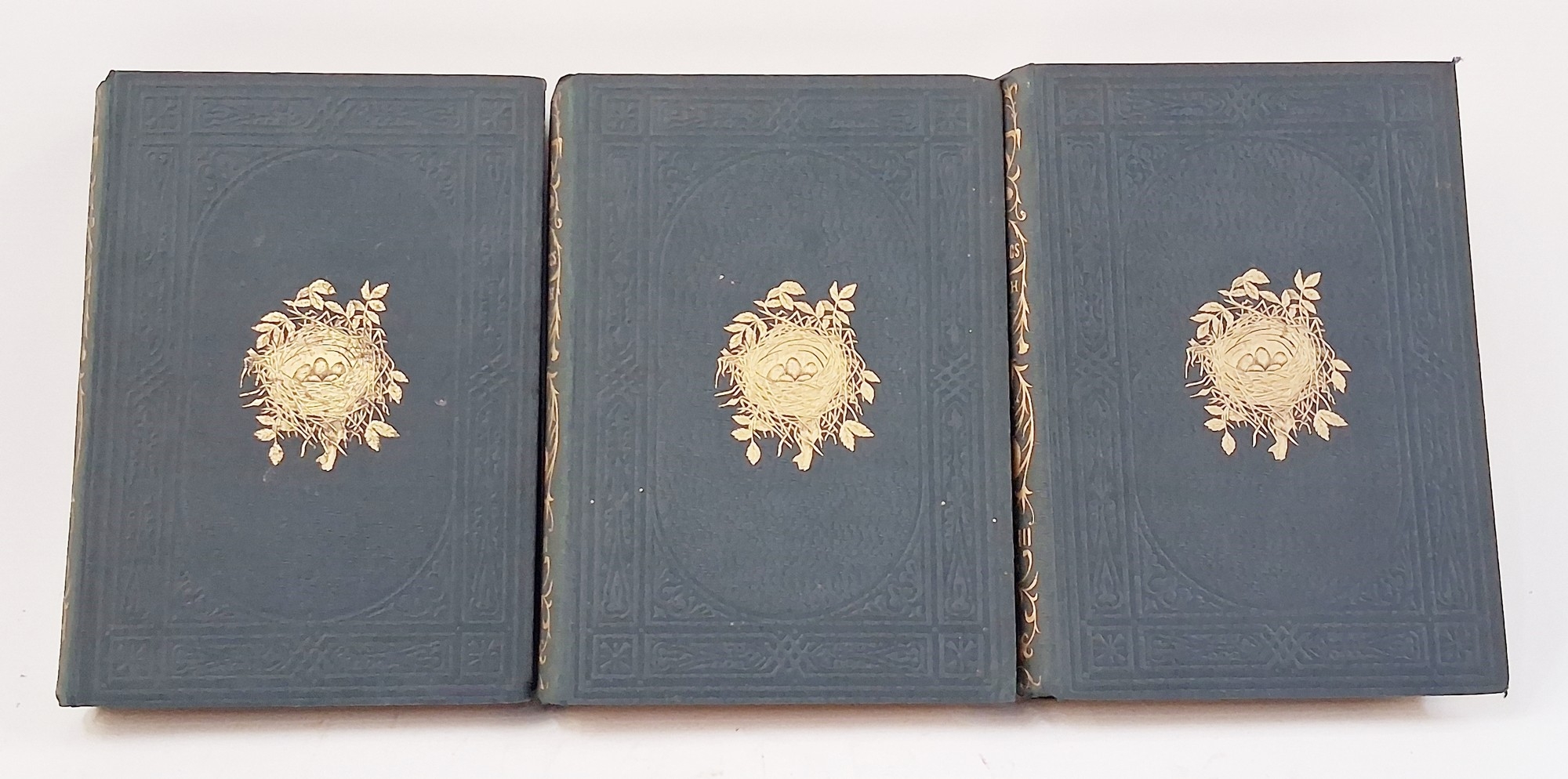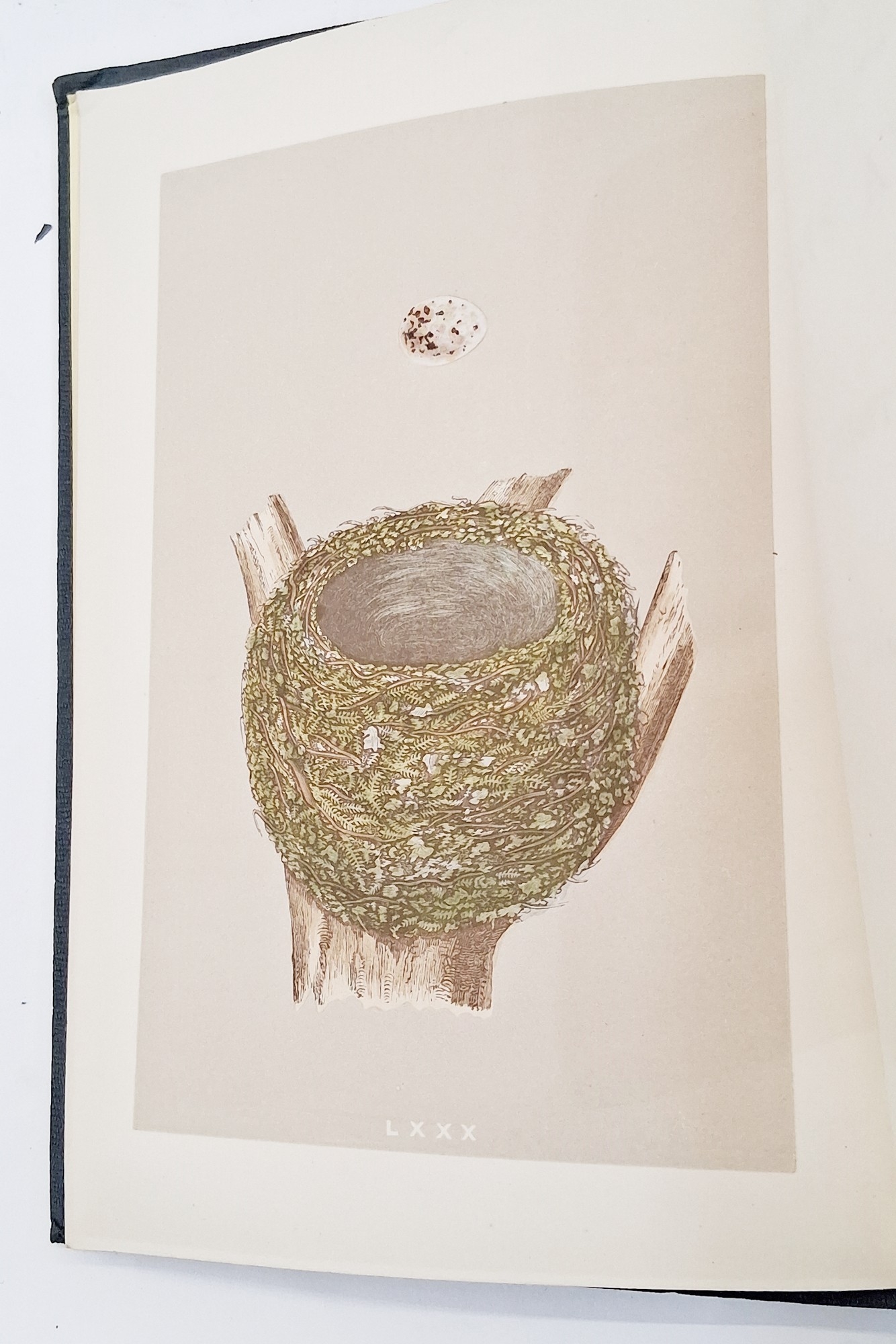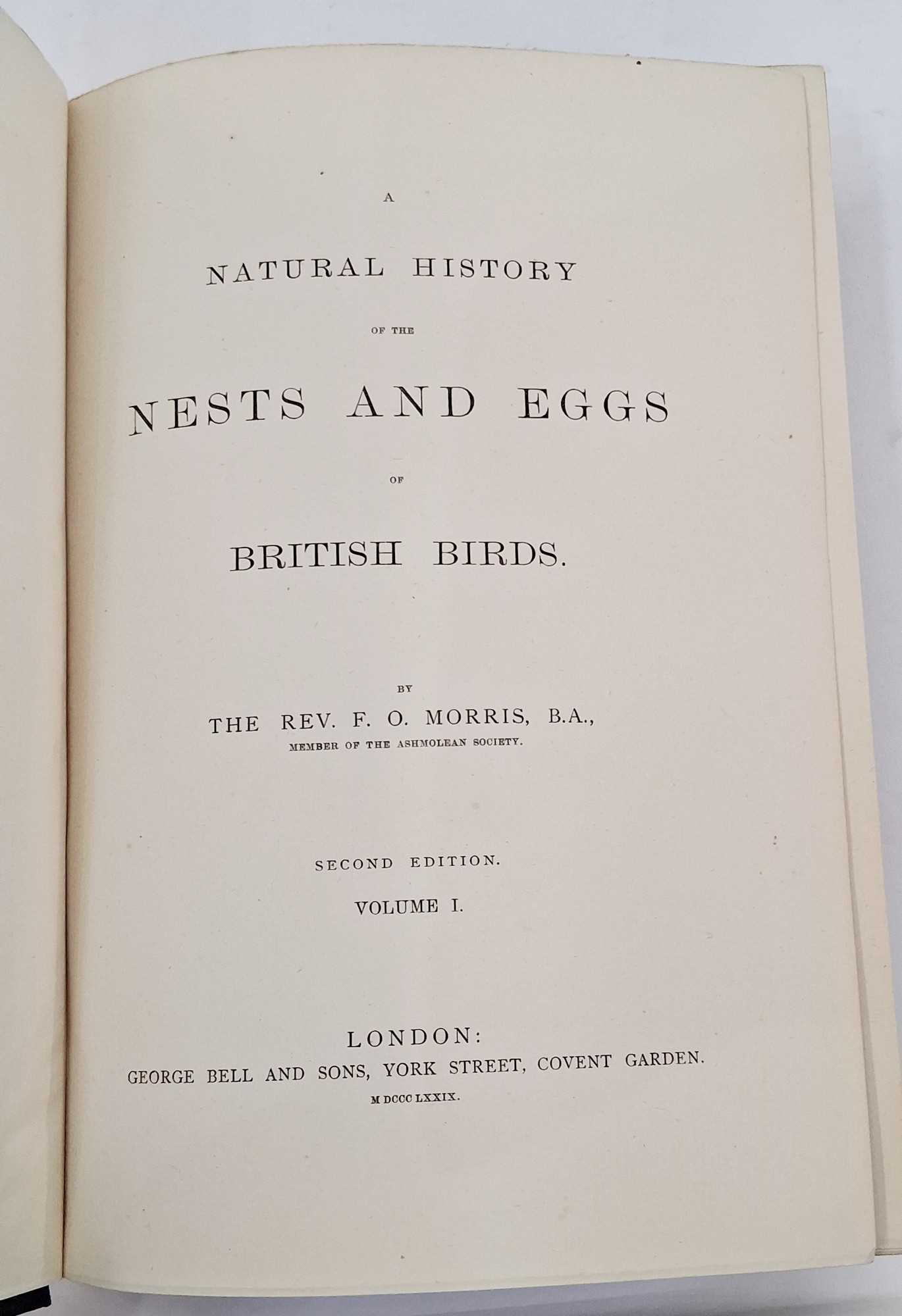 Morris, Reverend F. O. "A Natural History of the Nests and Eggs of British Birds", 2nd edition, George Bell & Sons 1879, 4 vols, colour plates with tissue guards in all vols, original publishers green cloth blindstamped with gilt pictorial image of bird nests on front boards, gilt decorations and titles to backstrips, small folio not collated (4)