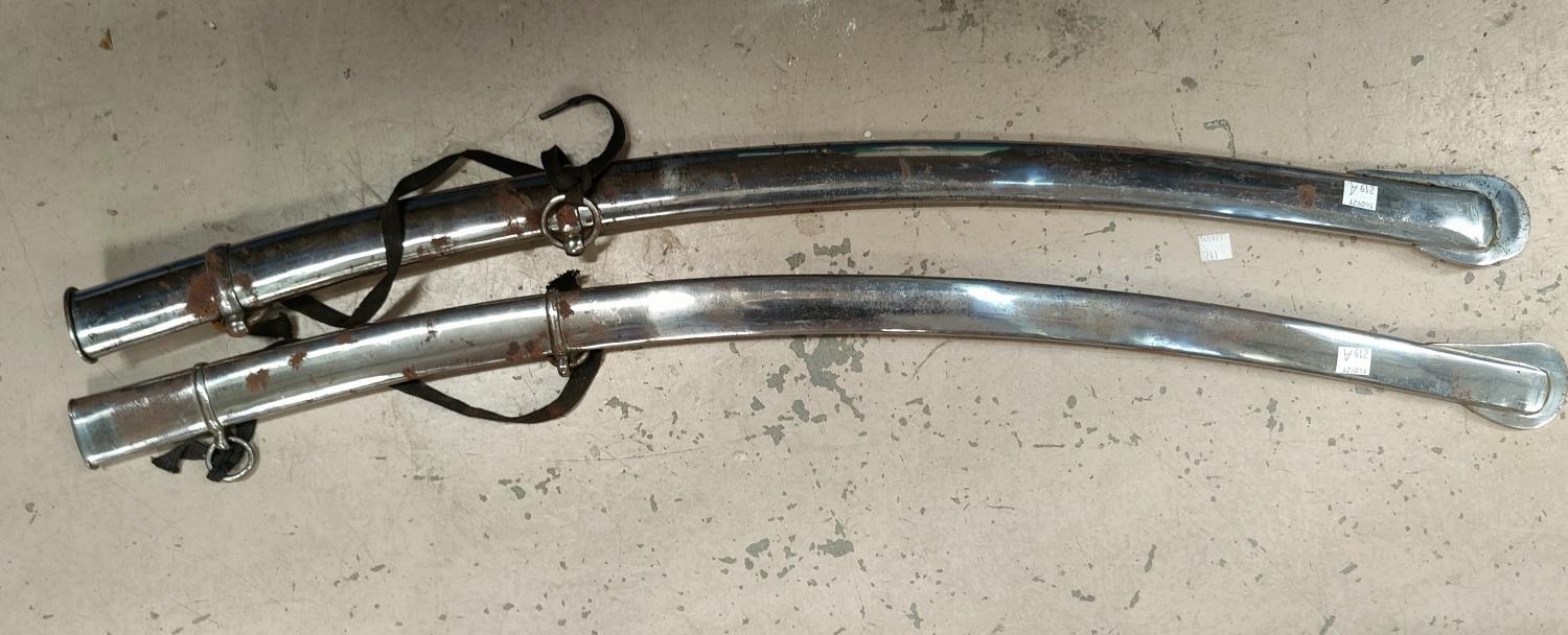 Two 19th Century polished steel naval longer sword scabbards, 85cm