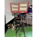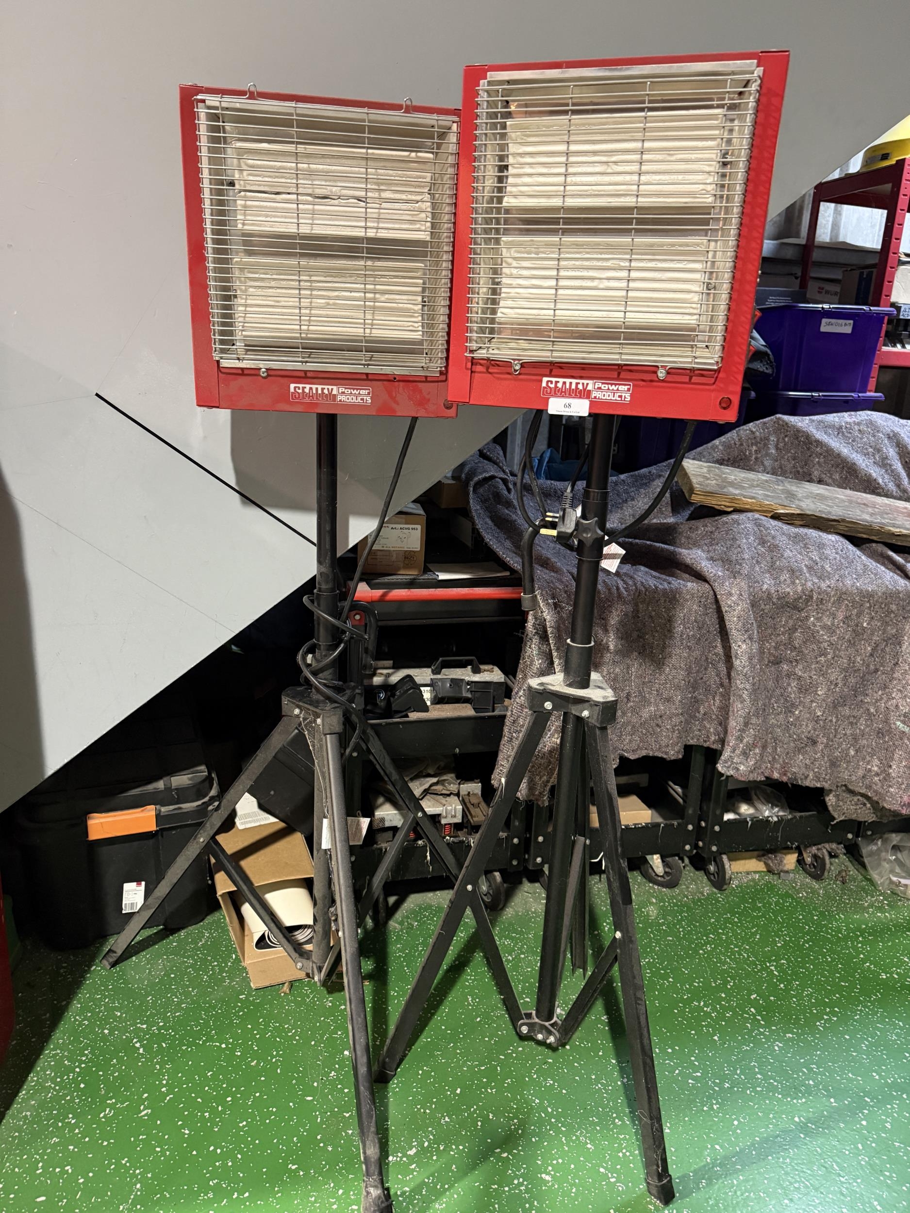 Two Sealey ceramic workshop heaters mounted upon tripod stands
