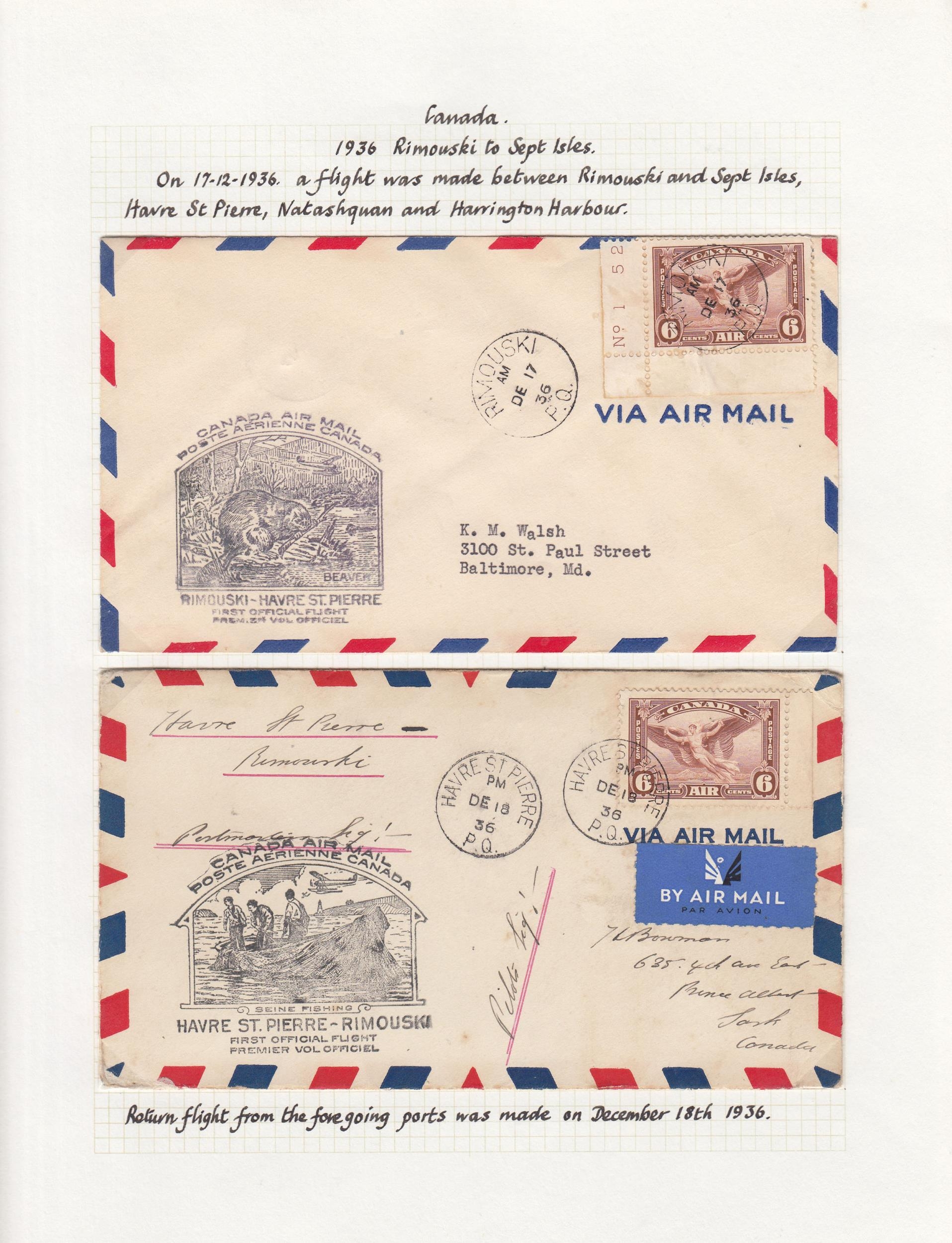 Canada- 1930s-1950s Attractive Airmails collection of 51 covers some written up on pages with a very wide variety of frankings and markings including a 1924 first flight cover from Estevan to Winnipeg